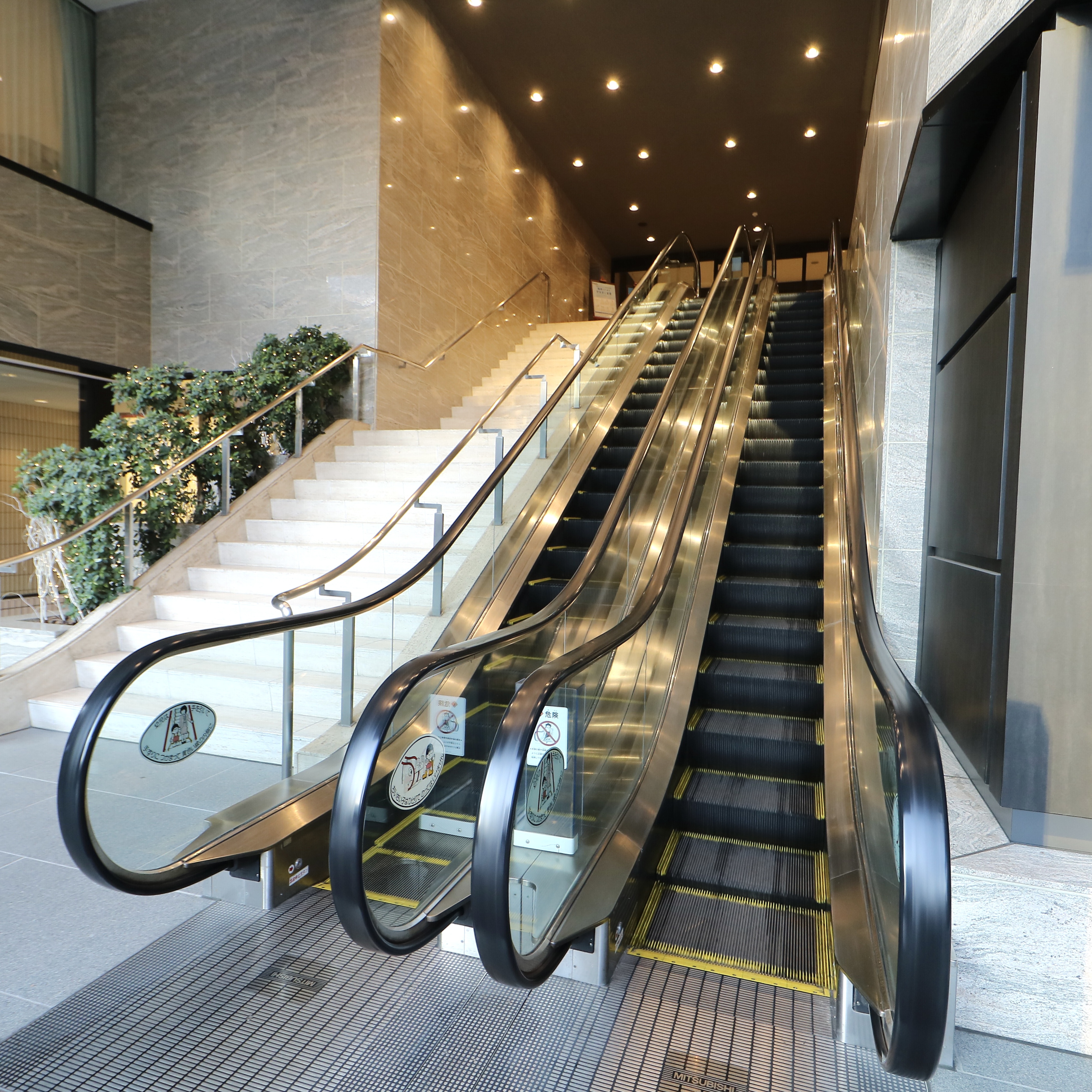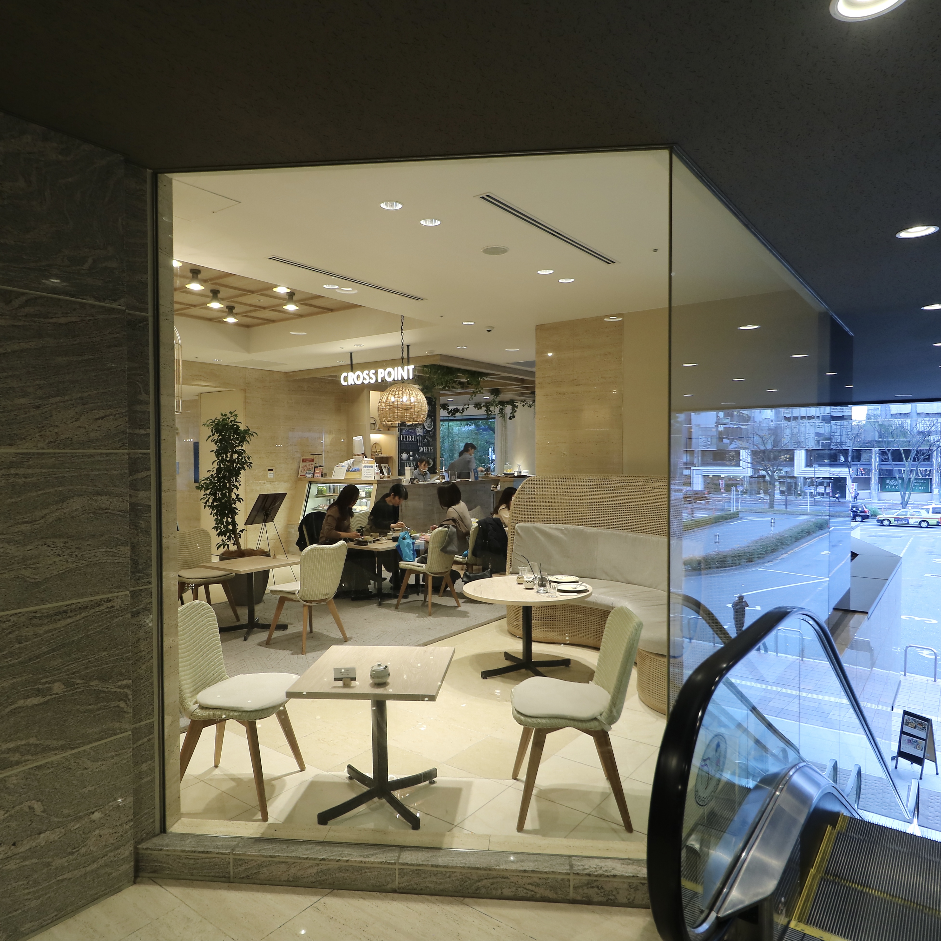 エスカレーターを振り返ると、先ほどのカフェ「CROSS POINT」が見えます。