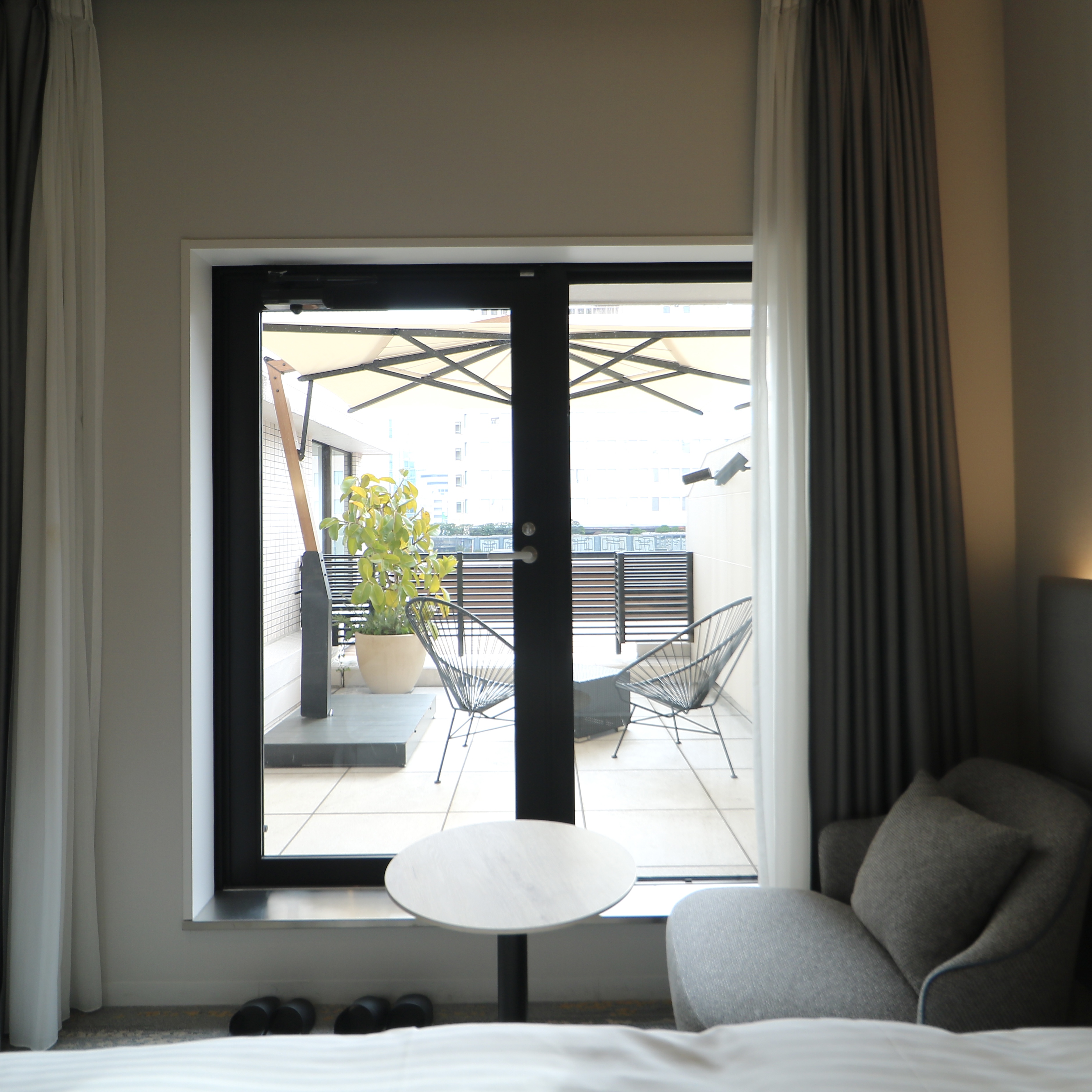 都心の街中を通りすぎる心地よい風とともに、解放された空間でくつろぐことができます。