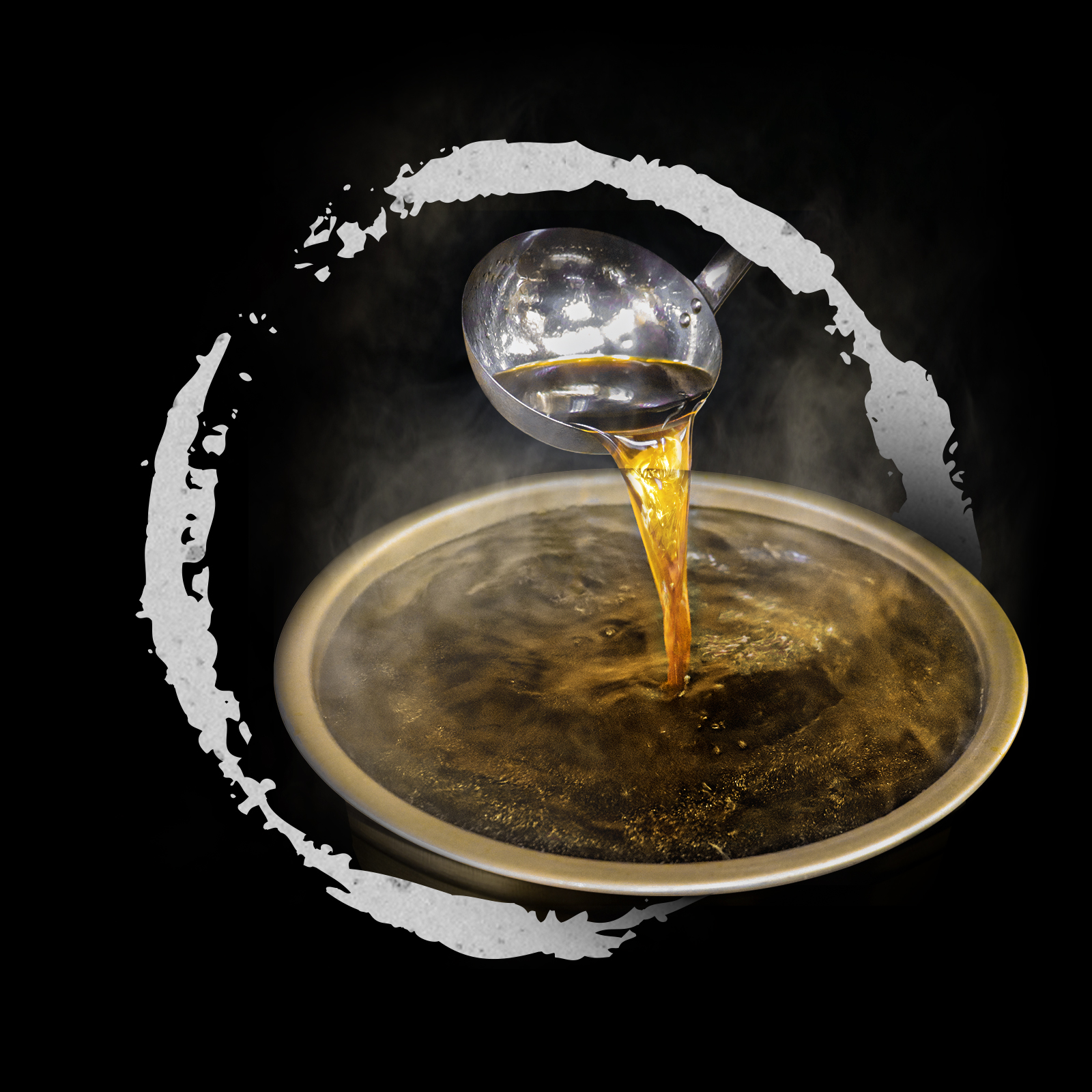 いりこを中心に数種類の食材を、数時間水の中で寝かせ、じっくり味を出して作りあげた和風魚介だしとあくを極限まで取り除いた透き通った牛だしをブレンド、厳選した醤油で仕上げました。