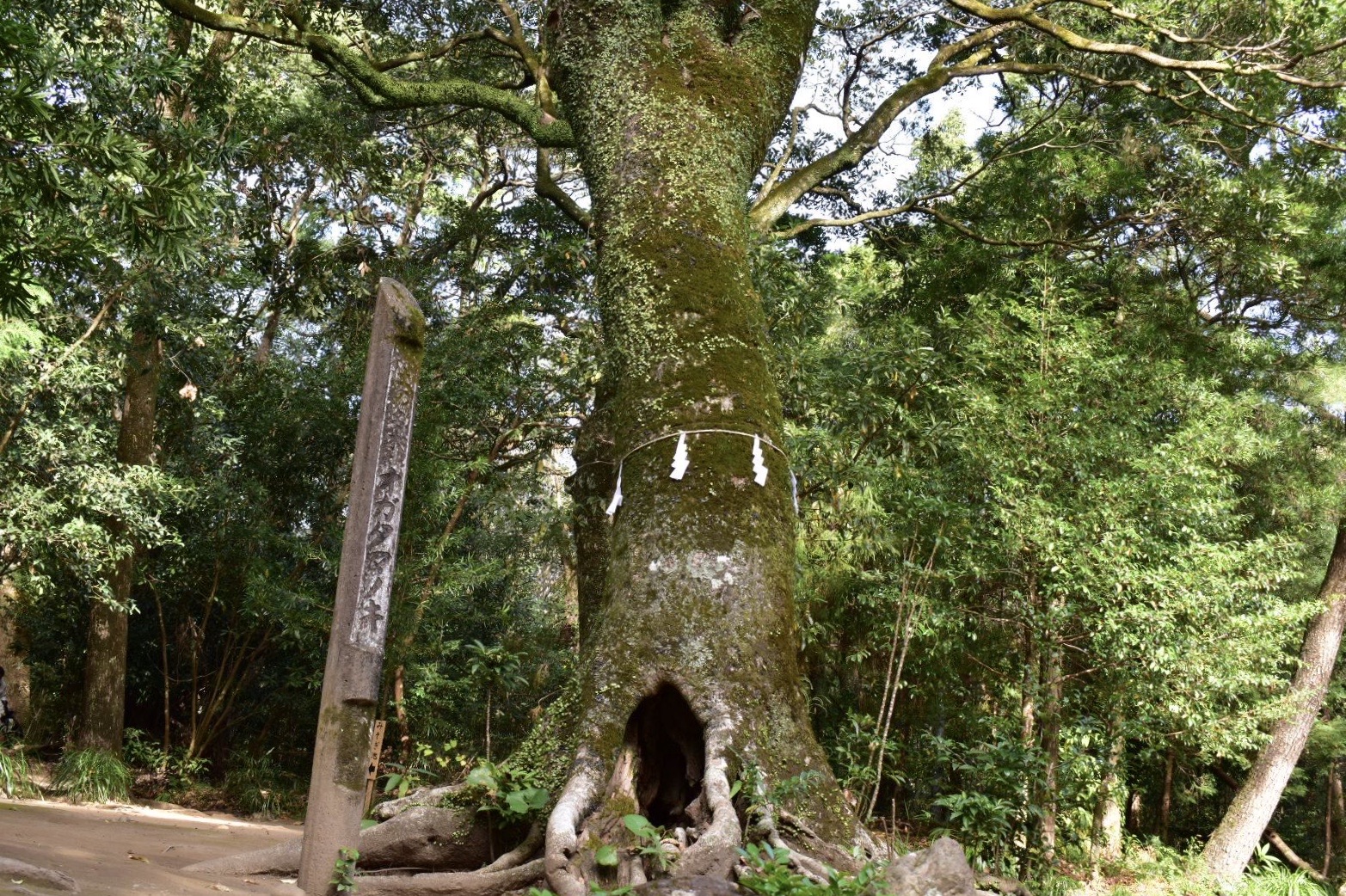もう1つは大きなクスノキで、木の下の方にあるコブに触れると強運を得られると言われています。