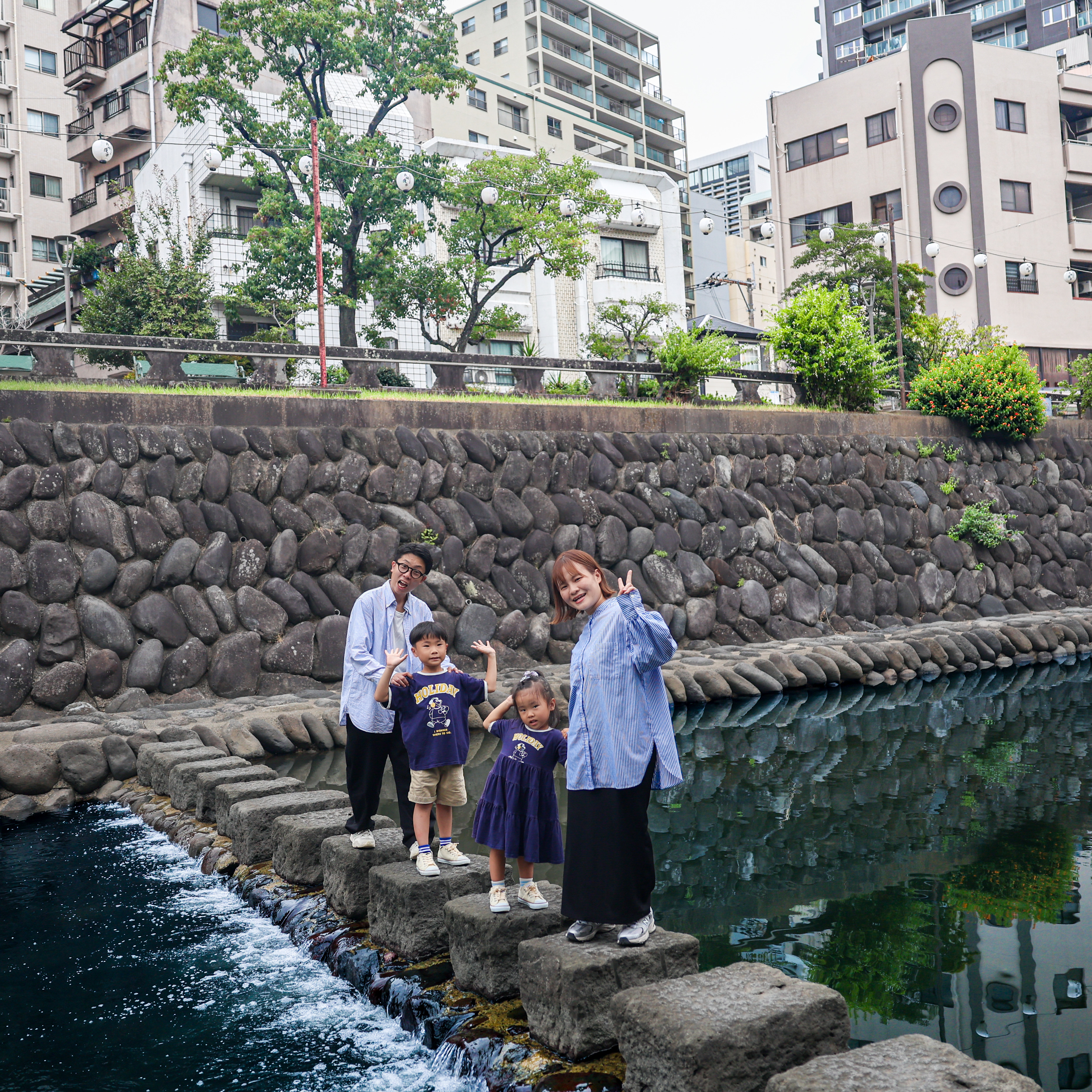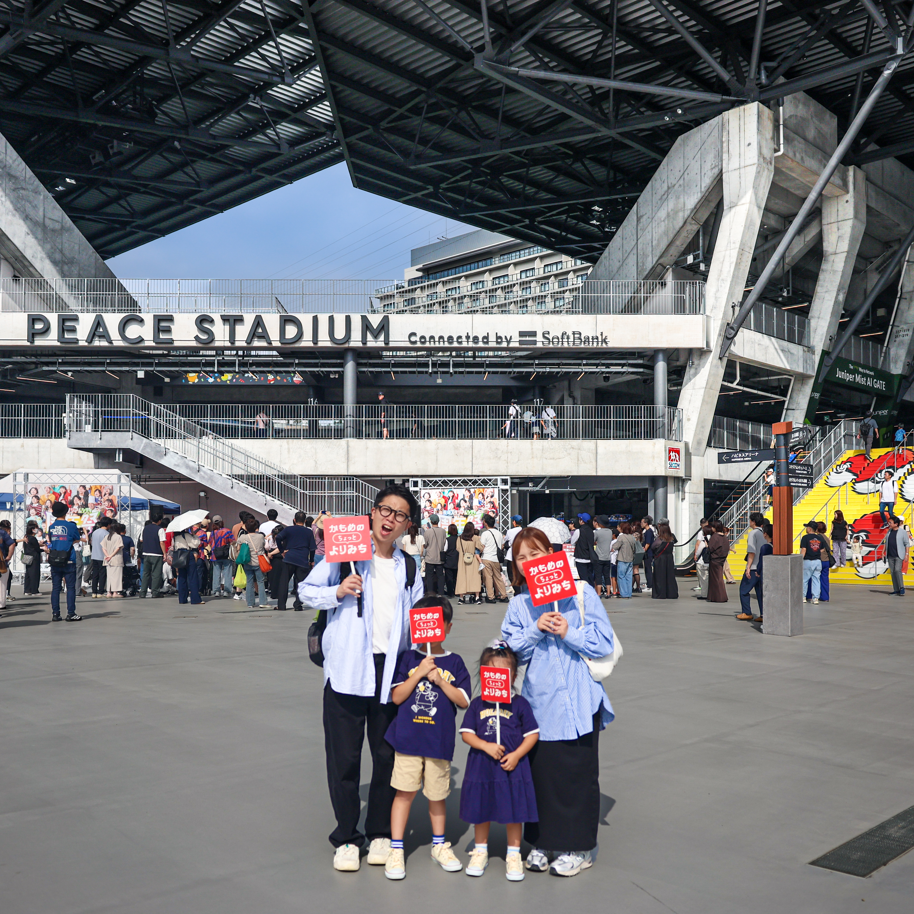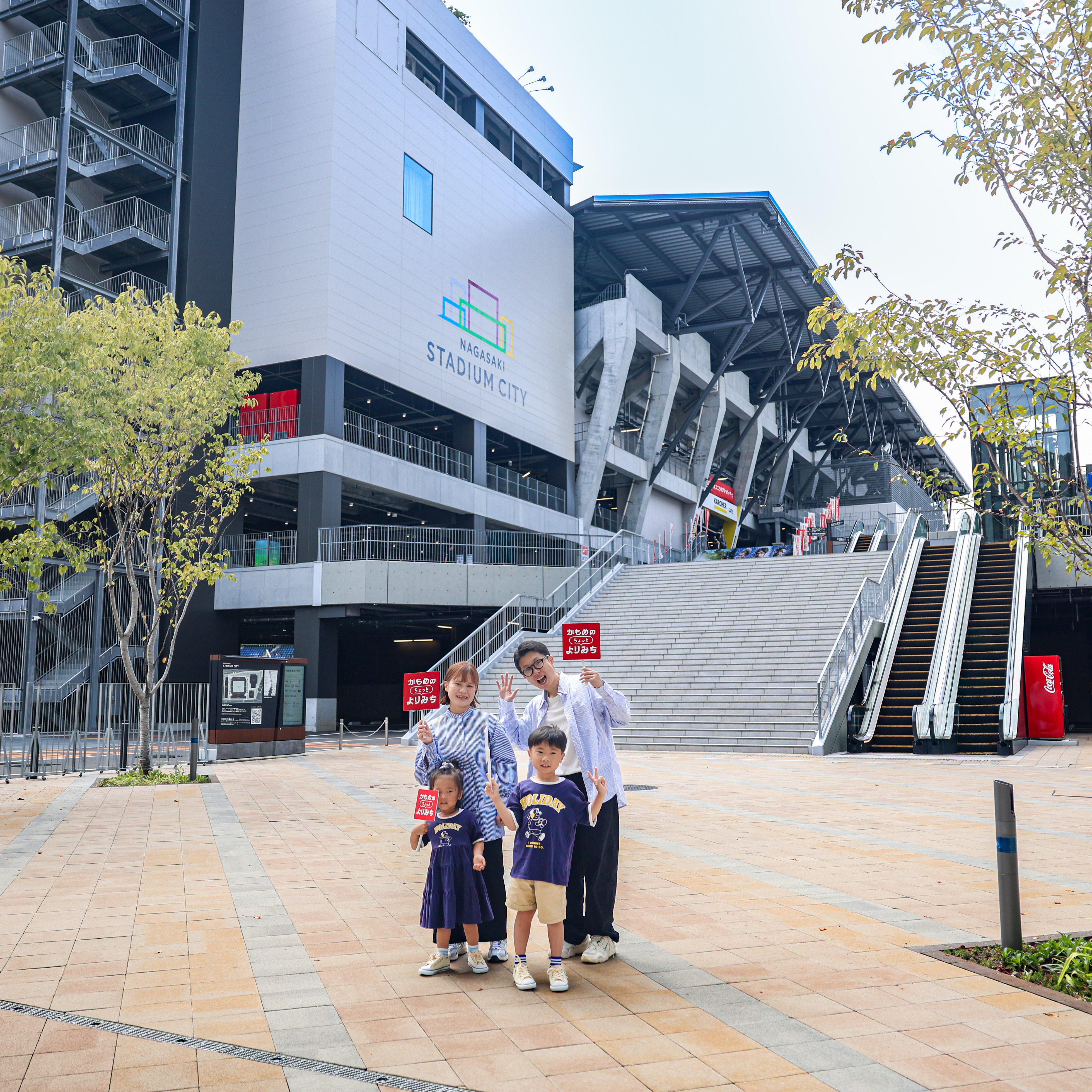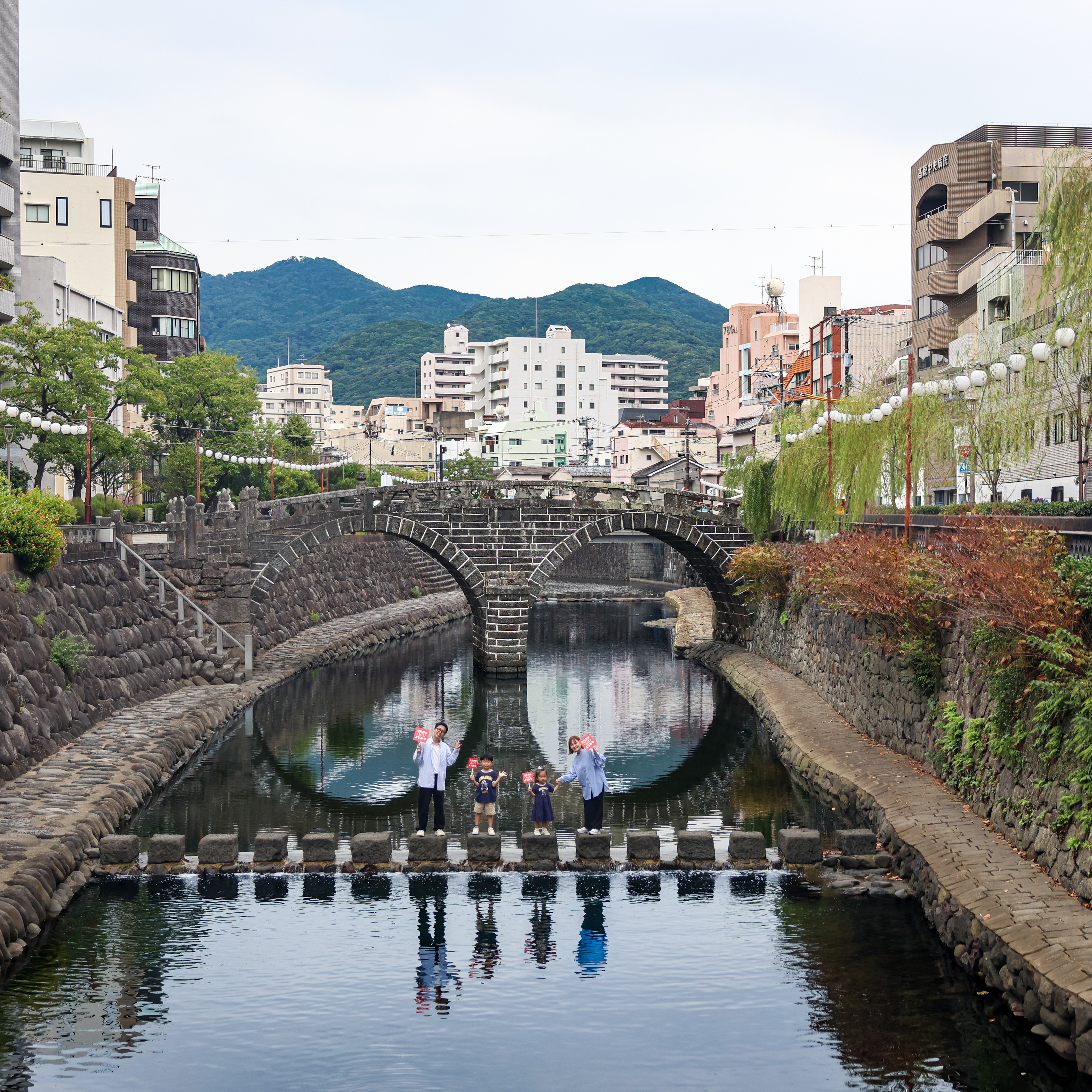 ちびっこふぁみりさんとそのご家族が、長崎駅、長崎スタジアムシティ、鎮西大社 諏訪神社、眼鏡橋、海鮮市場 長崎港 出島ワーフ店をご紹介。