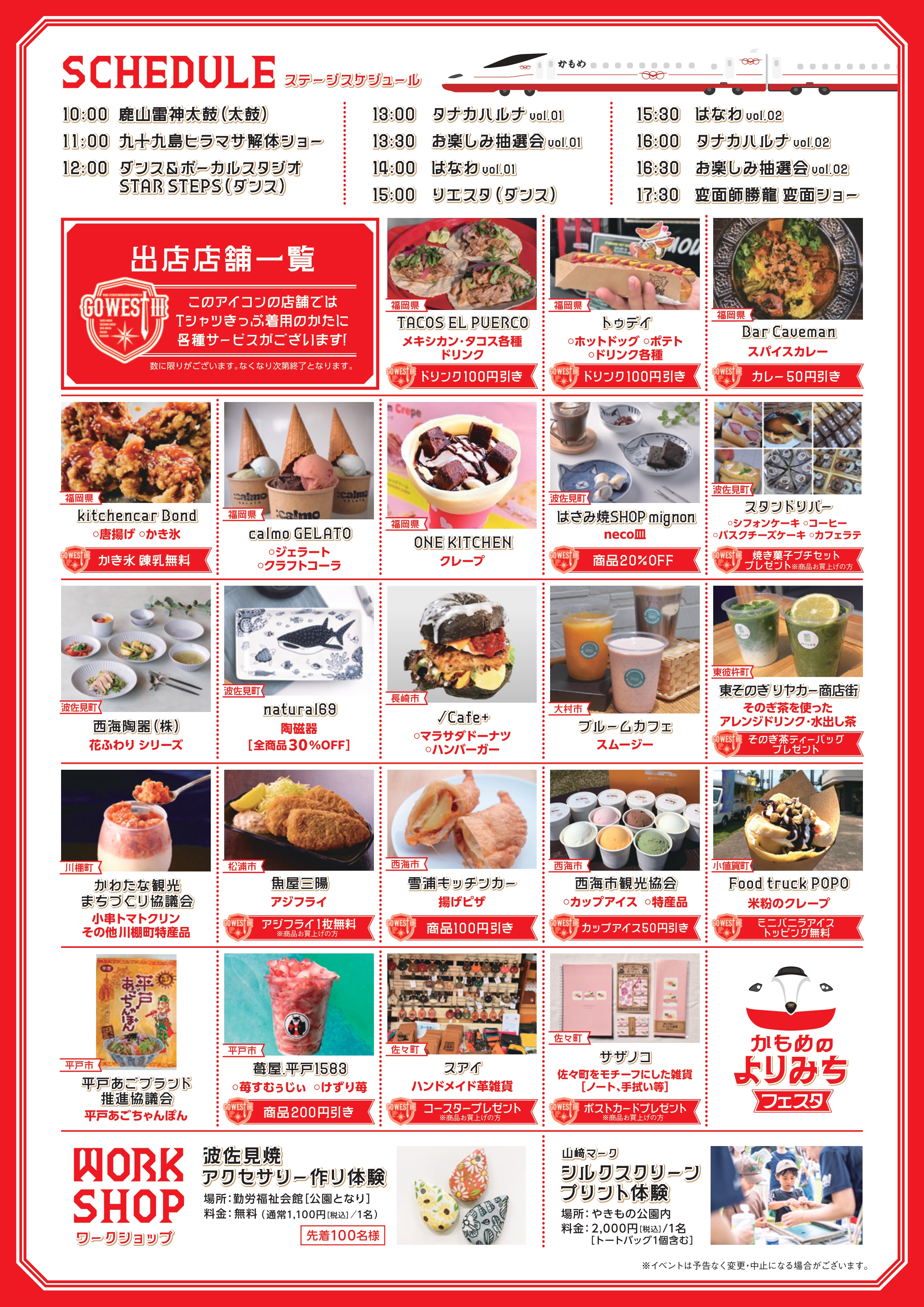 ステージイベントでは、スペシャルゲストのはなわさん、タナカハルナさんによるライブが開催予定です。