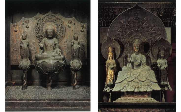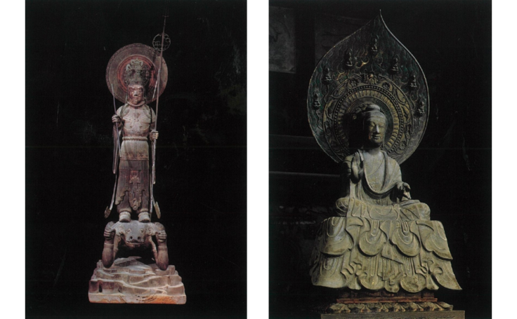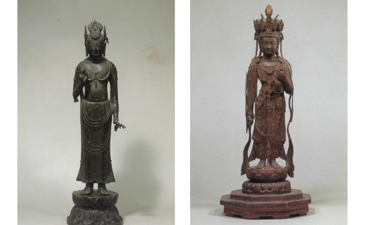 ▼(左)国宝 木造百済観音像 (右)国宝 玉虫厨子