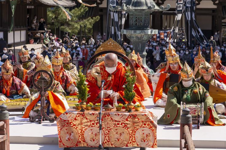 重要文化財指定の西園院客殿にて、松喰鶴の図円鏡(平安時代後期)の複製に願いを刻み込んでいただき、奈良時代の創建と伝えられる西円堂のご本尊「国宝薬師如来像」に御奉納いただきます。