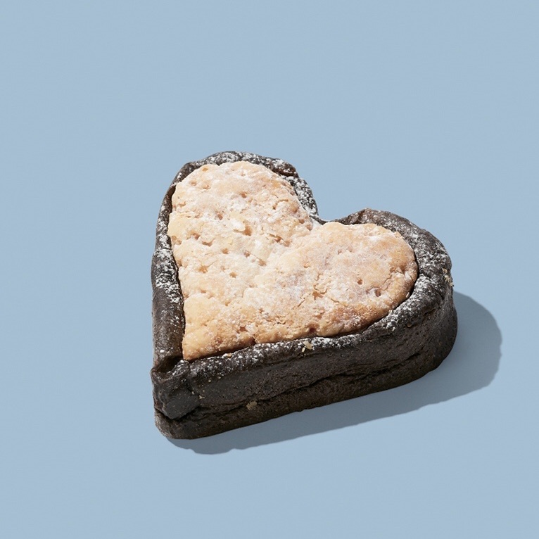 ドライフルーツ入りのココア生地でミルクチョコを包み、パイ生地と合わせてハート型に。