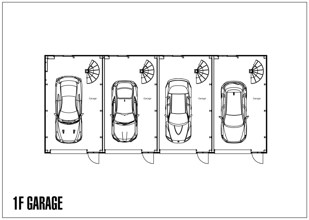 1Fはガレージや店舗、オフィスとしてご利用いただけます。