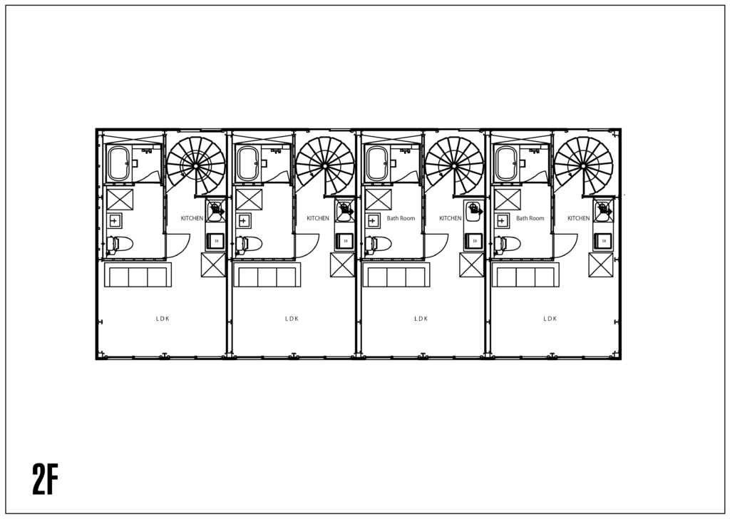 2Fにキッチンスペース、トイレ、バスルームがあります。