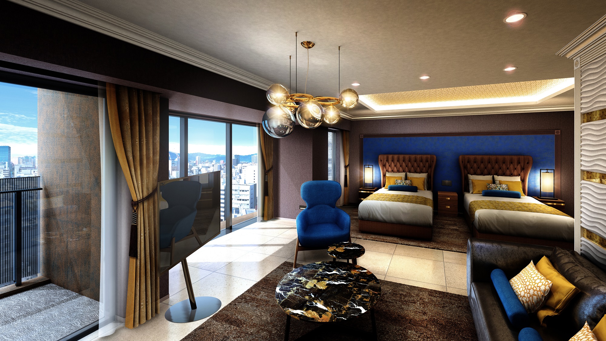 海外のハイグレードホテルのような設えを施したゲストルームをスカイラウンジの隣にご用意。