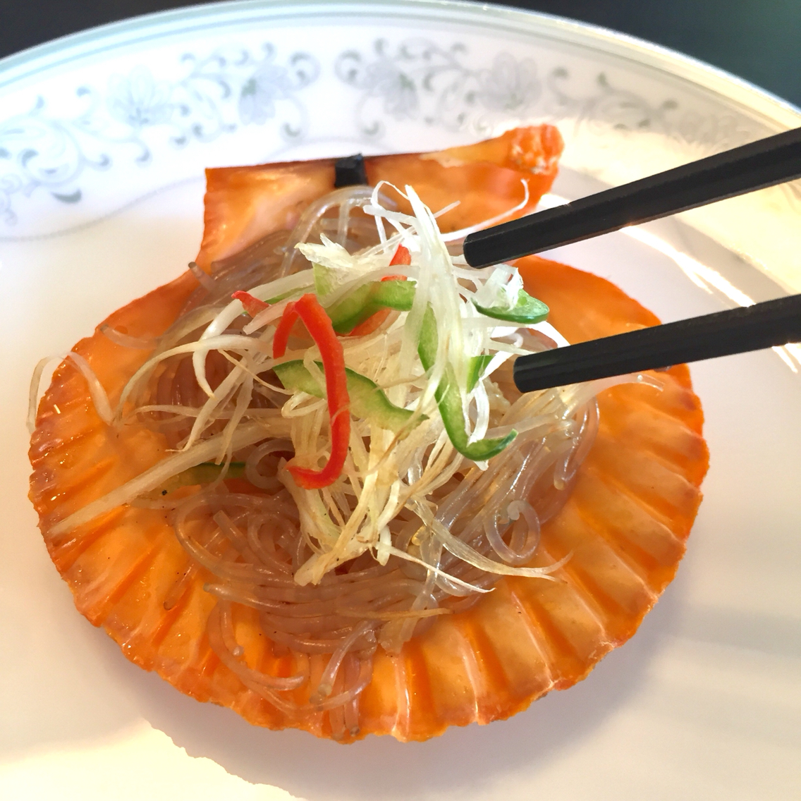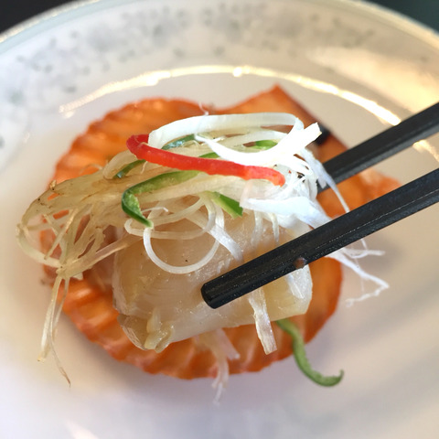 天草産緋扇貝のガーリック蒸しは福岡天神店独自のメニューで、色鮮やかな貝に包まれている貝柱の味はホタテガイより濃厚で、甘みも強く、火を通してさらに凝縮した味わいとなっていました。