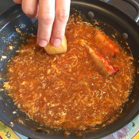 揚げパンはふっくらとしていて、チリクラブのソースをつけていただきました。