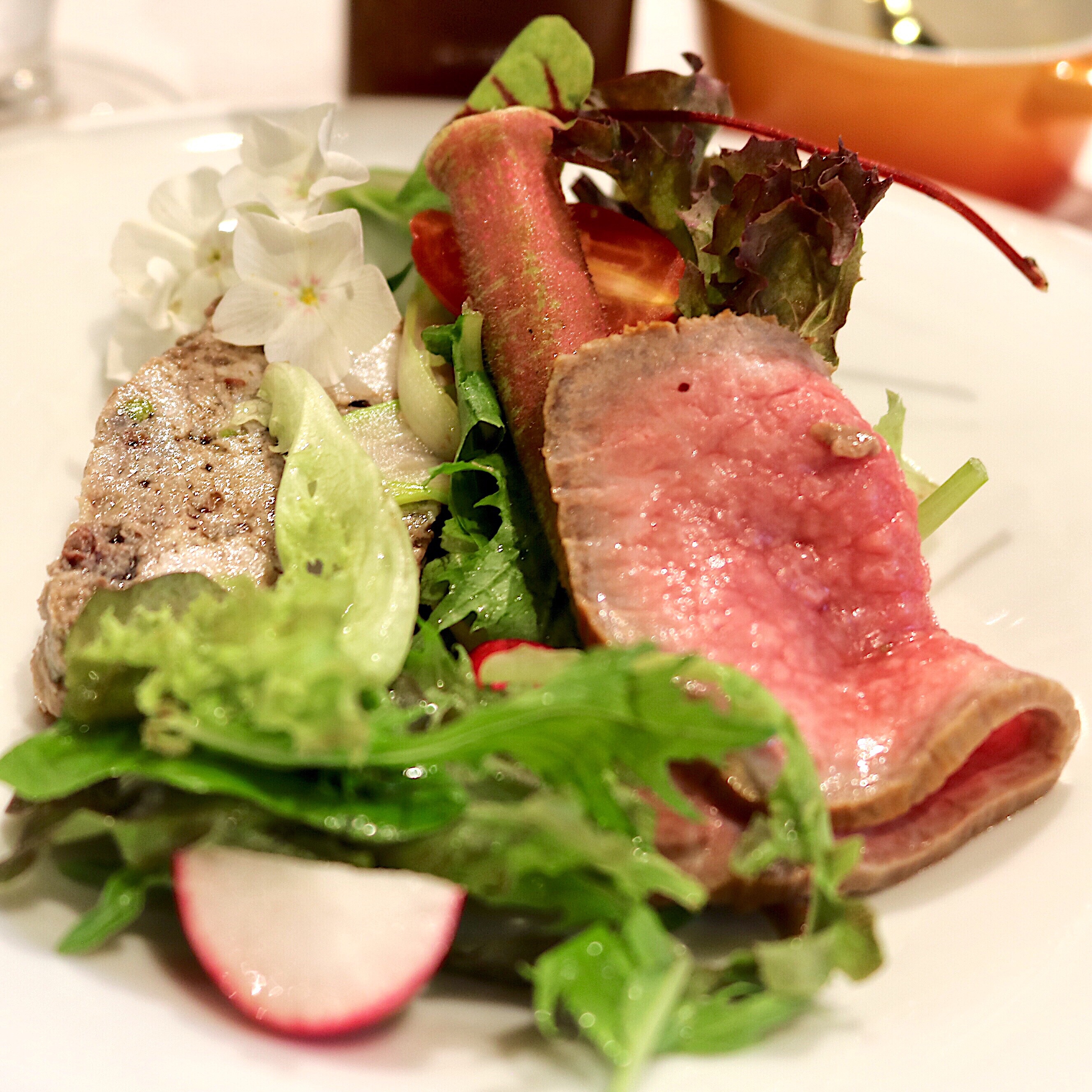 ●パテ ド カンパーニュとスモーク ローストビーフの菜園風