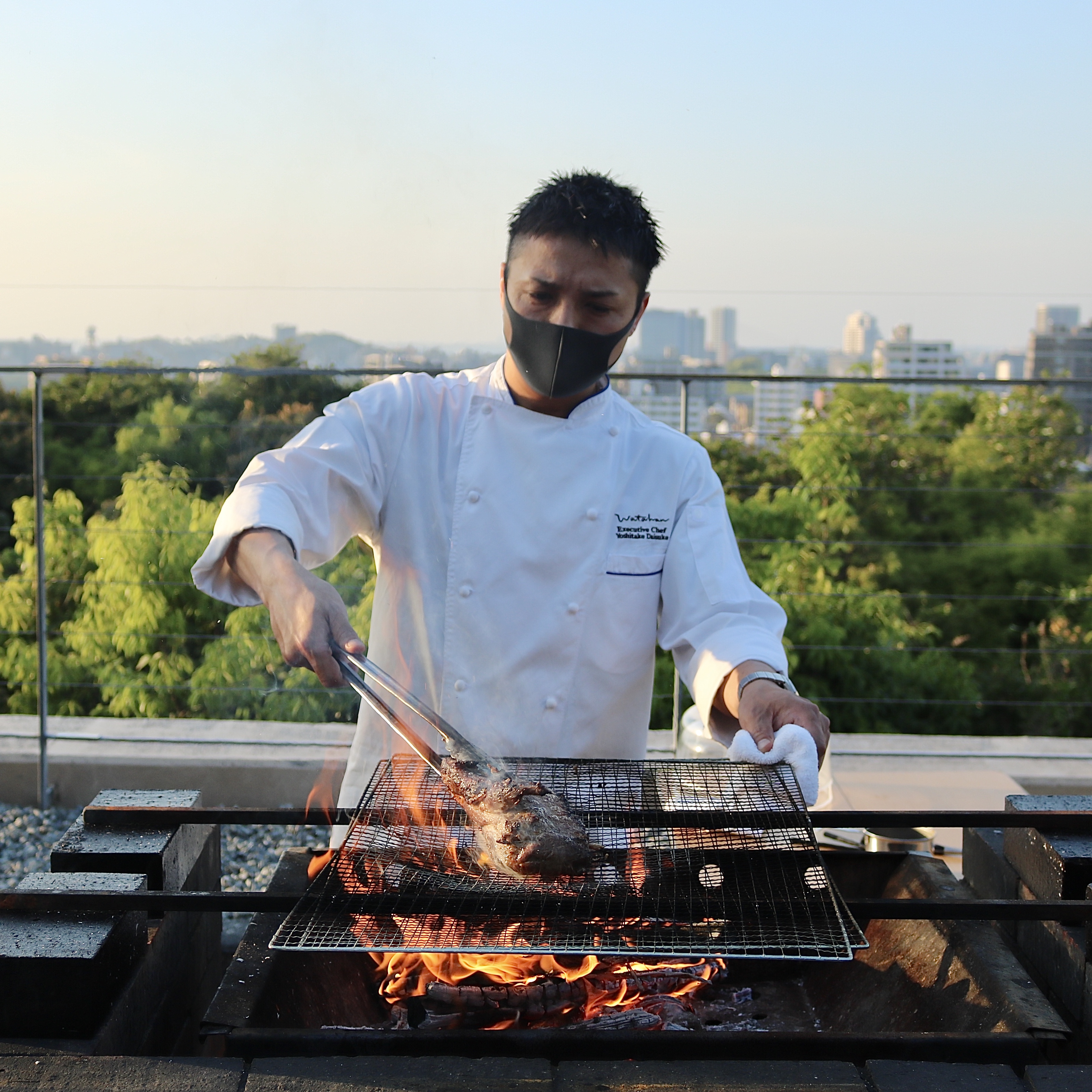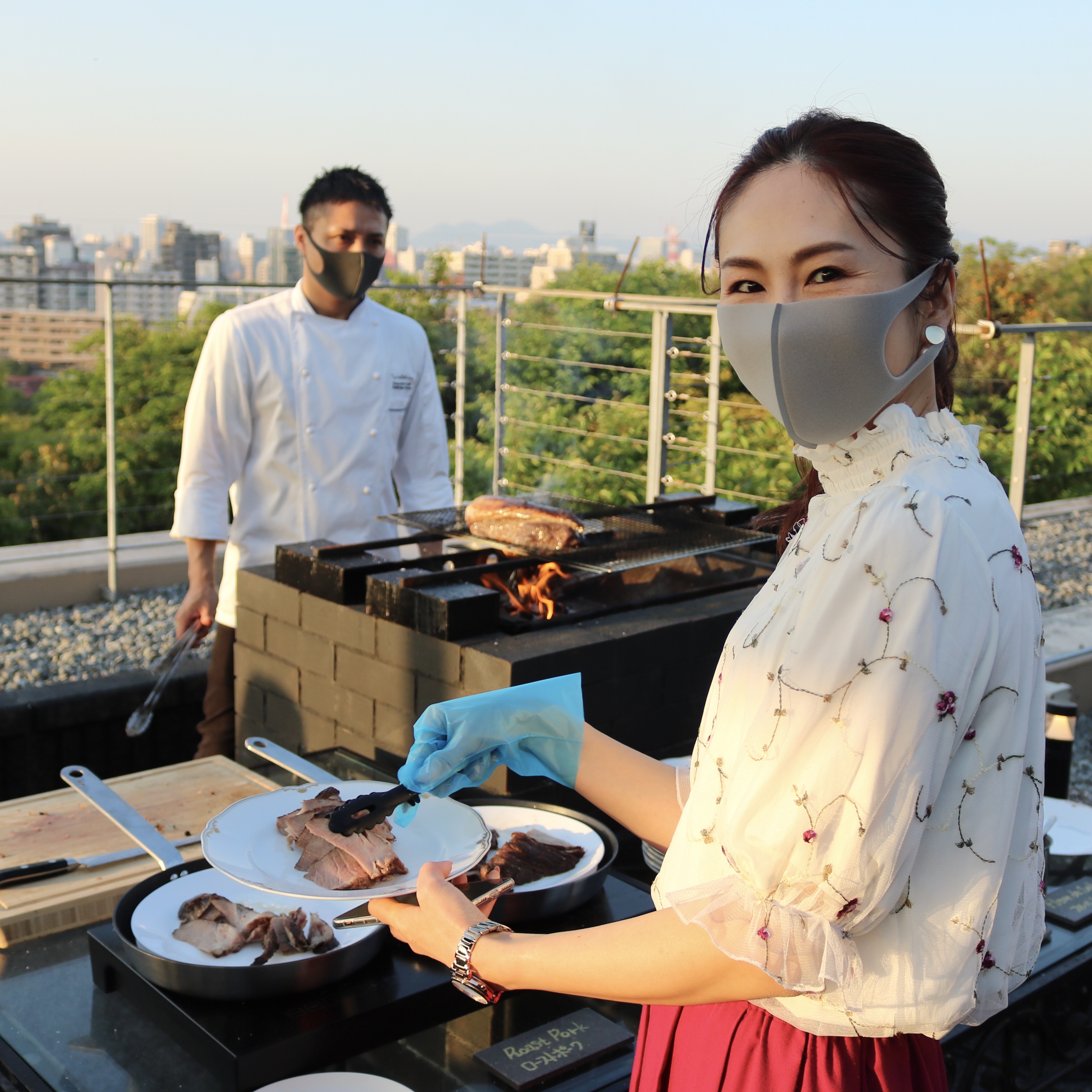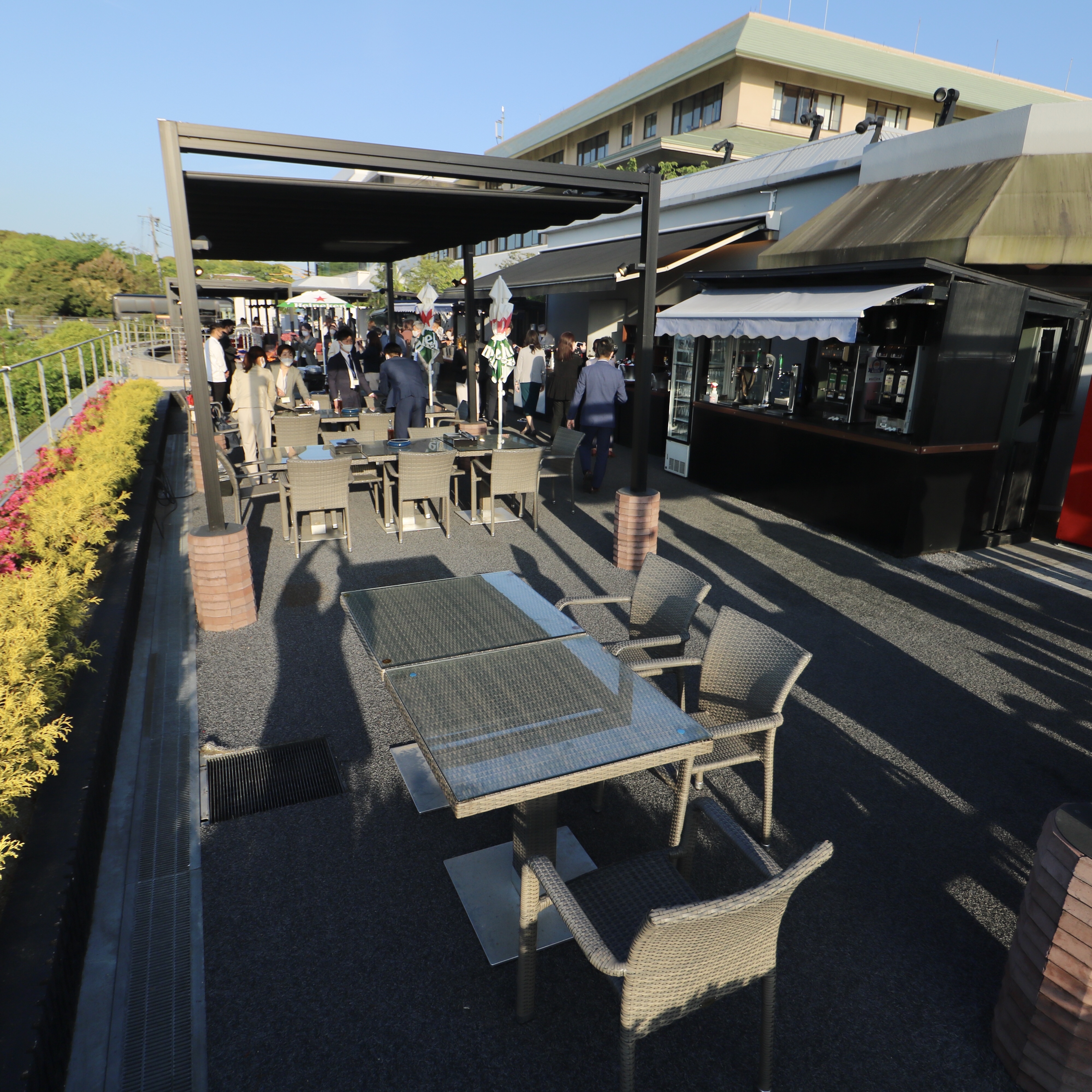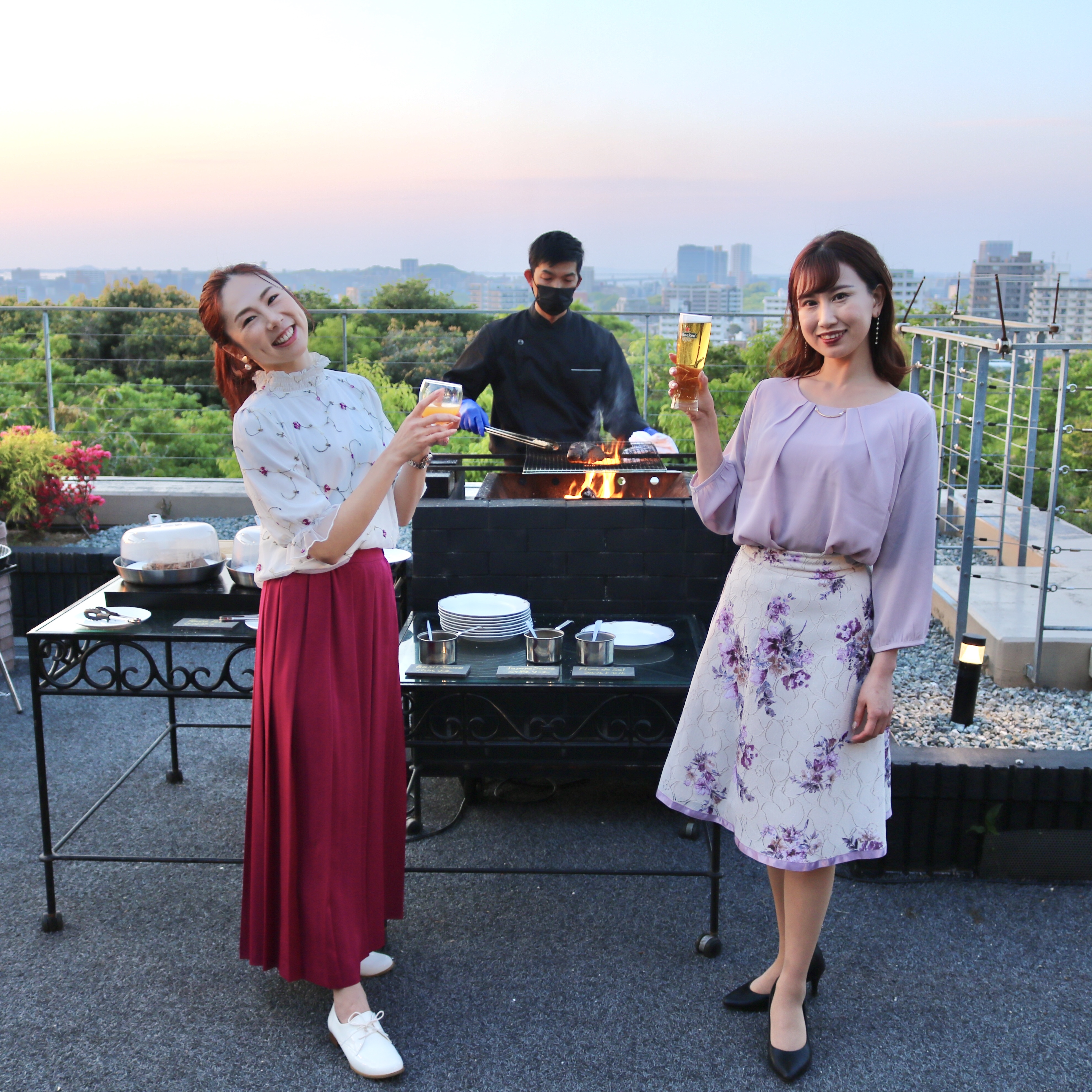同レストランにて、青空の下、開放感溢れるスタイリッシュな空間で、ちょっと贅沢なバーベキューランチ。ピクニック気分でランチのひとときをお楽しみいただけます。