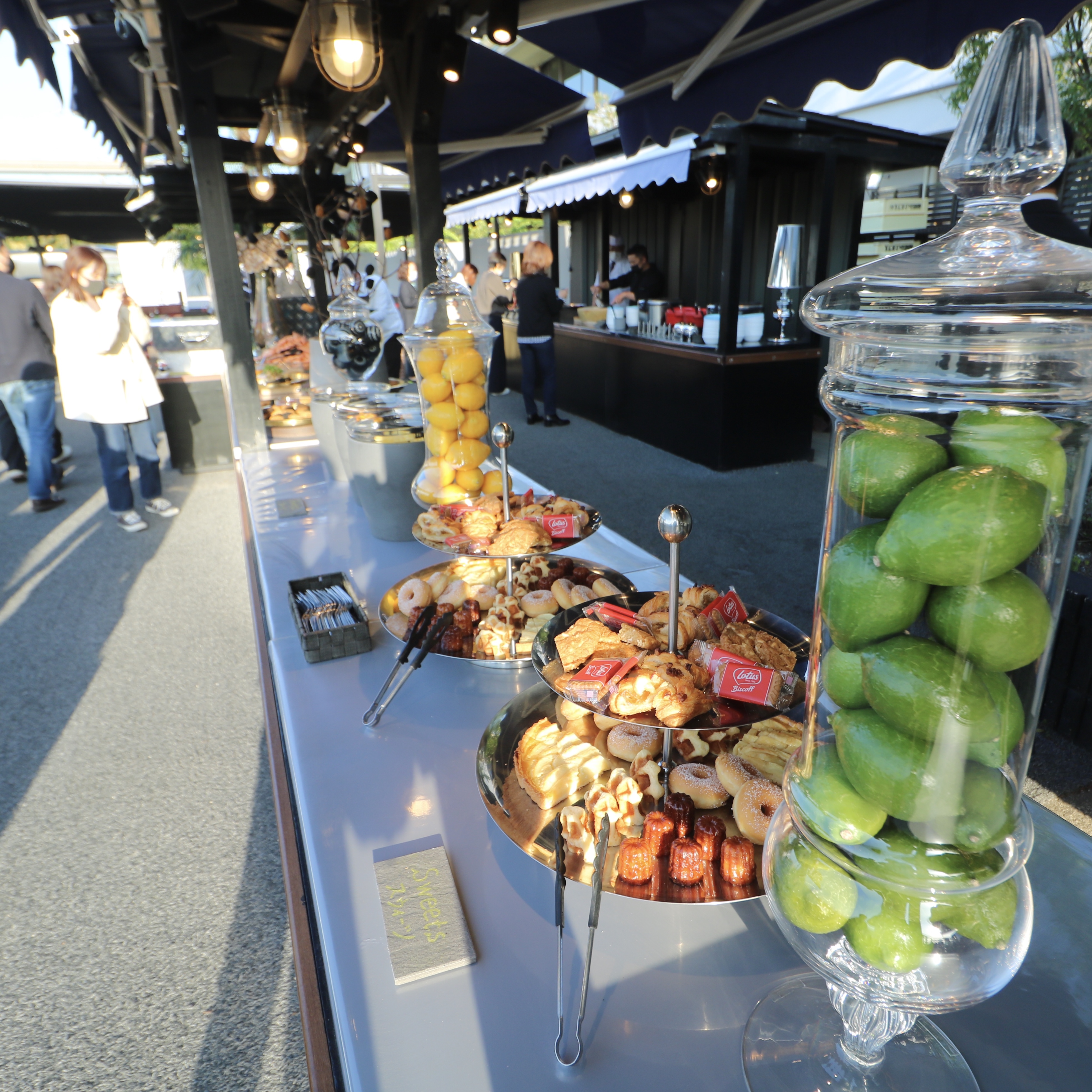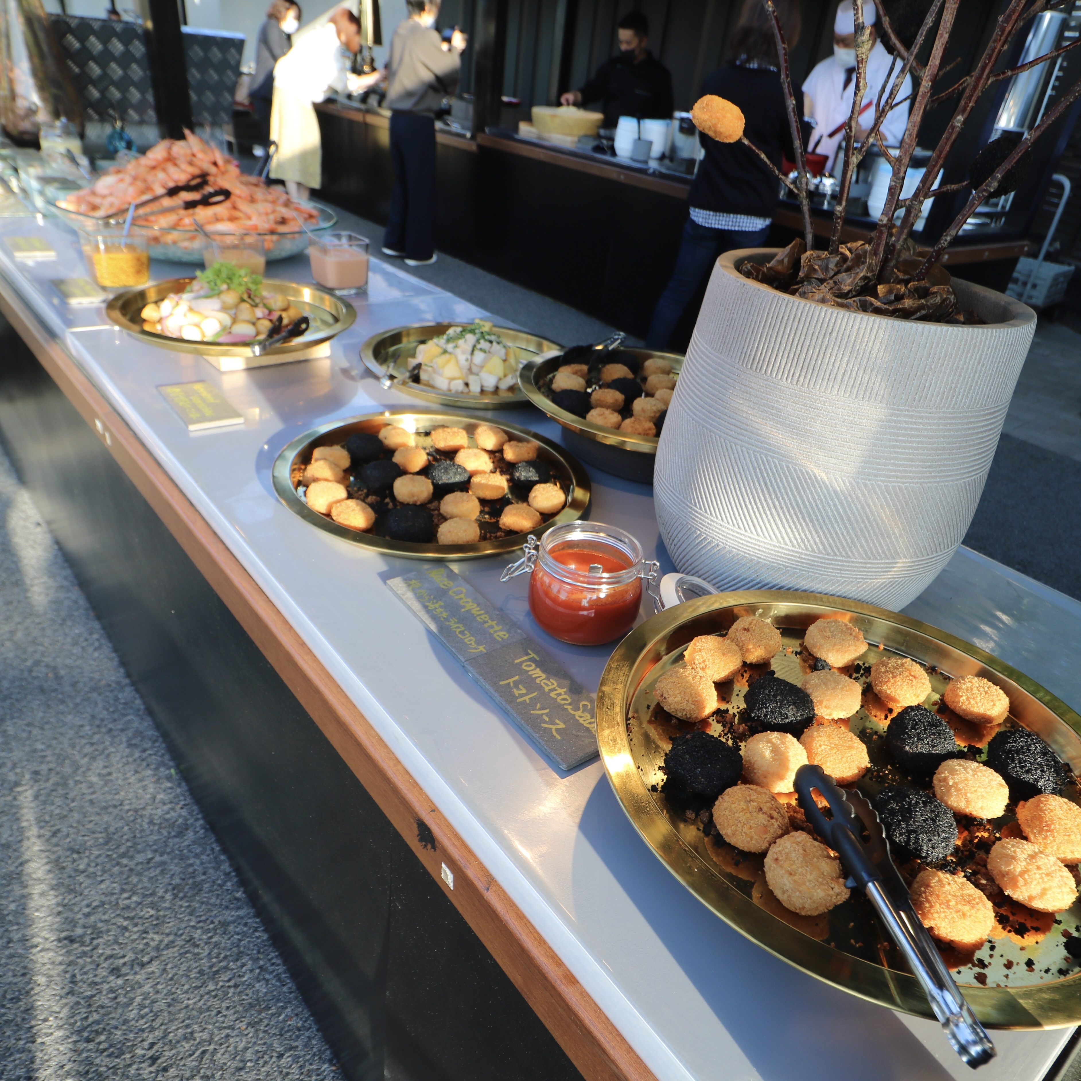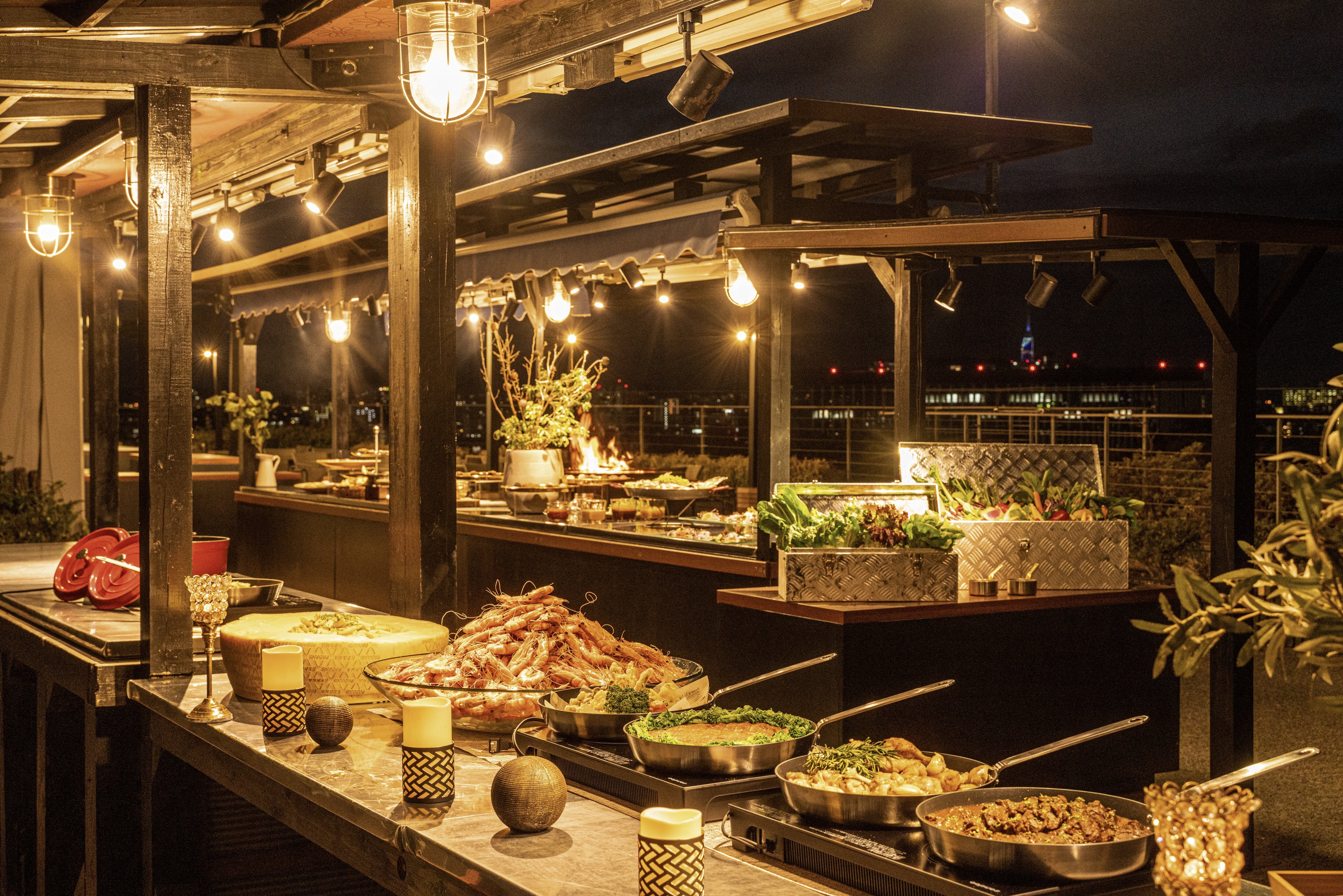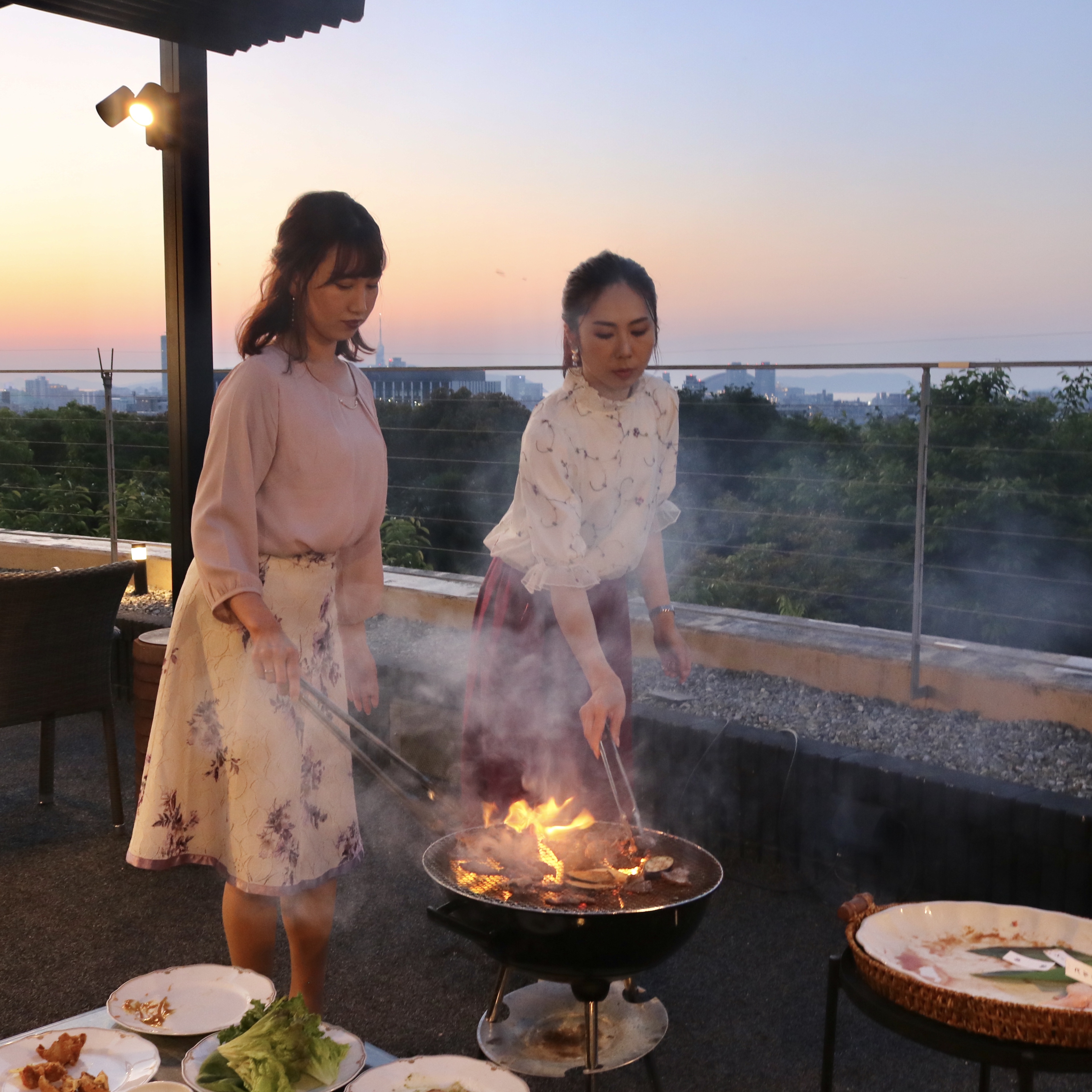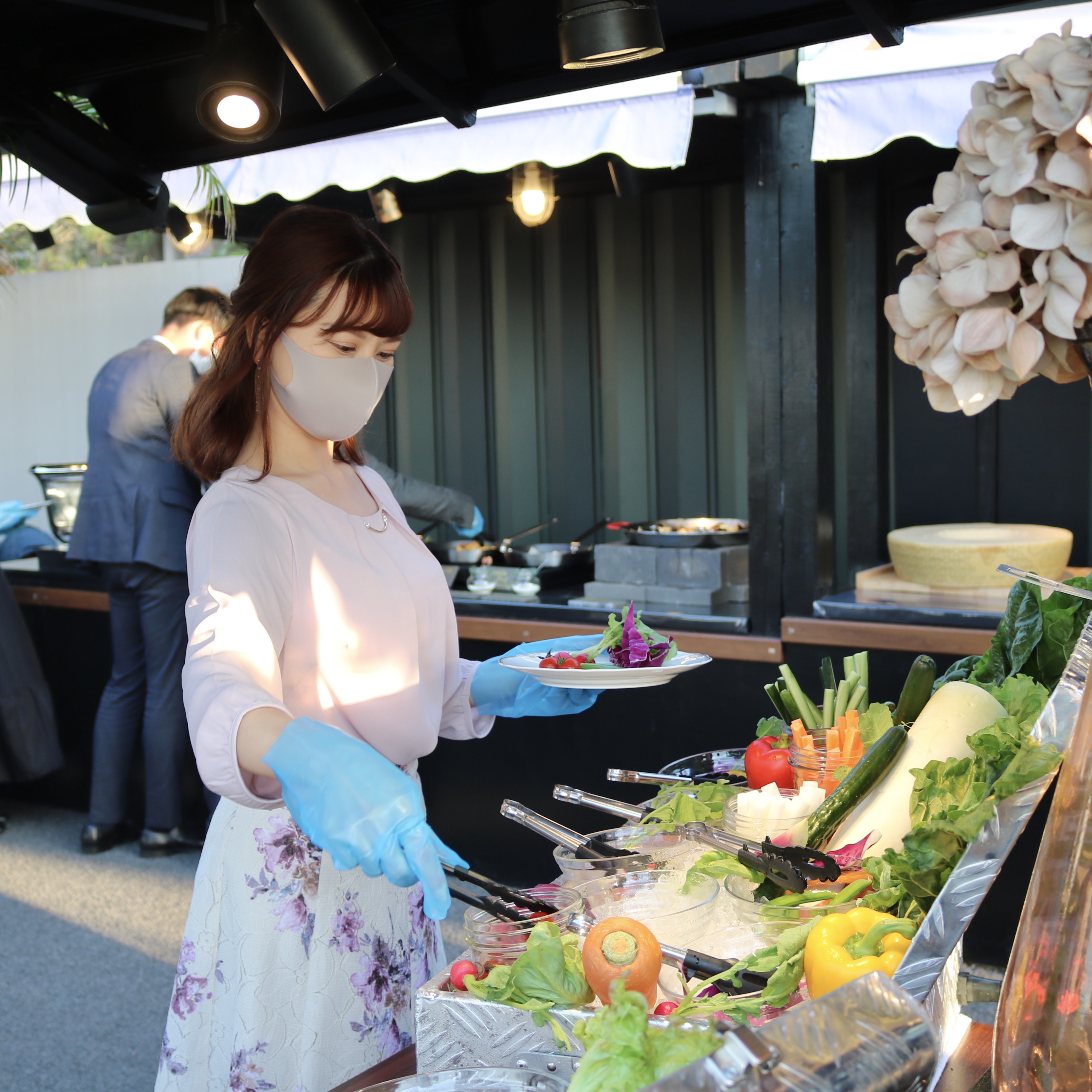 同レストランにて、青空の下、開放感溢れるスタイリッシュな空間で、ちょっと贅沢なバーベキューランチ。ピクニック気分でランチのひとときをお楽しみいただけます。