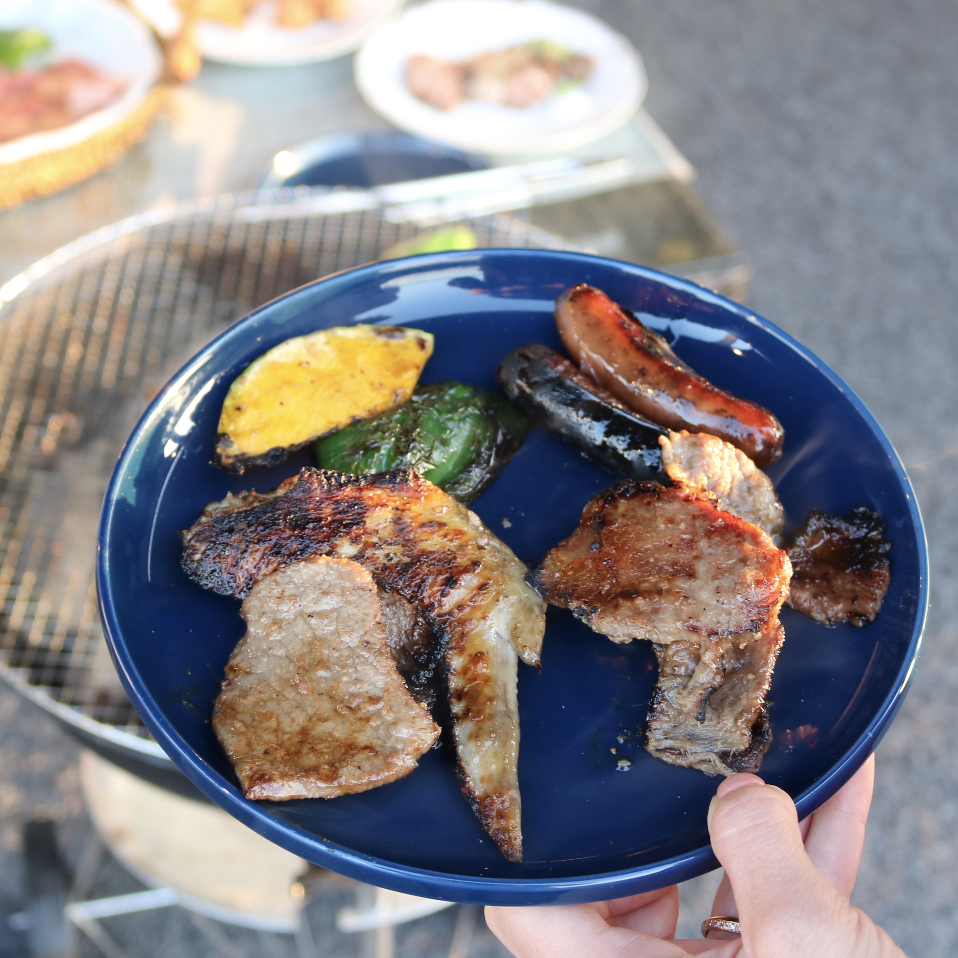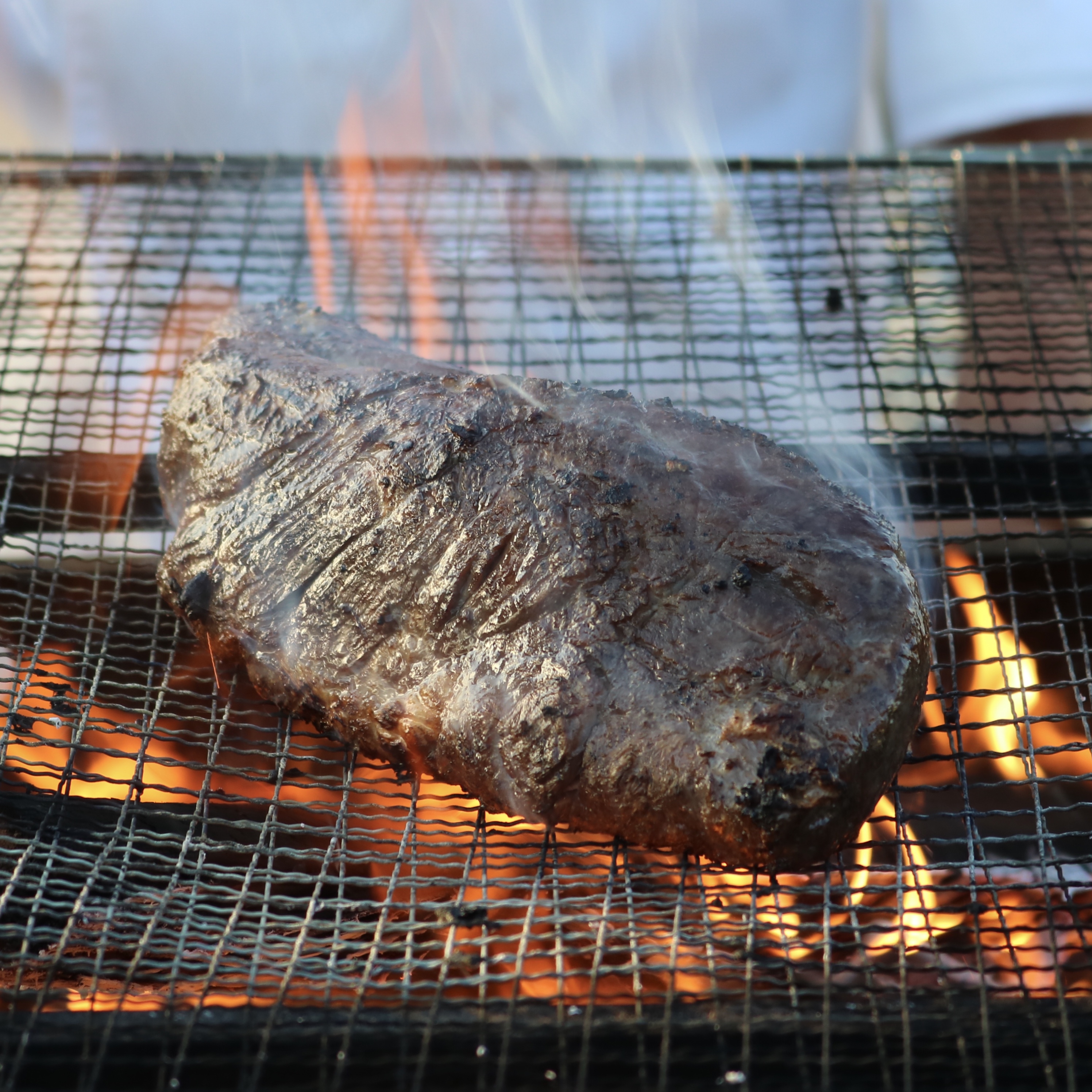 テーブルの横のバーベキューコンロで、そのまま焼くことができます。