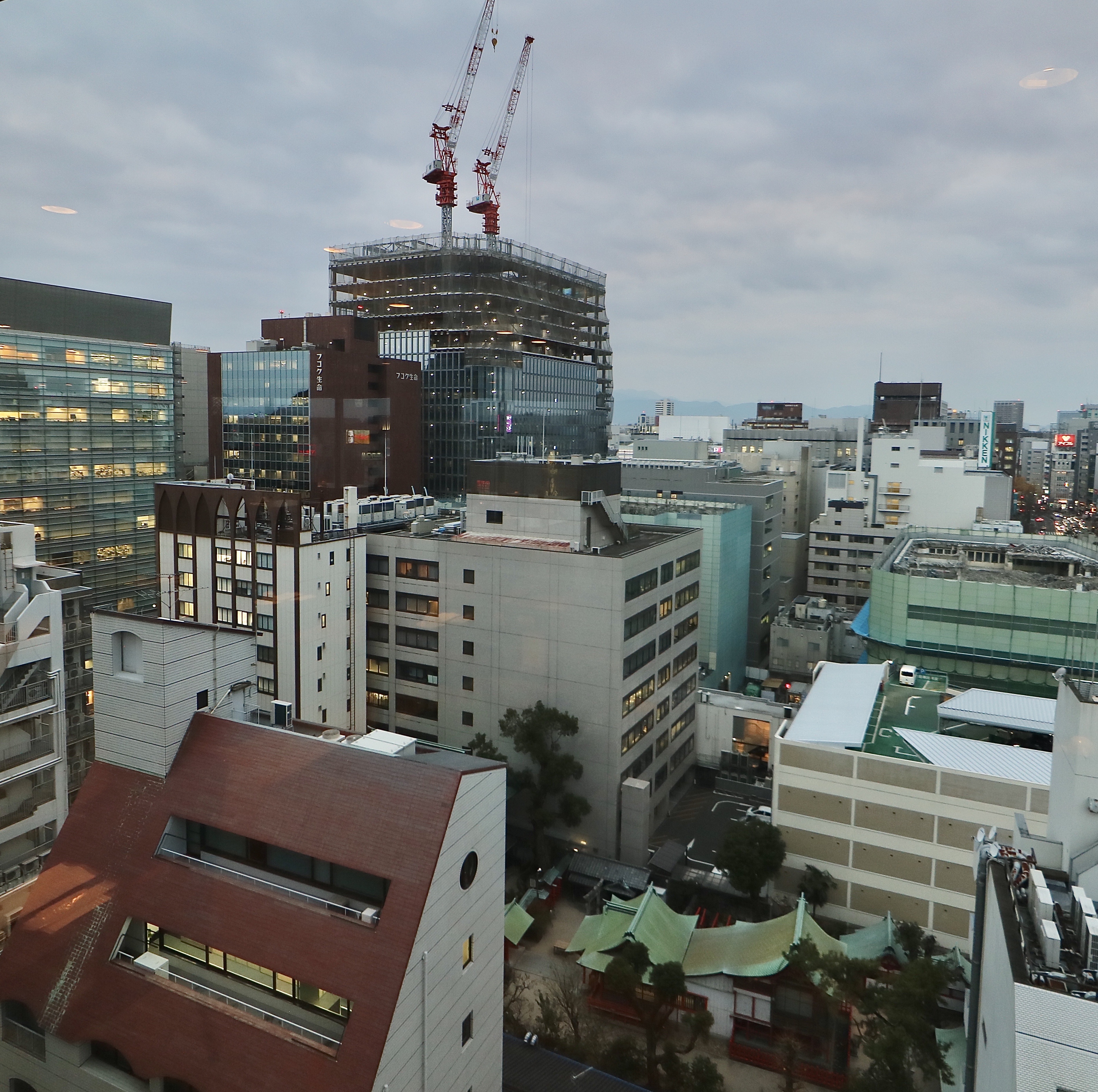 クレーンが乗っているビルは、天神ビッグバンで建設中のビルです。