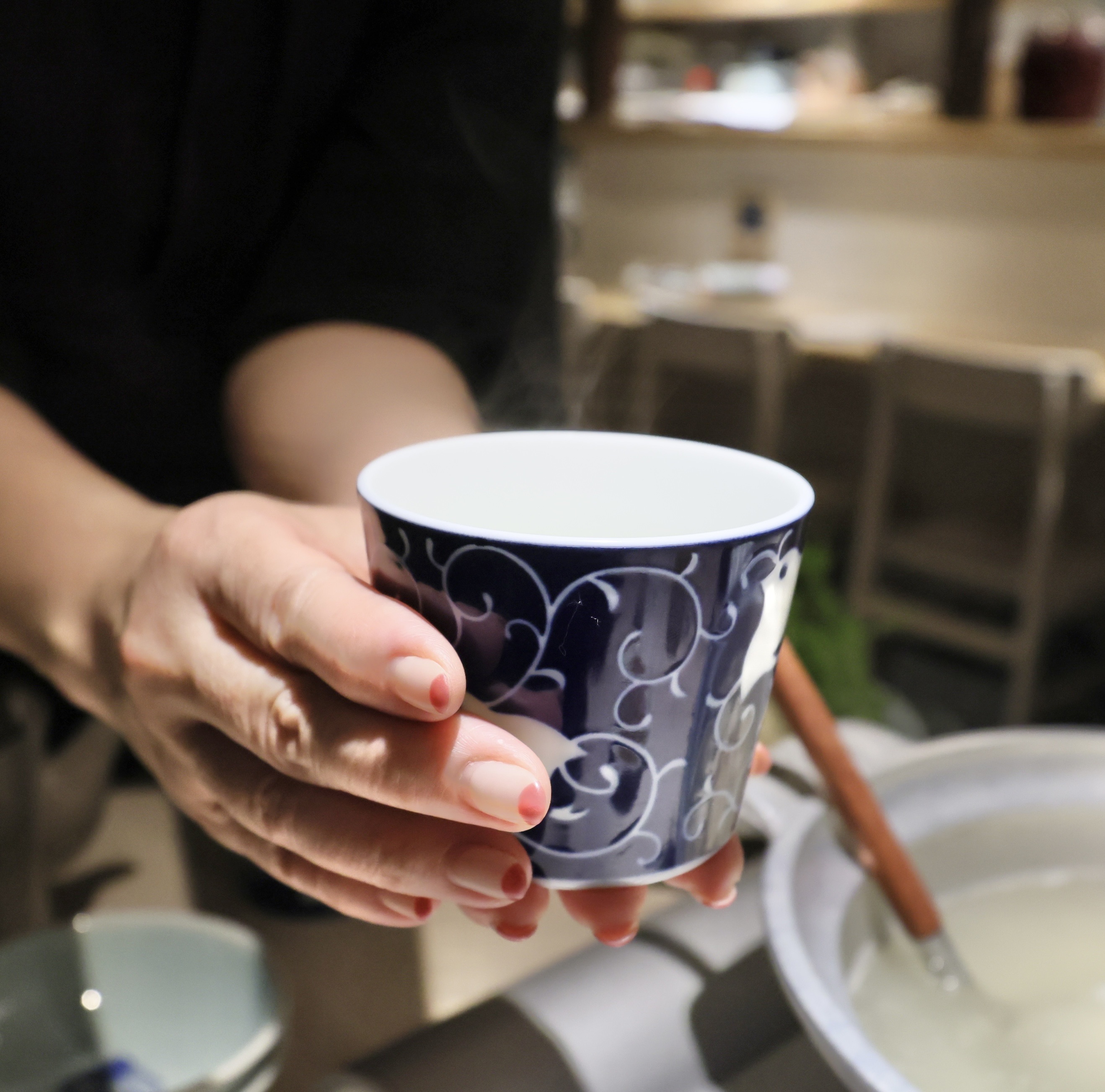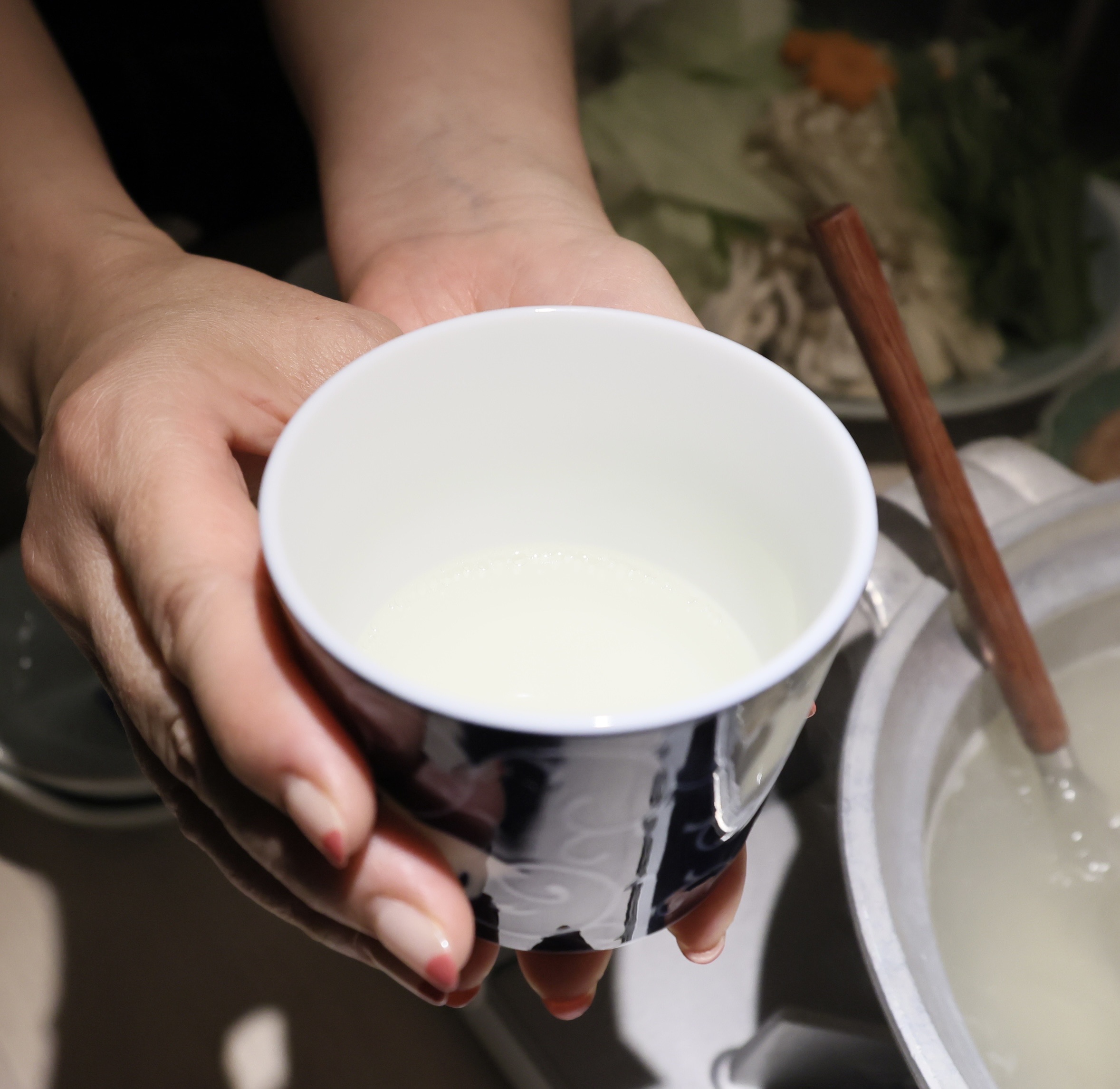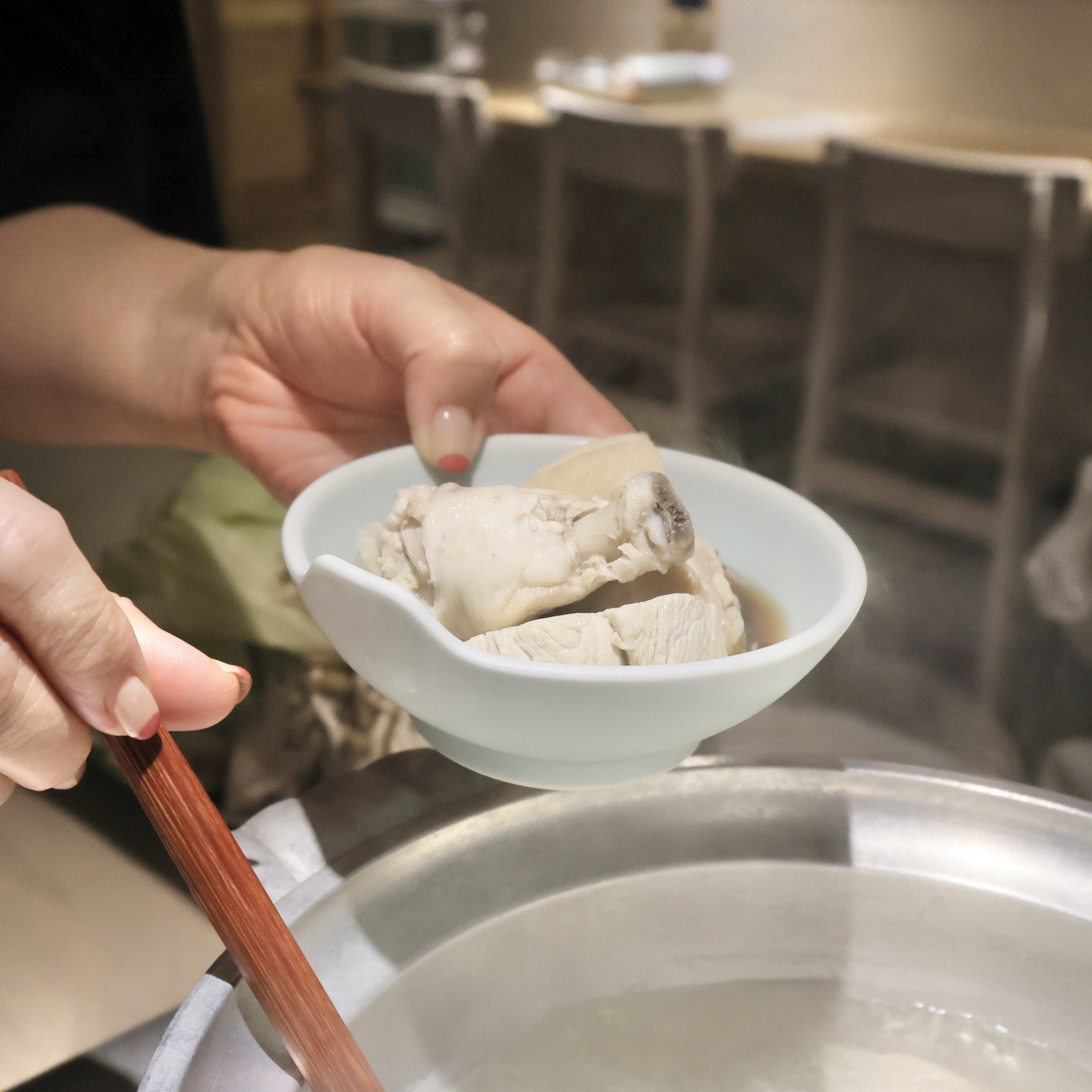 女将さんが鶏スープをすくってくださいました。