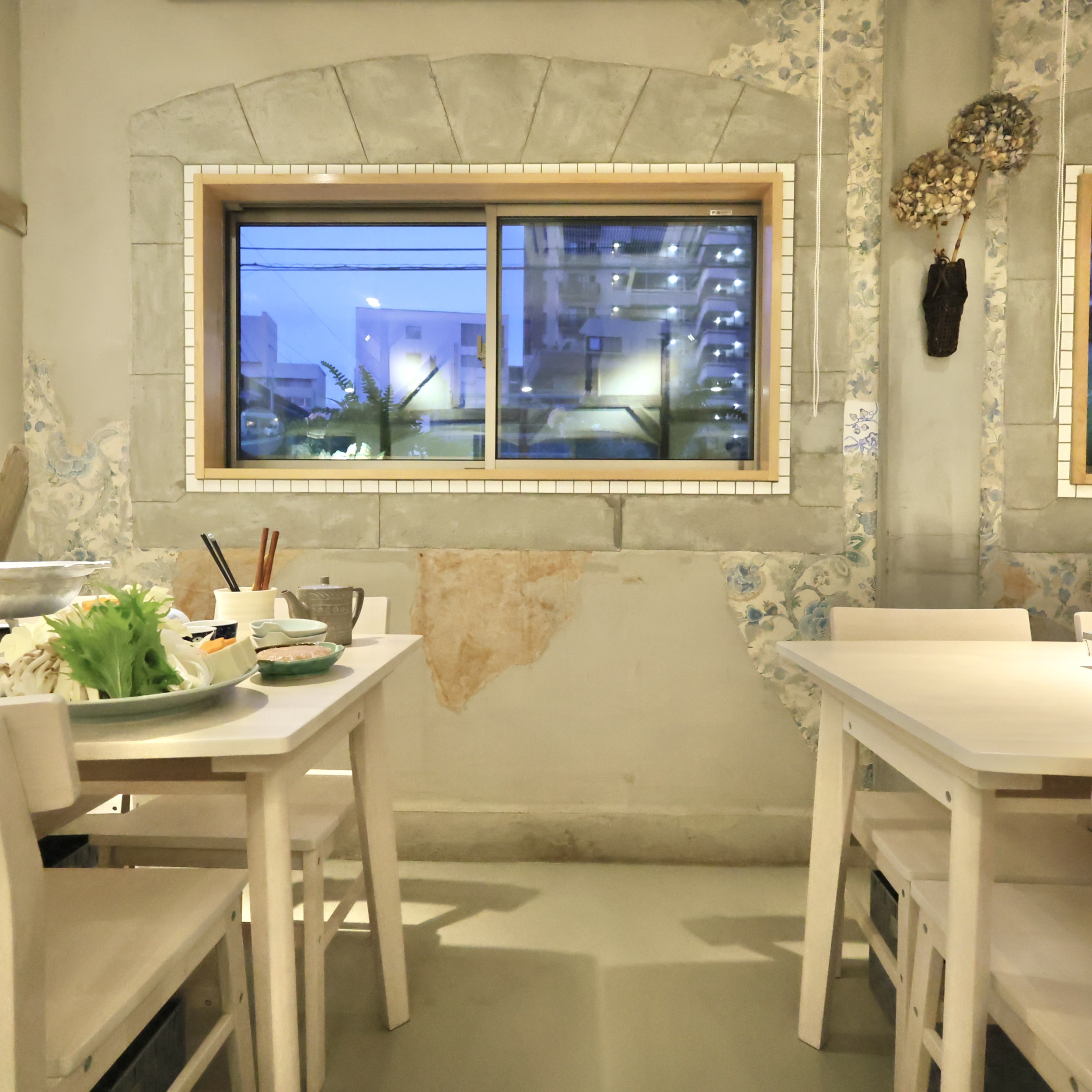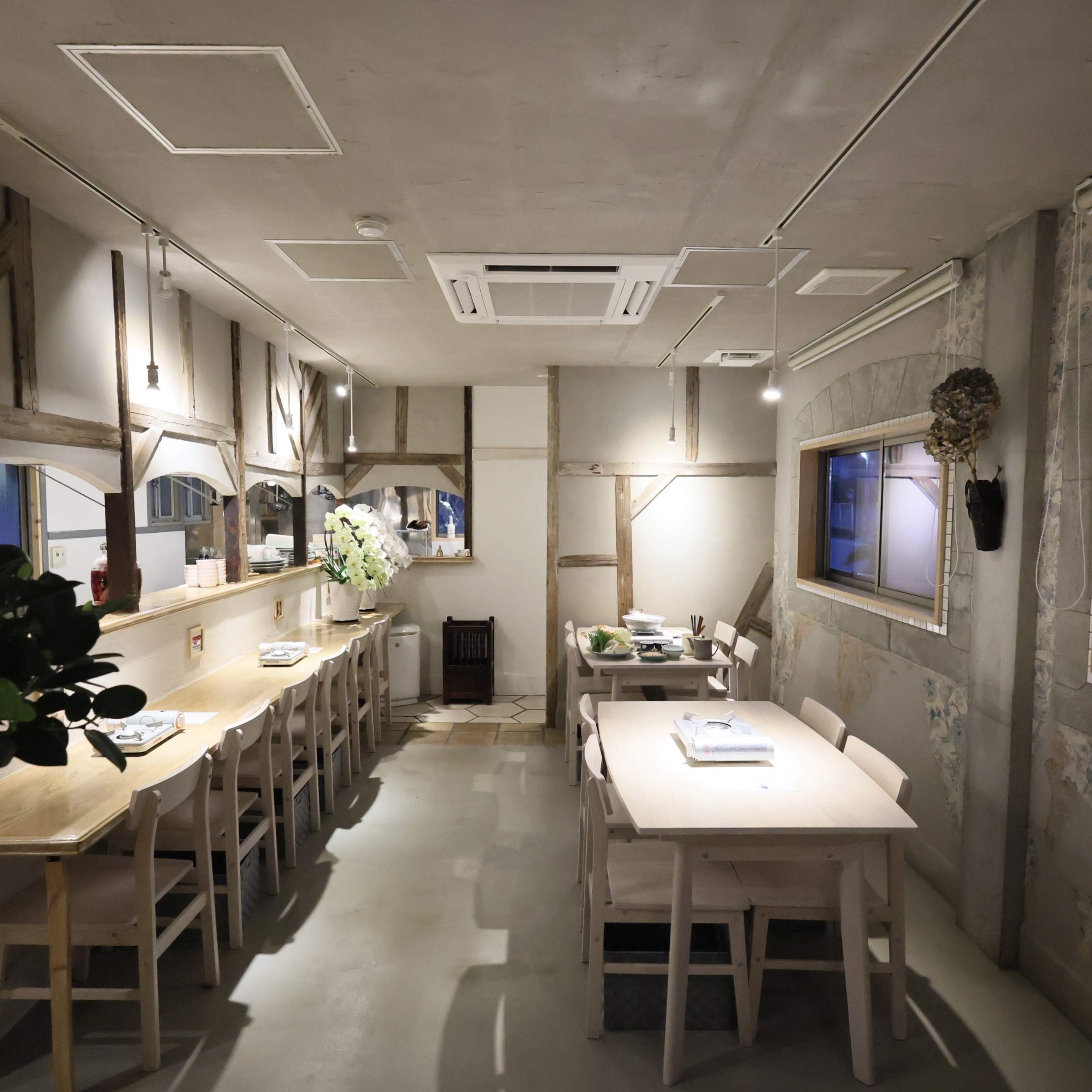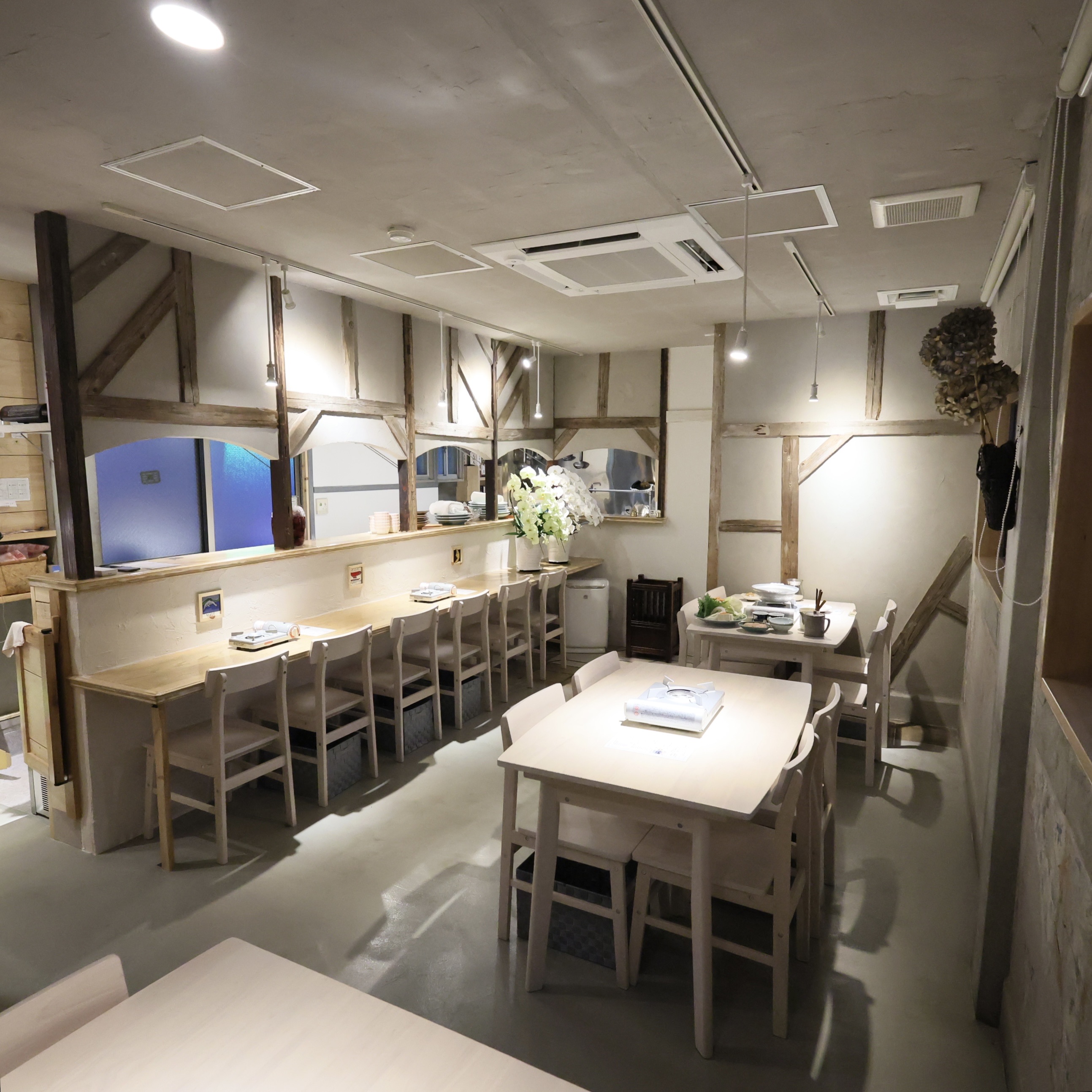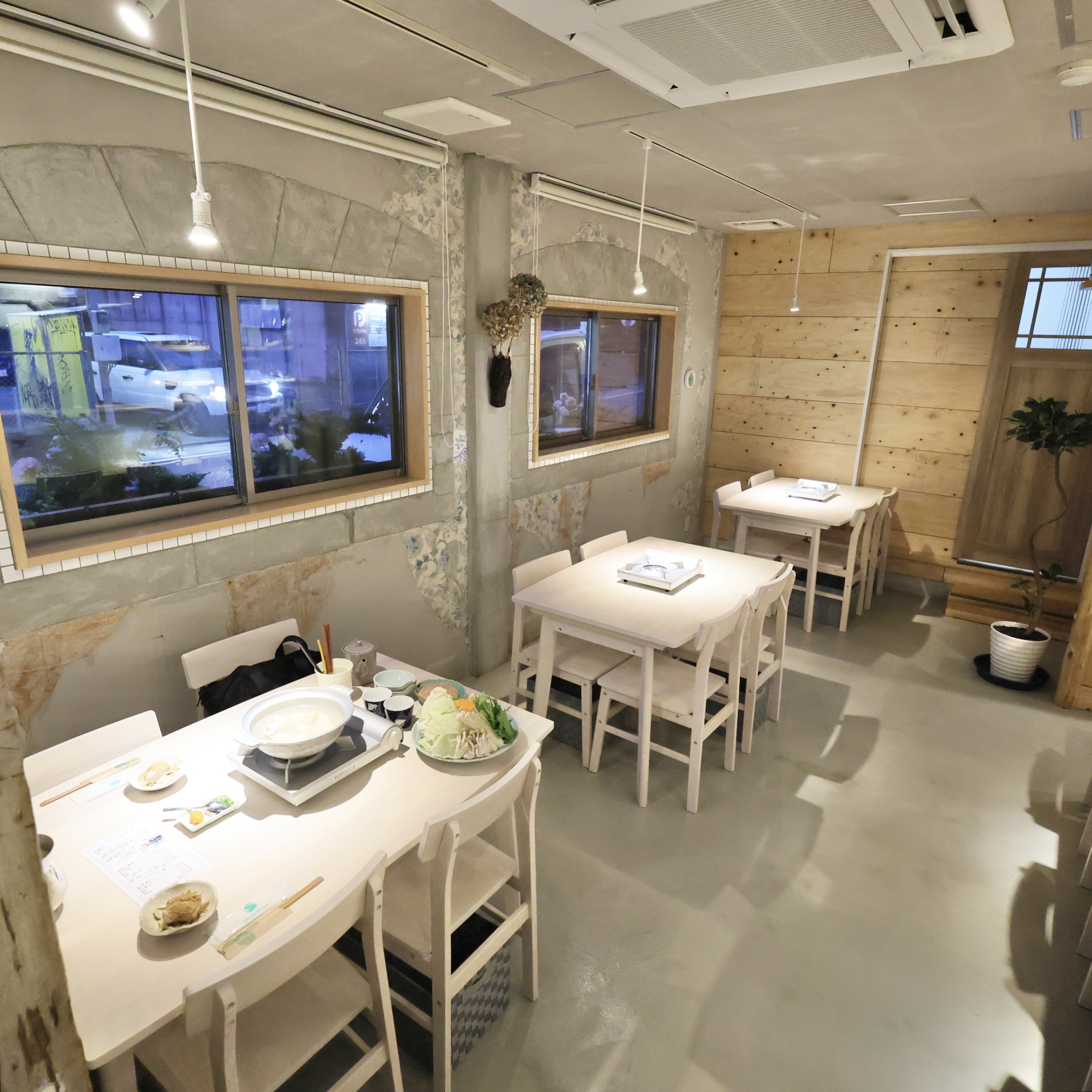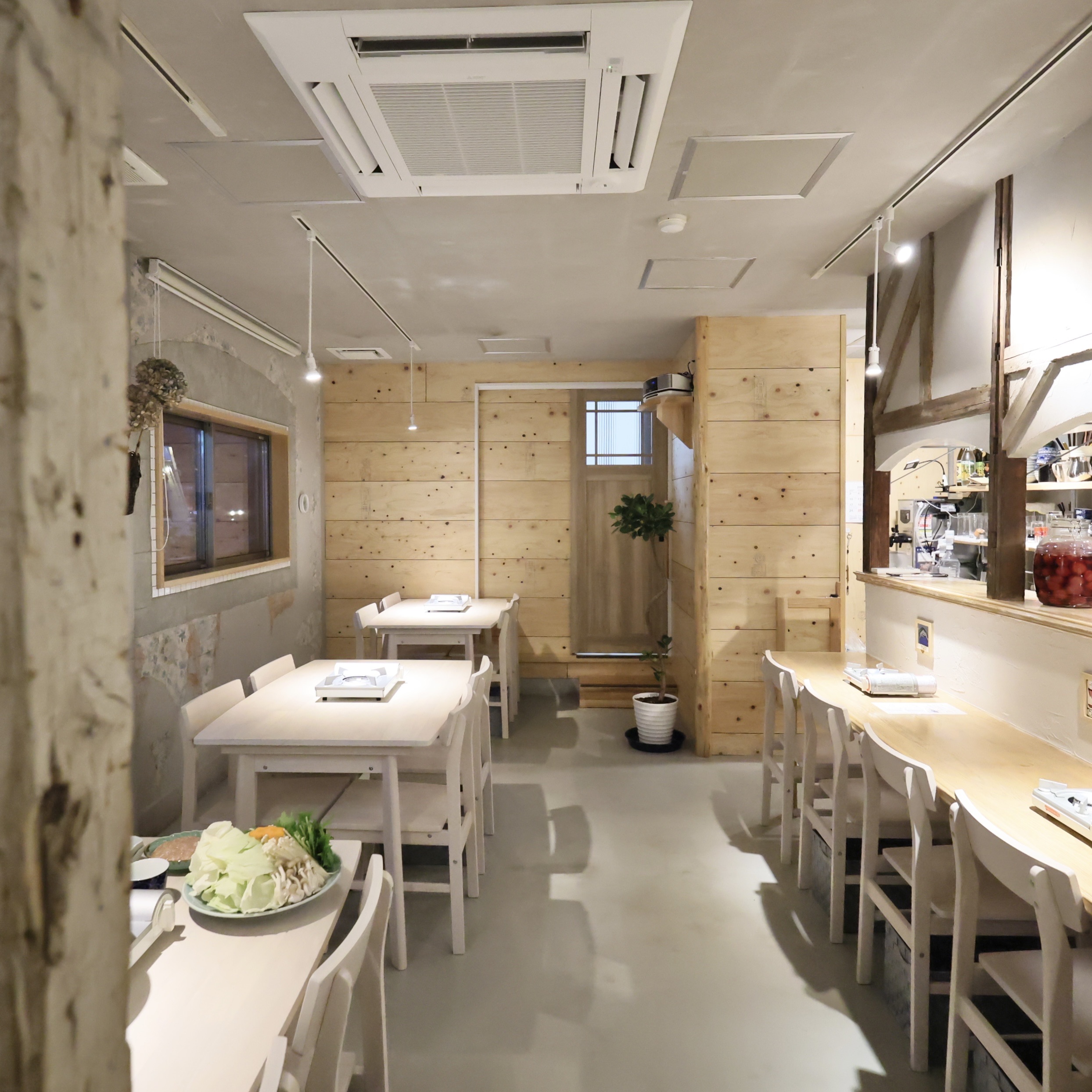 お店の内装は、白を基調としたコンクリートと木目調です。