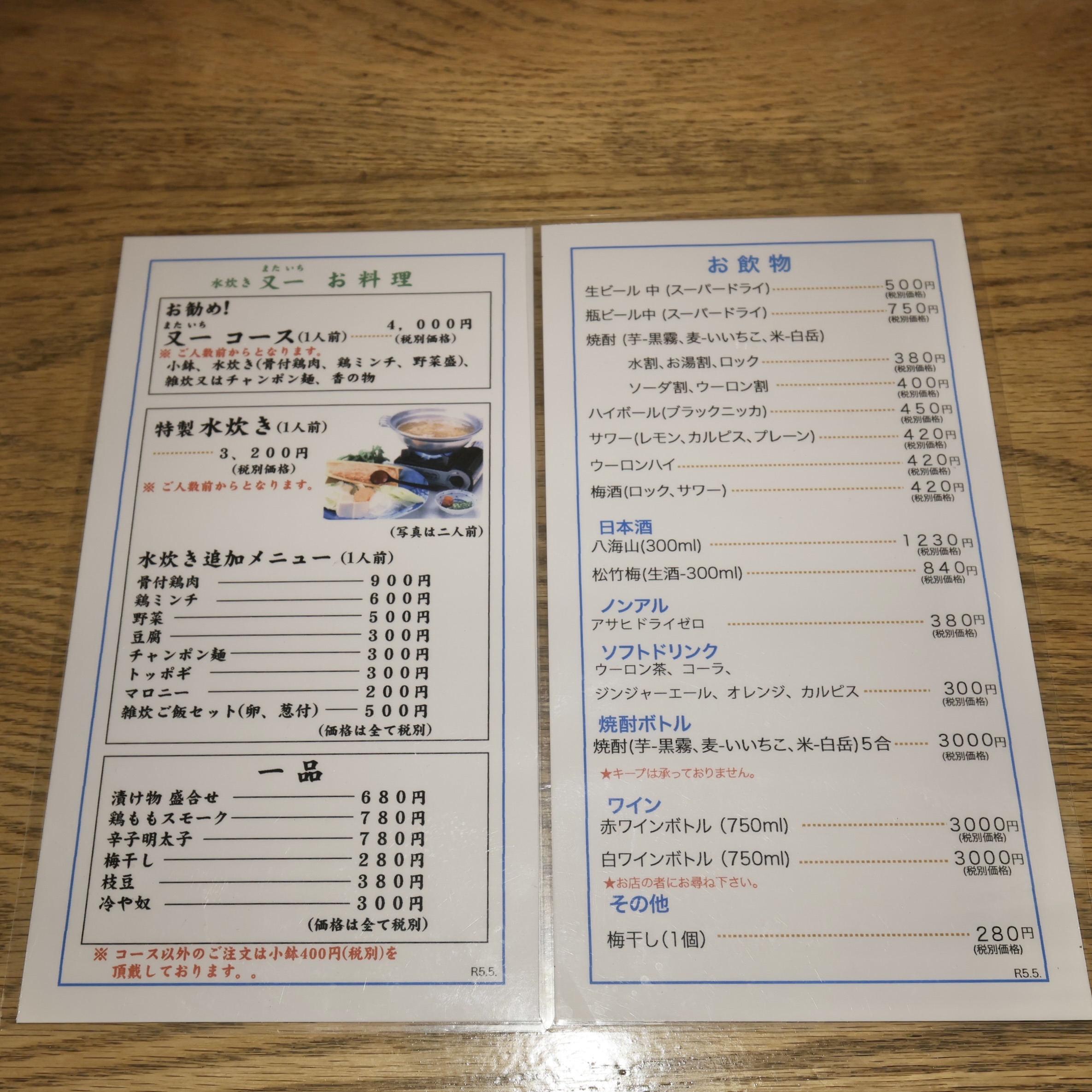 ■「水炊き又一」のメニュー