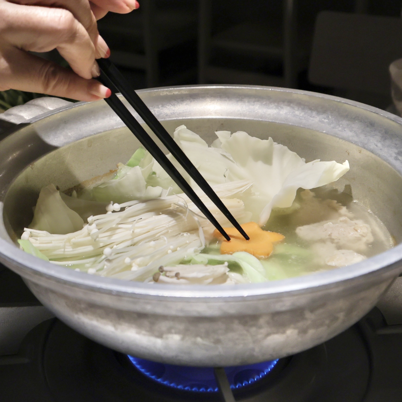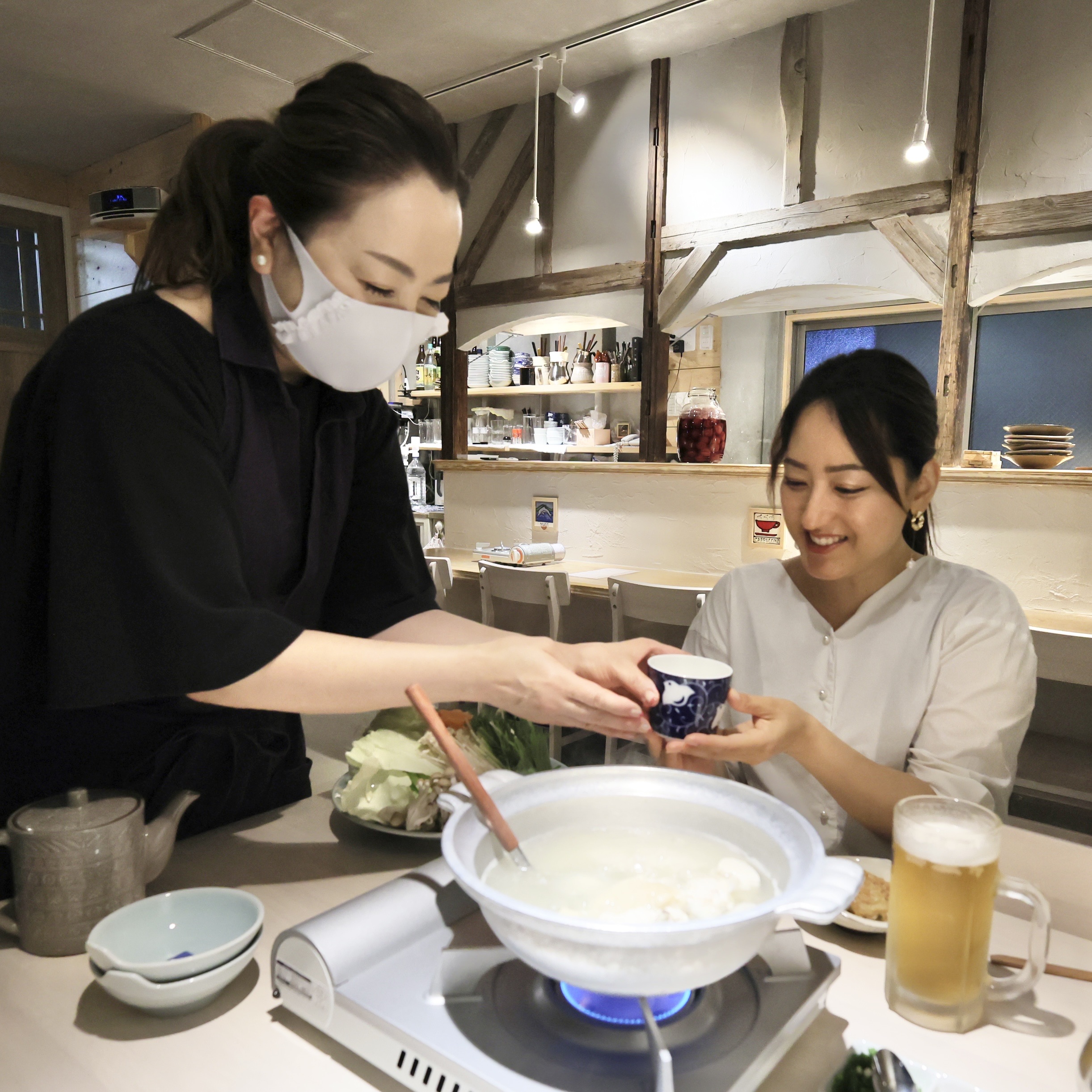 水炊き又一は、中洲で営業していた「万潮(まんちょう)」の2代目店主が夫婦で営む16席の店です。