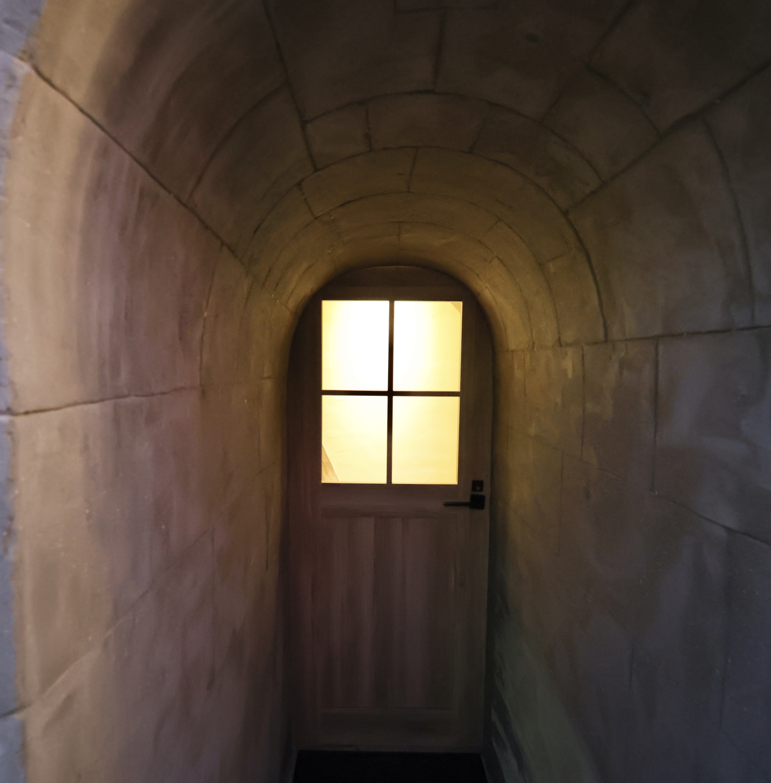 洞窟を思わせるトンネルの先に扉があります。