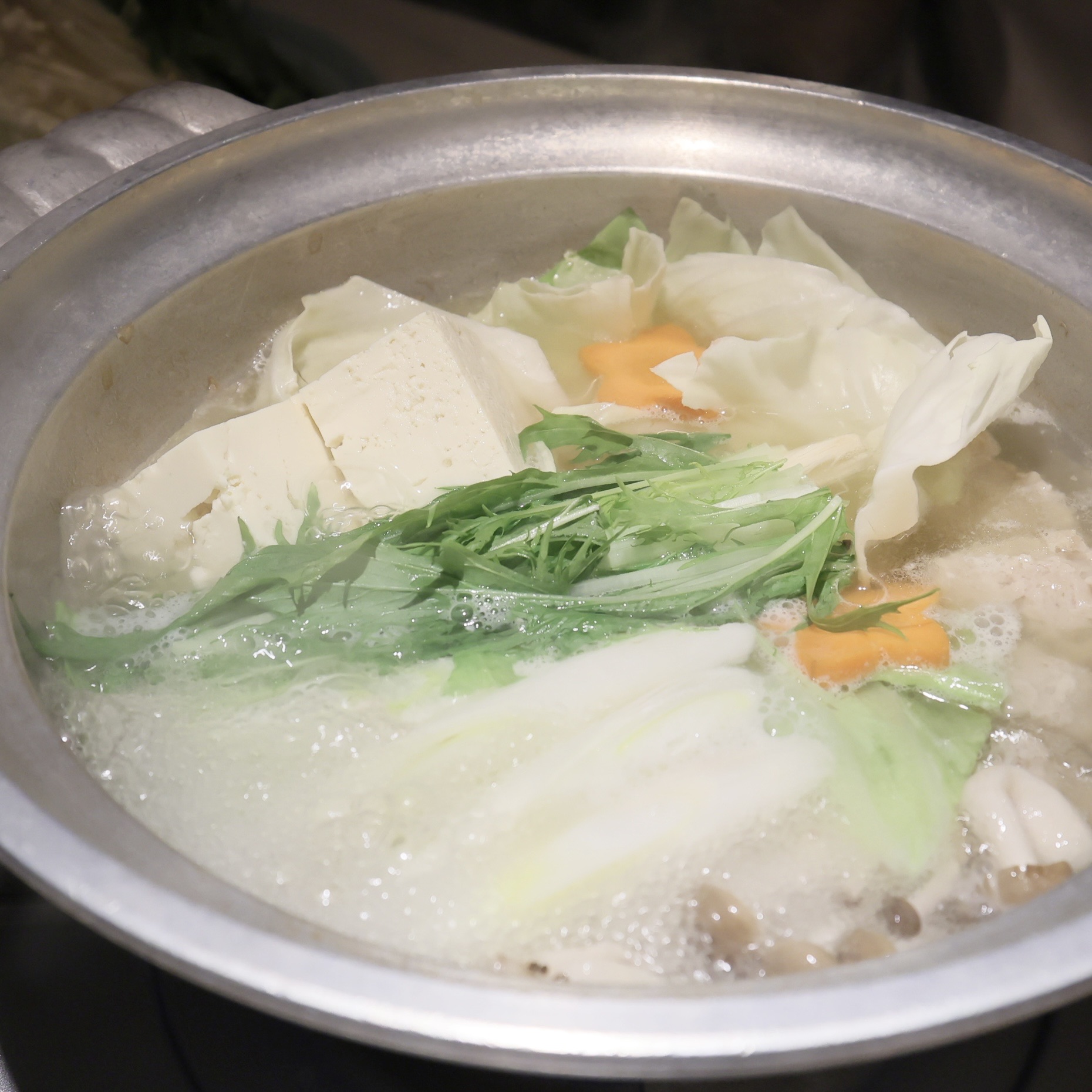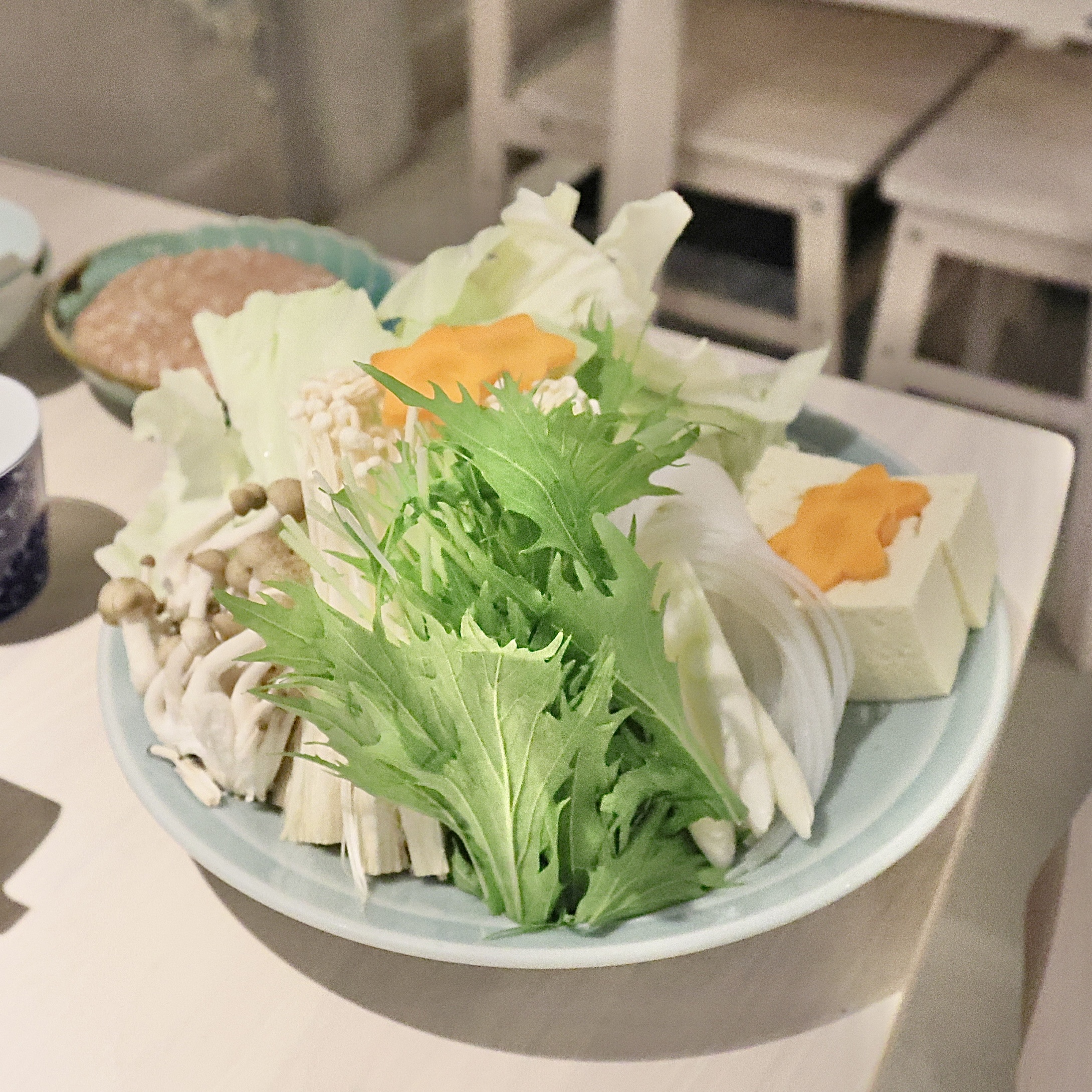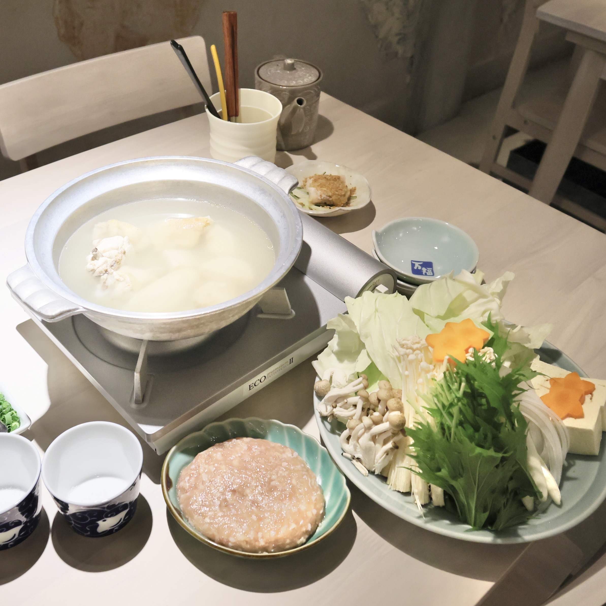 水炊きの野菜盛と鶏ミンチ。