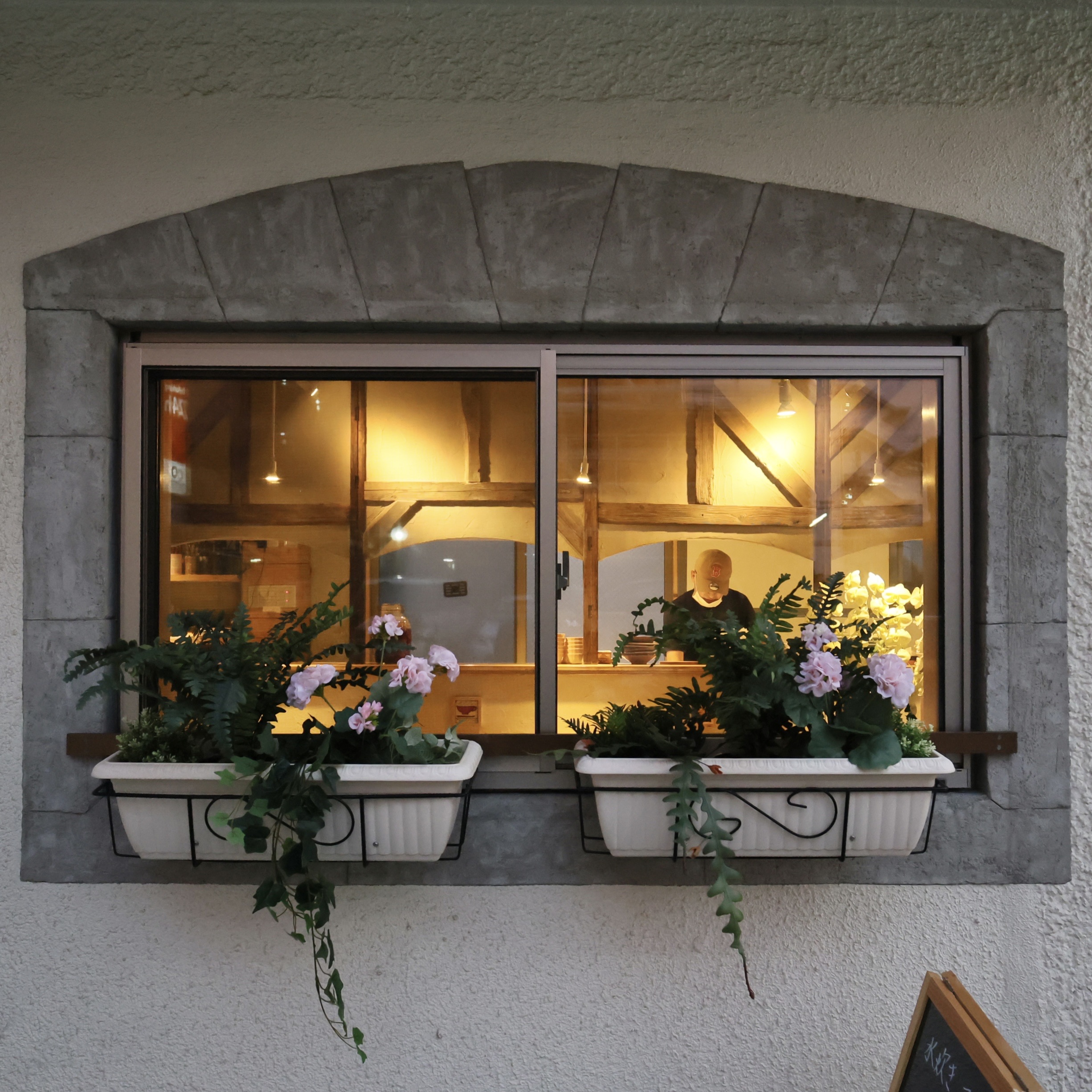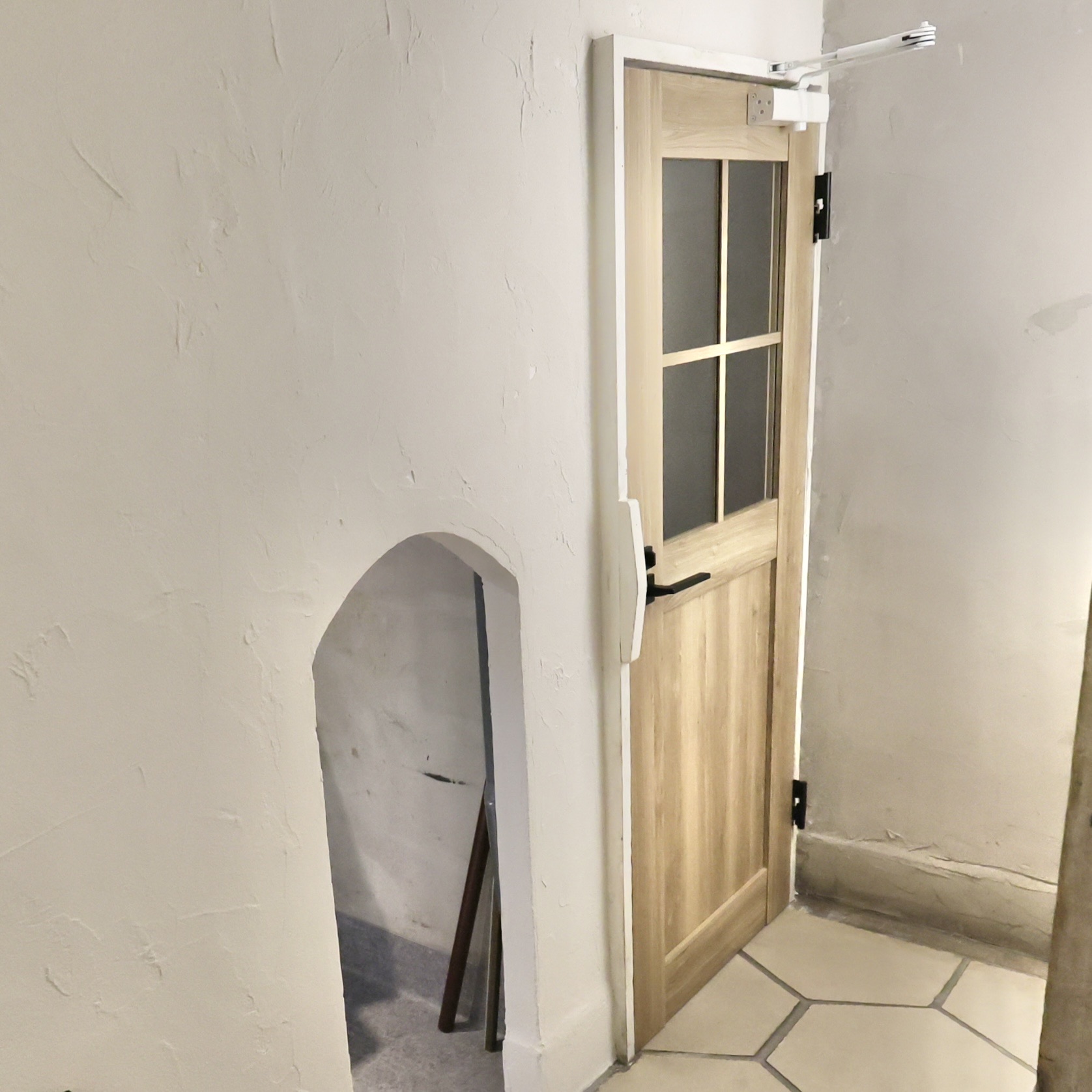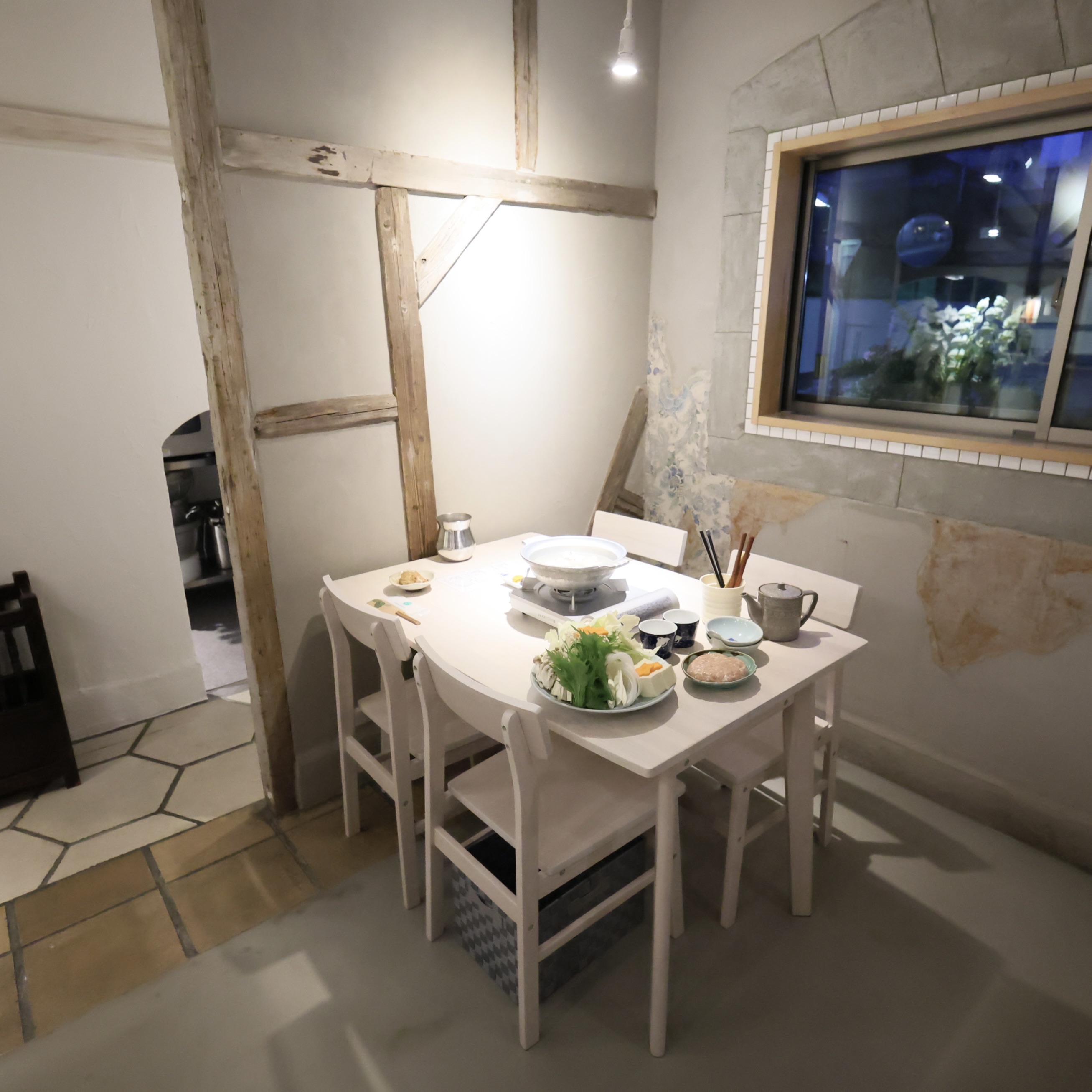 扉を振り返ると、その横に厨房につながる小さい穴がありました。
