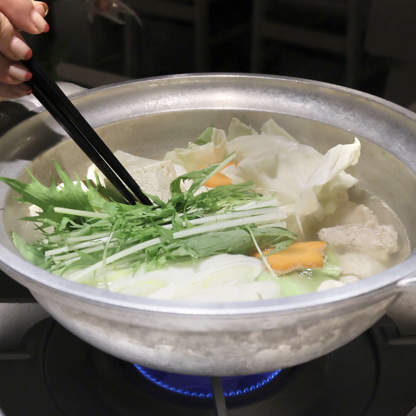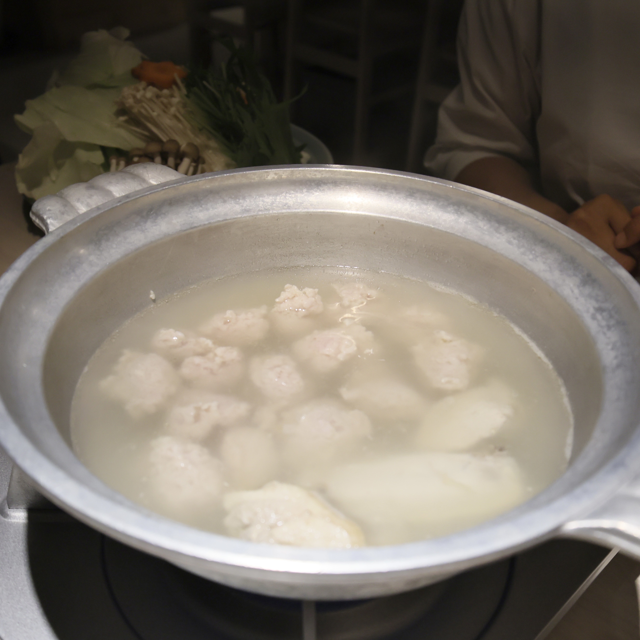 骨付鶏肉をいただいたあと、鶏ミンチも鍋に入れます。