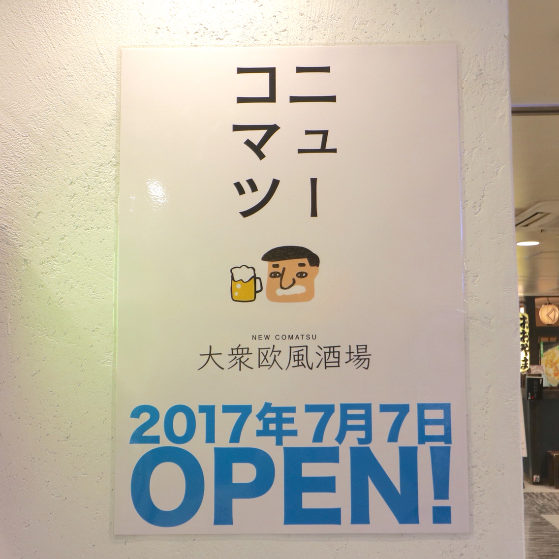 2017年7月7日(金)、JR博多シティ内の博多デイトス1F 博多ほろよい通りに、大衆欧風酒場「ニューコマツ」がオープンしました。