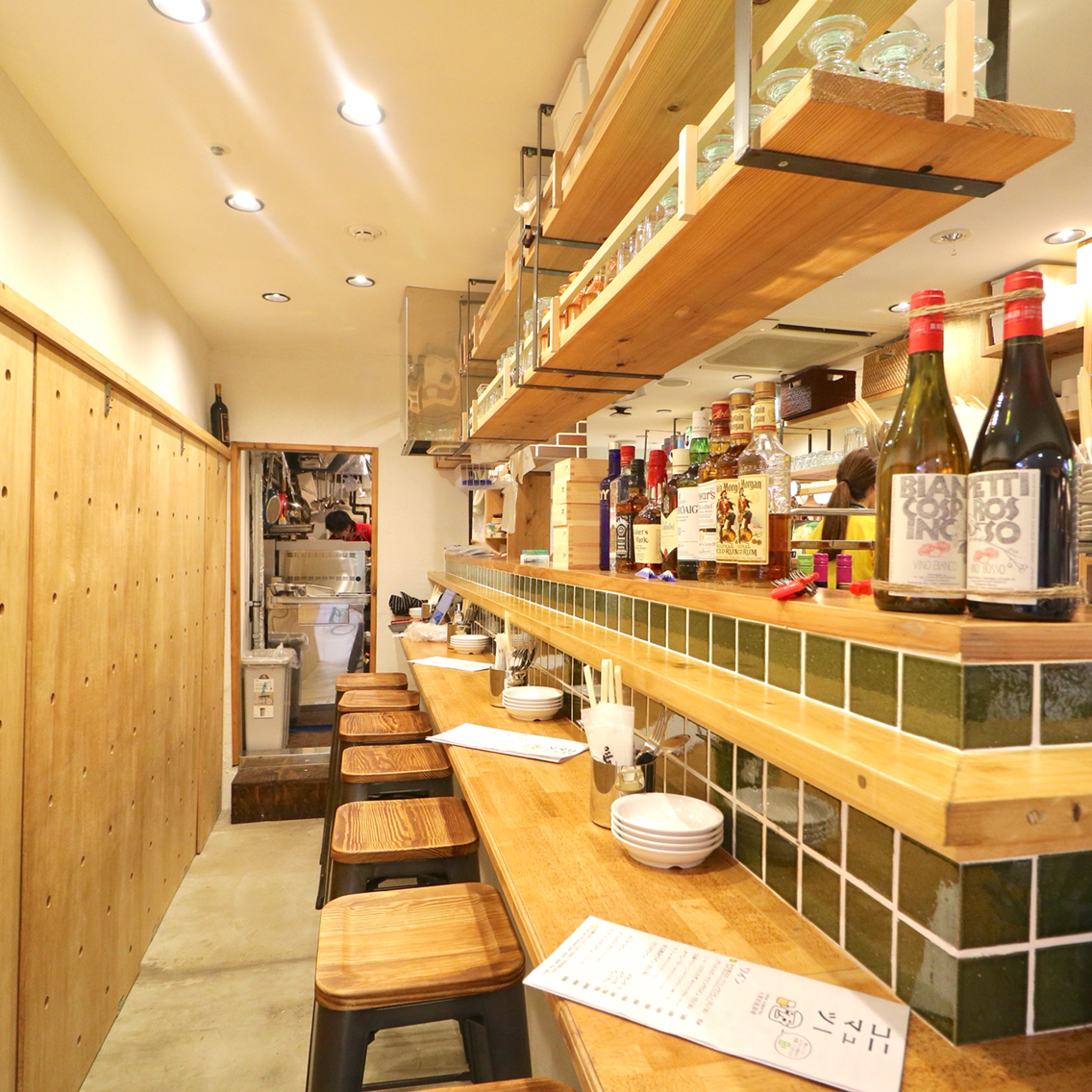 すべてカウンター席の、博多ほろよい通りにマッチした店構えです。