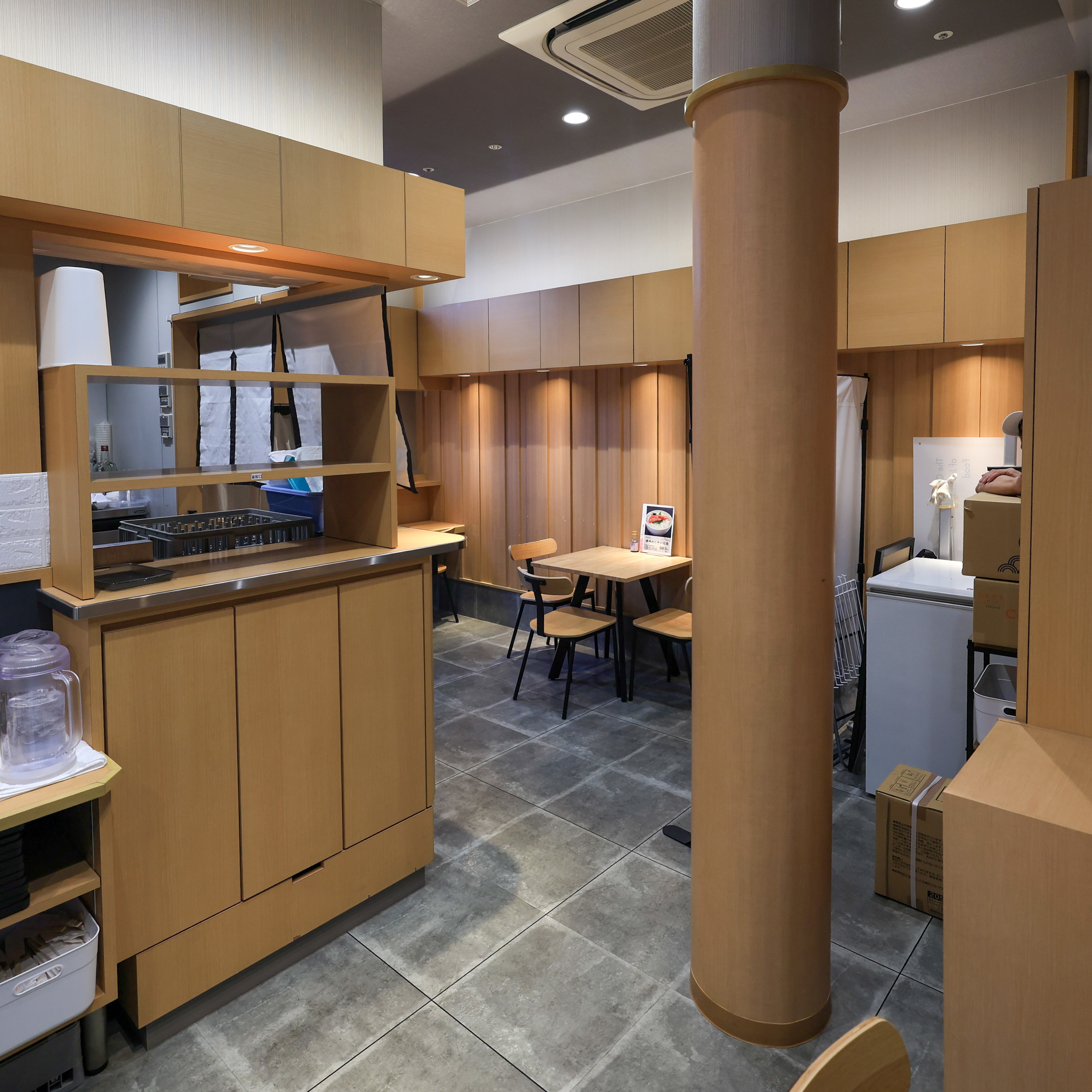 柱の奥にもテーブル席とカウンター席があります。
