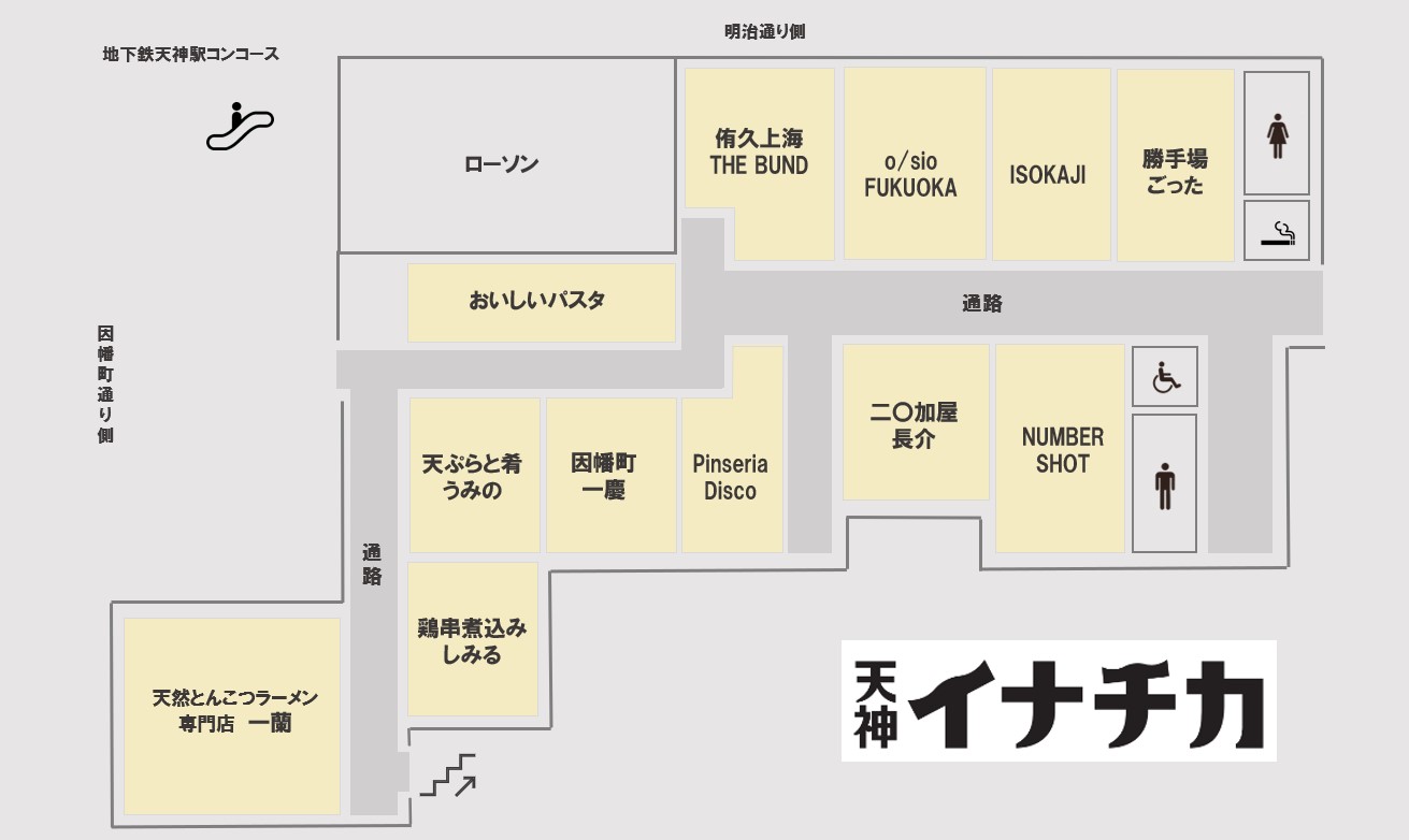地下2Fに開業する飲食ゾーンは「因幡町通り(いなばちょうどおり)」の地下に位置することから、「天神イナチカ」と名付けられました。