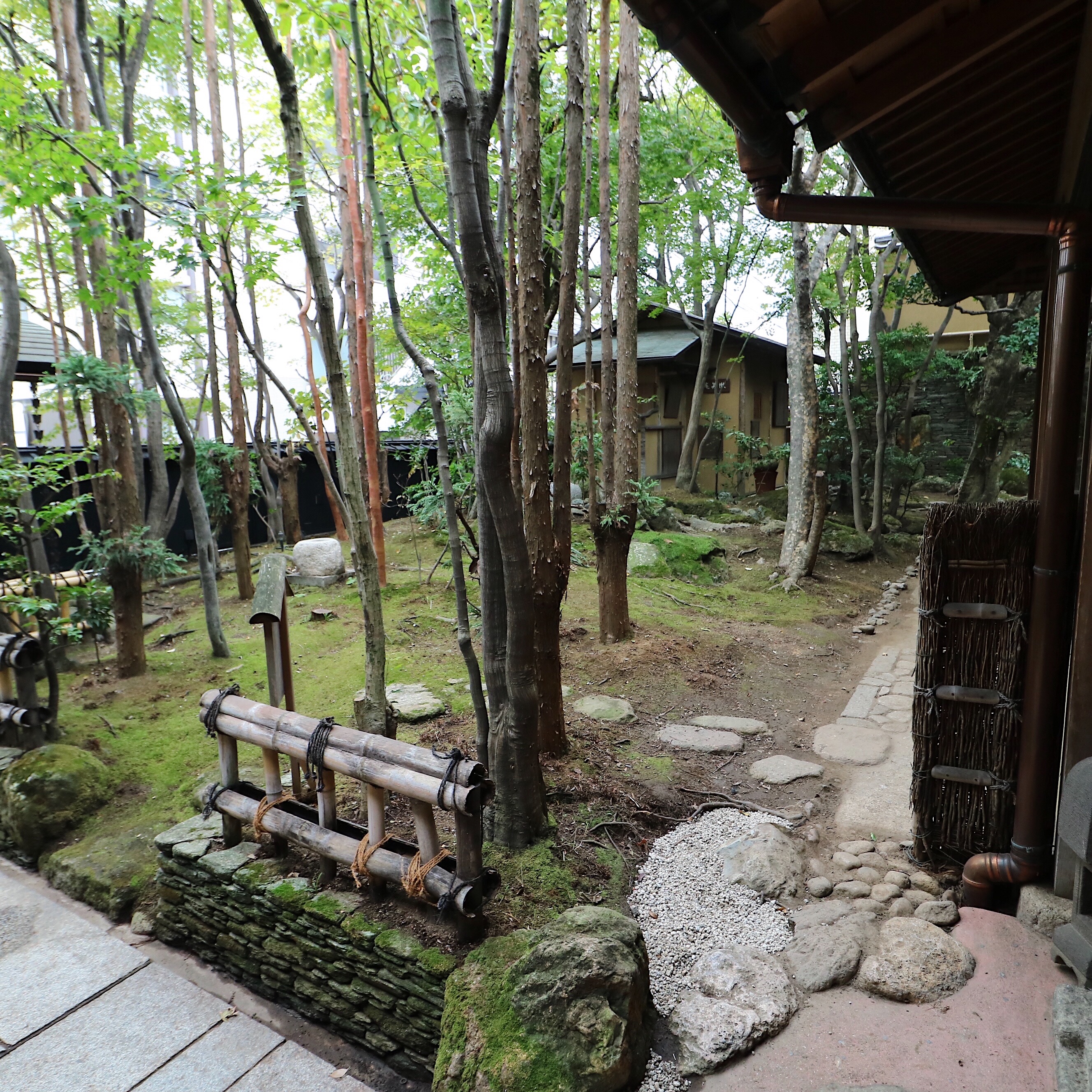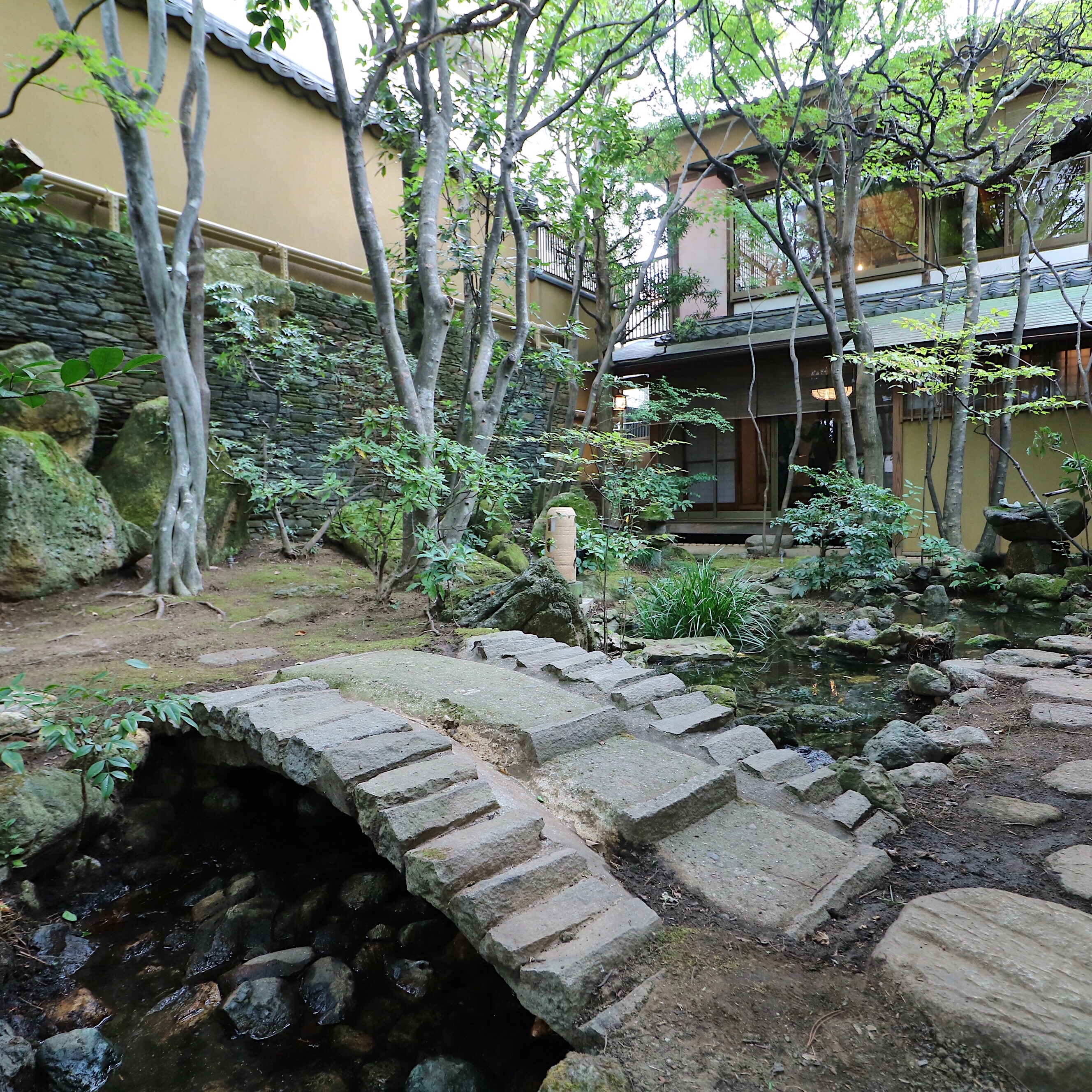 もてなすための茶室や、ひっそりと佇む灯篭、ひとつひとつ積みあげられた石壁。