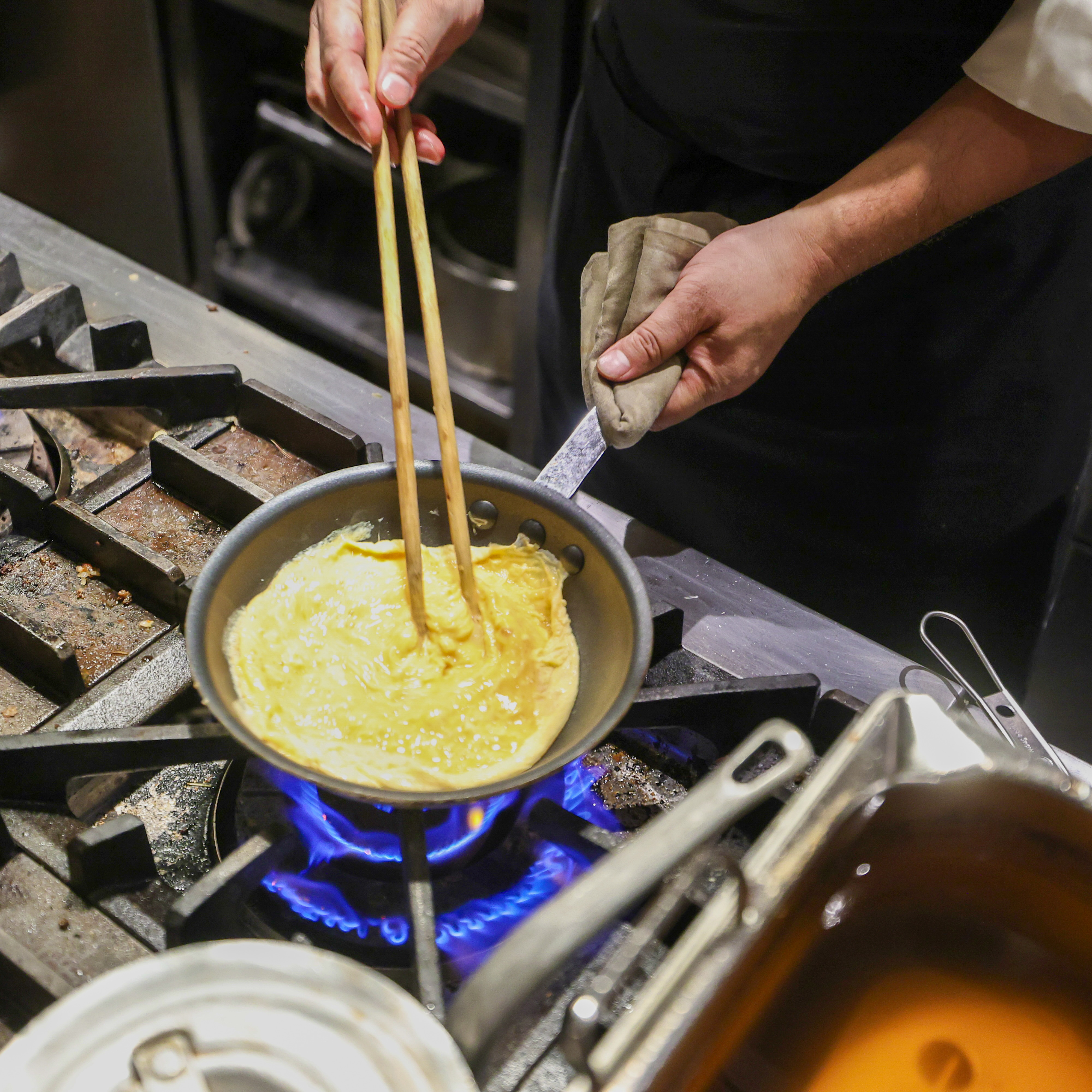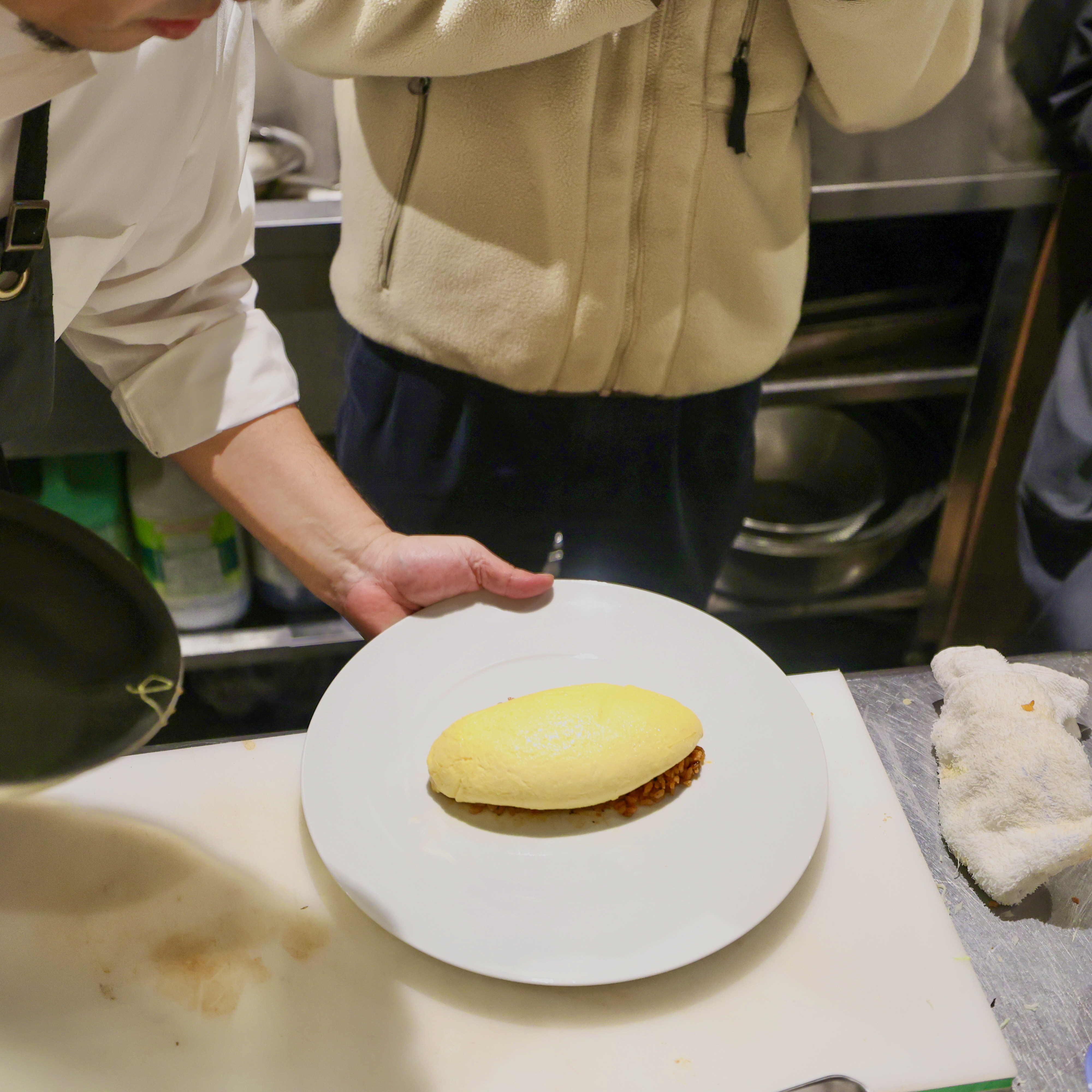 厨房でオムライスを調理する様子を撮影させていただきました。