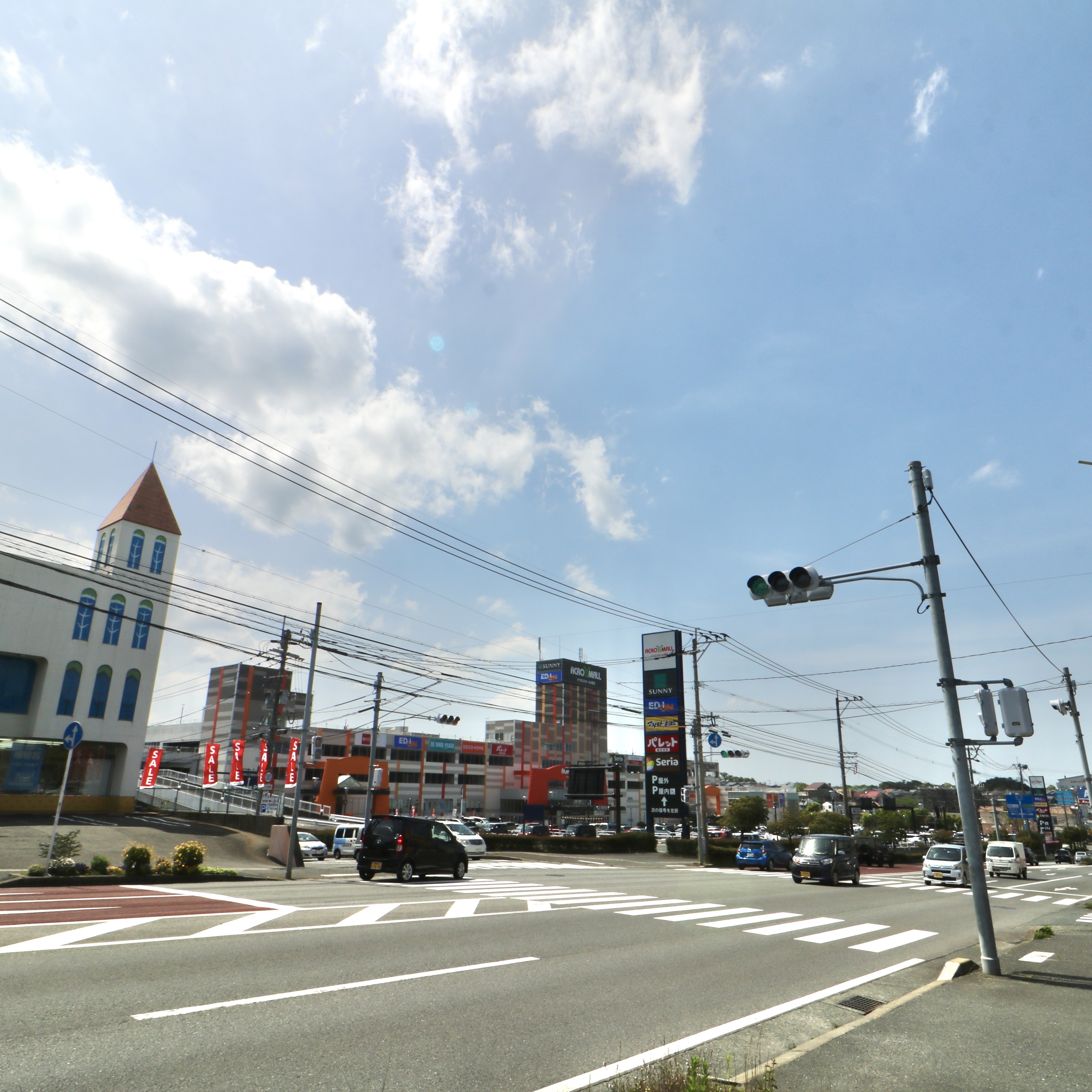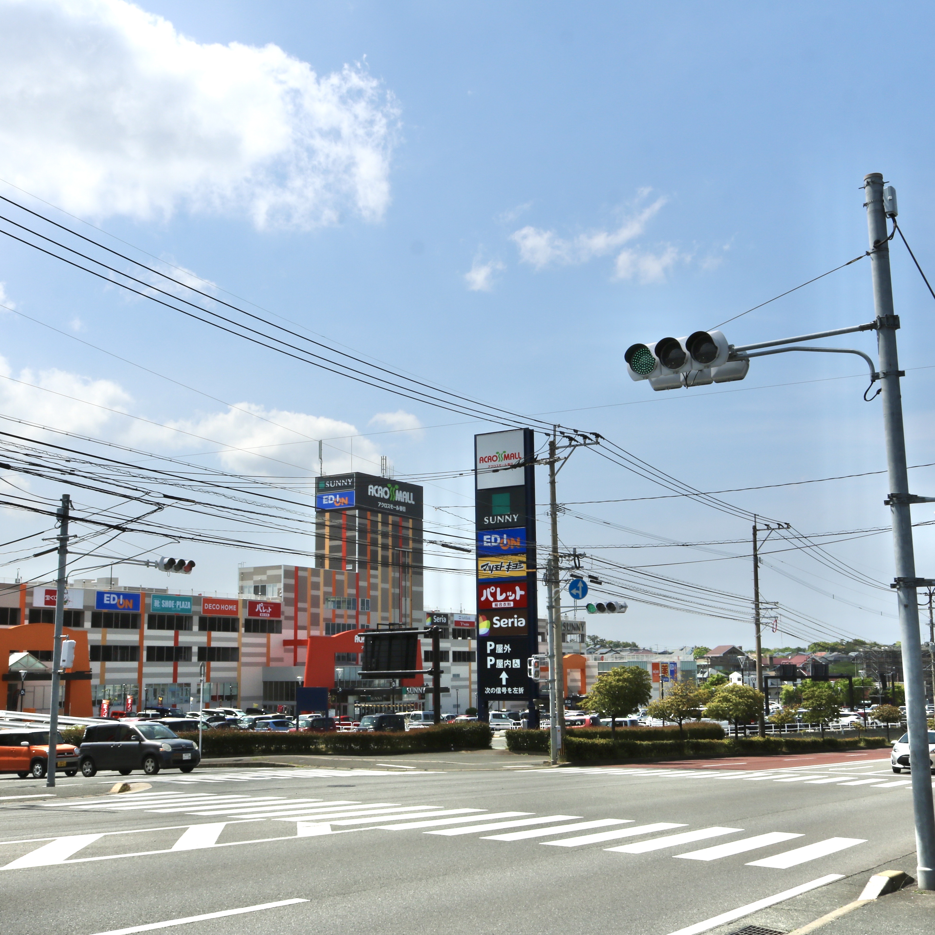 春日5丁目の交差点から見た、アクロスモール春日。