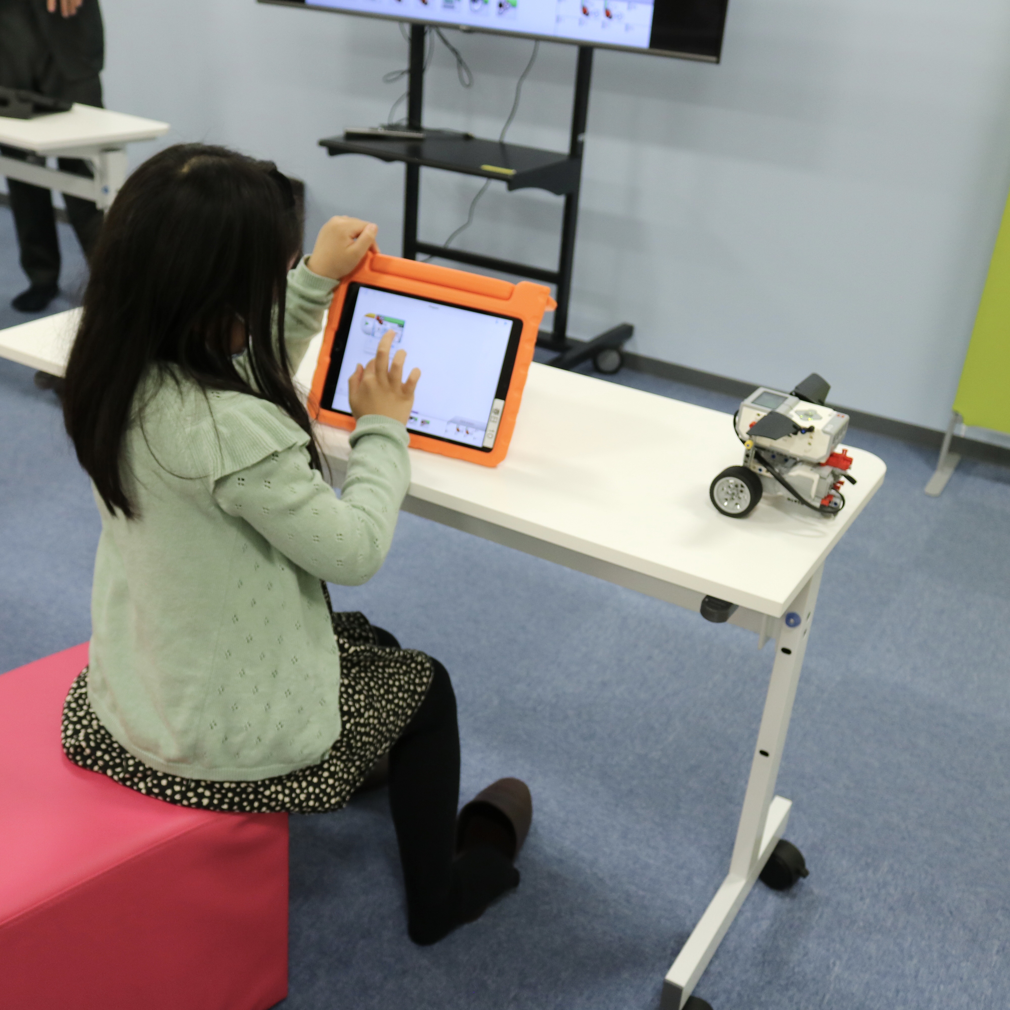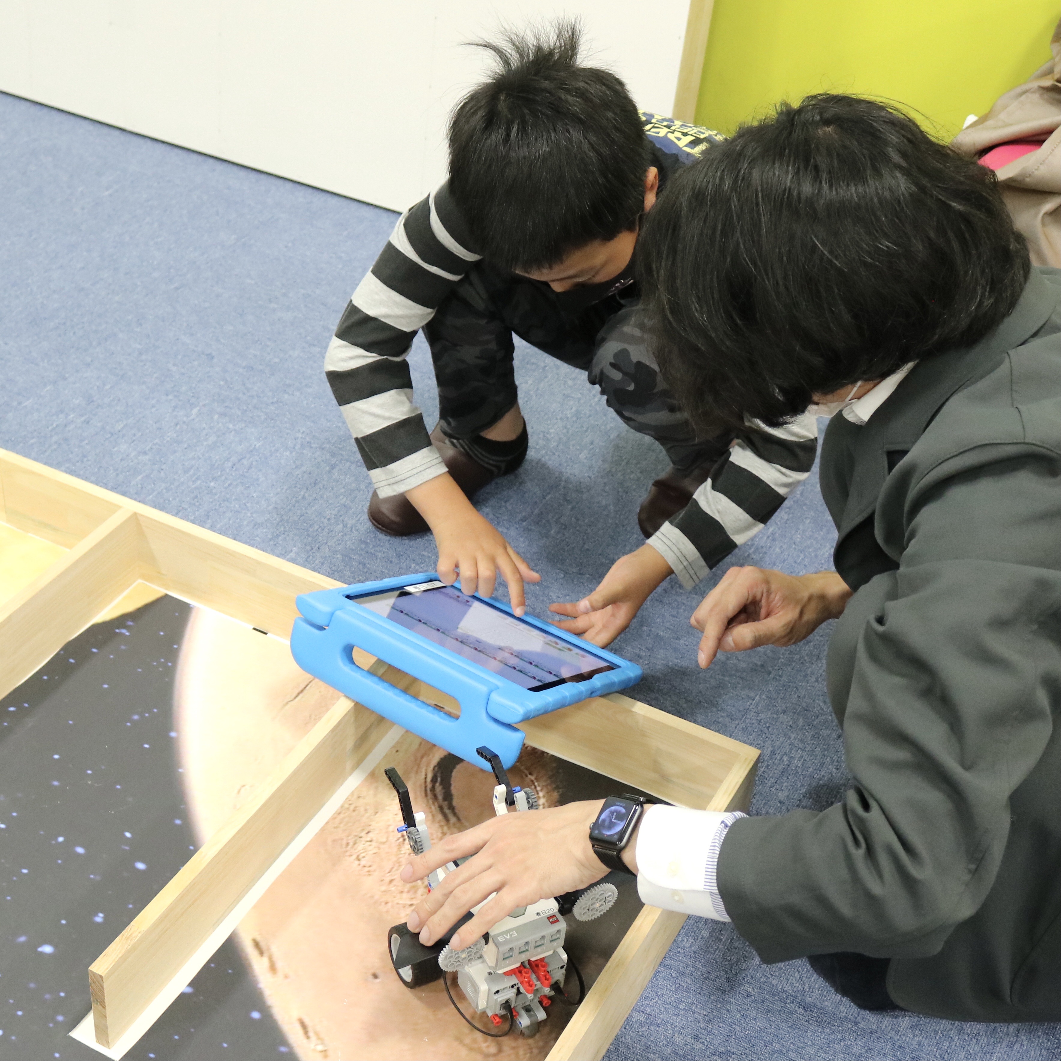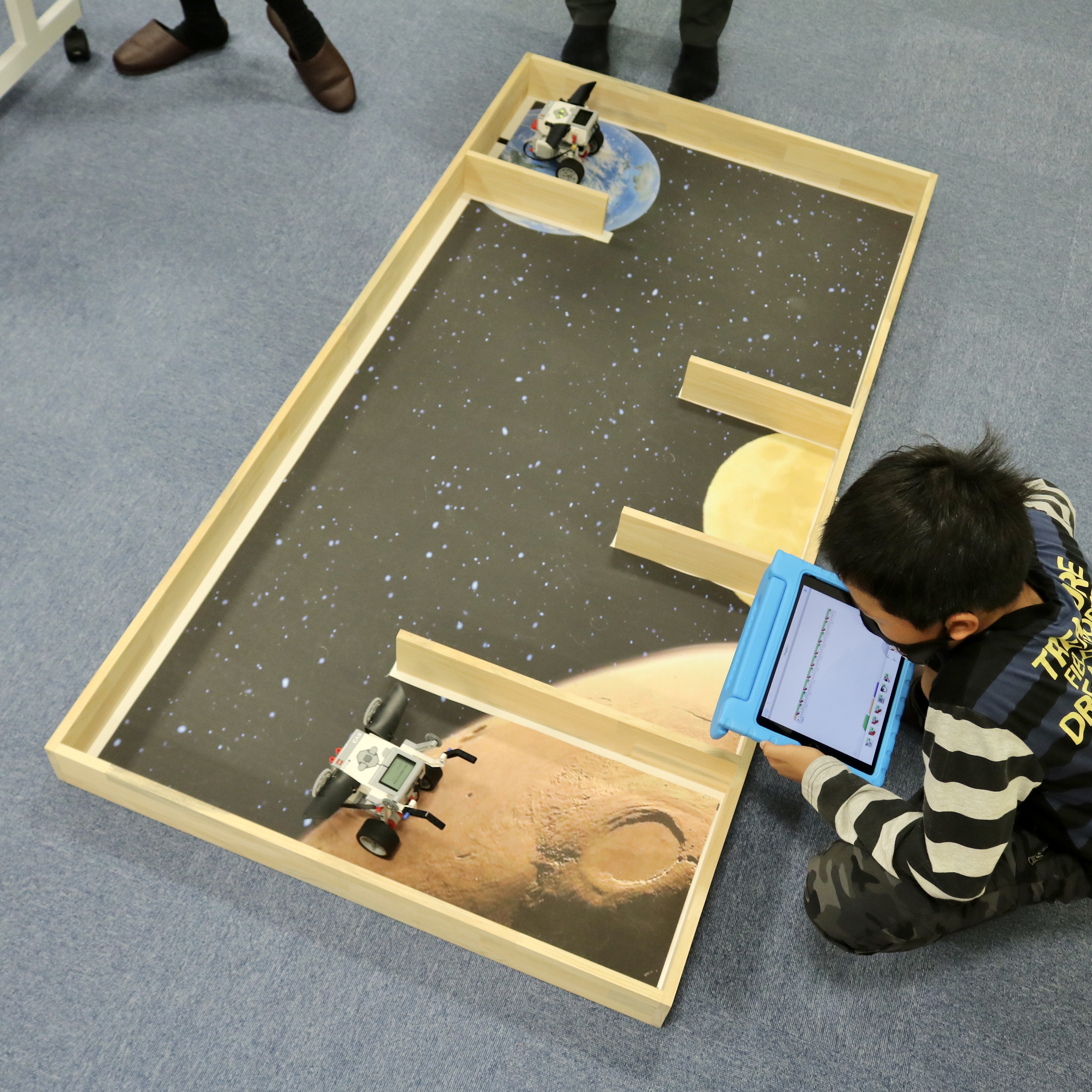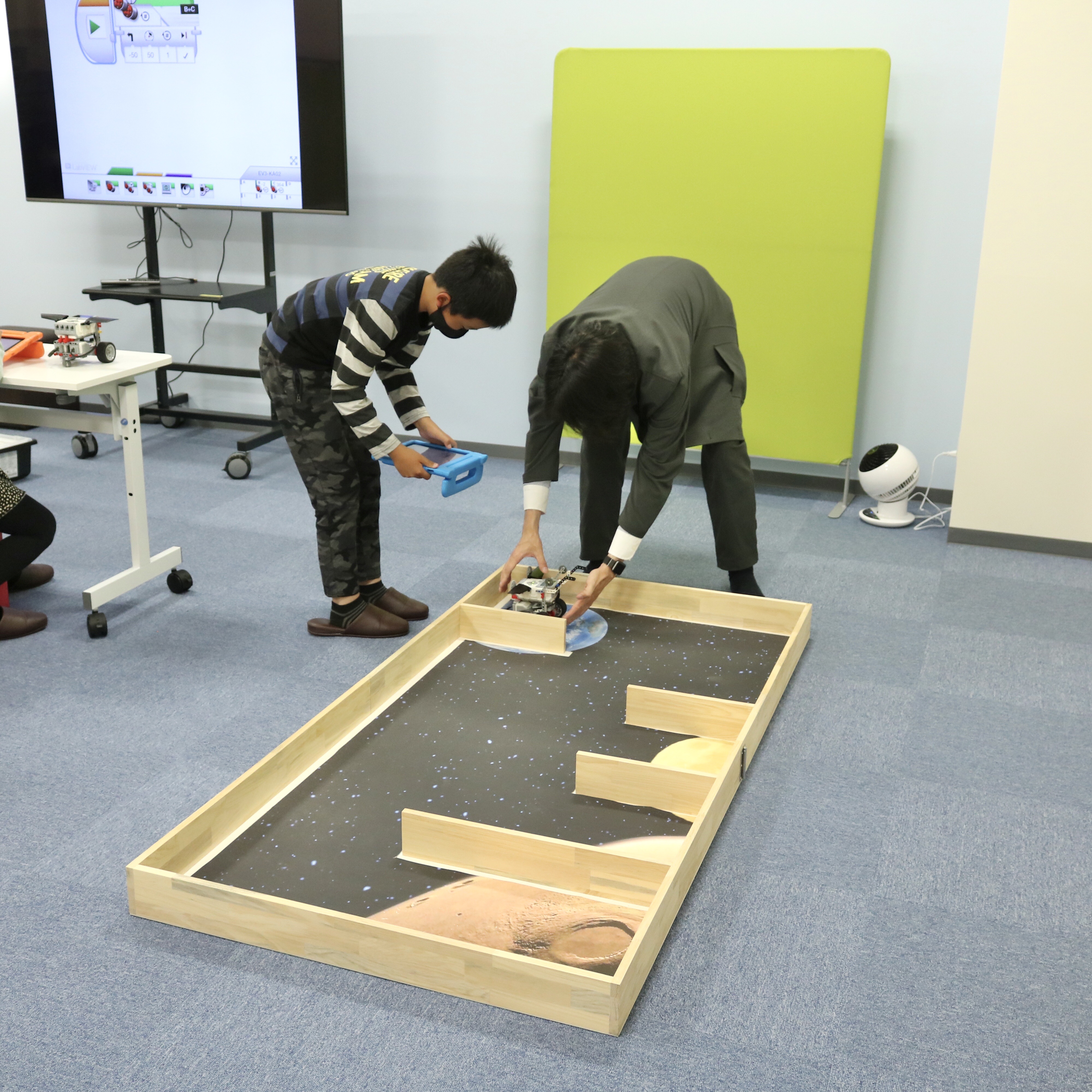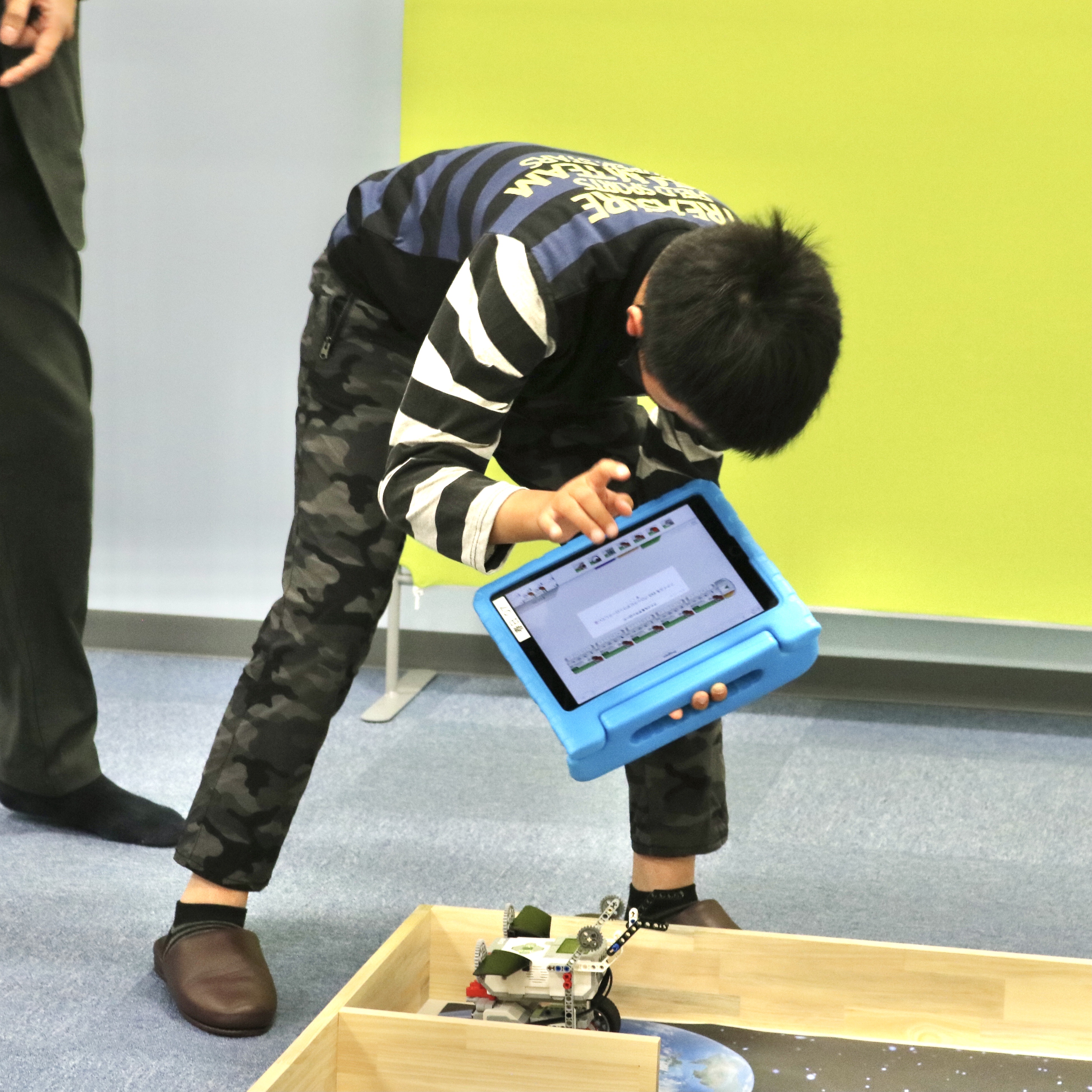 iPadでプログラムを入力して、机の上を走らせます。