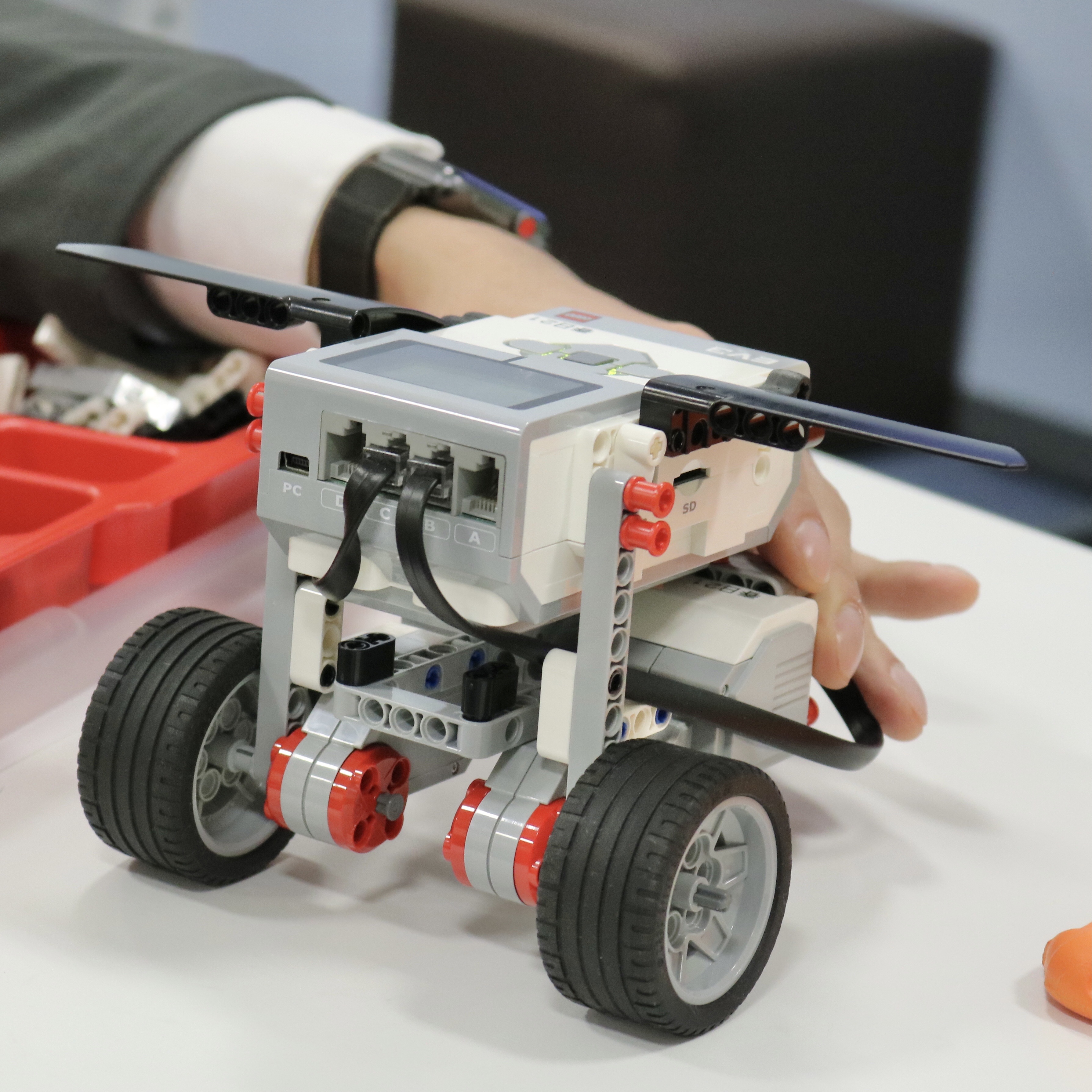 ロボットは、たくさんのレゴの部品を使って、組み立てます。
