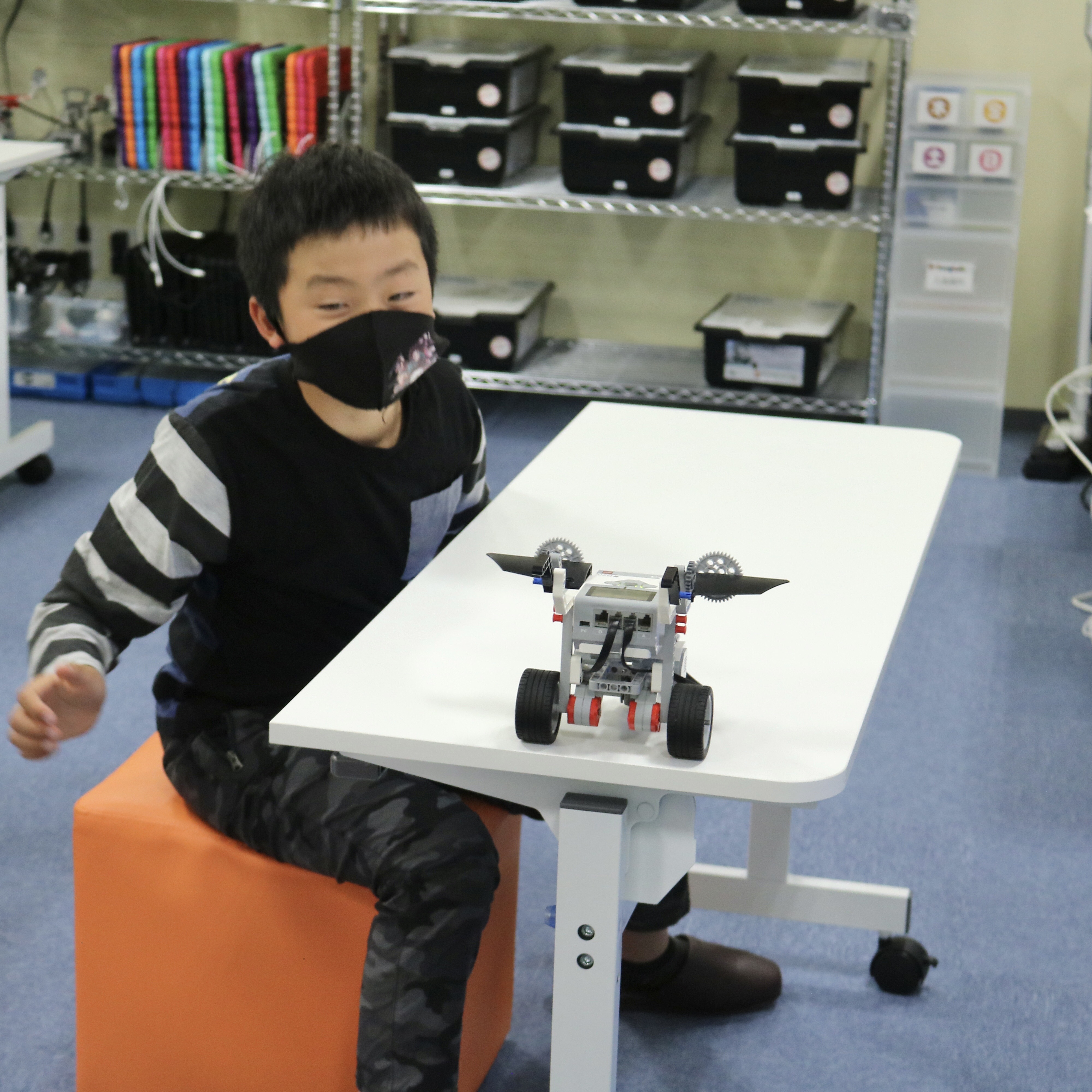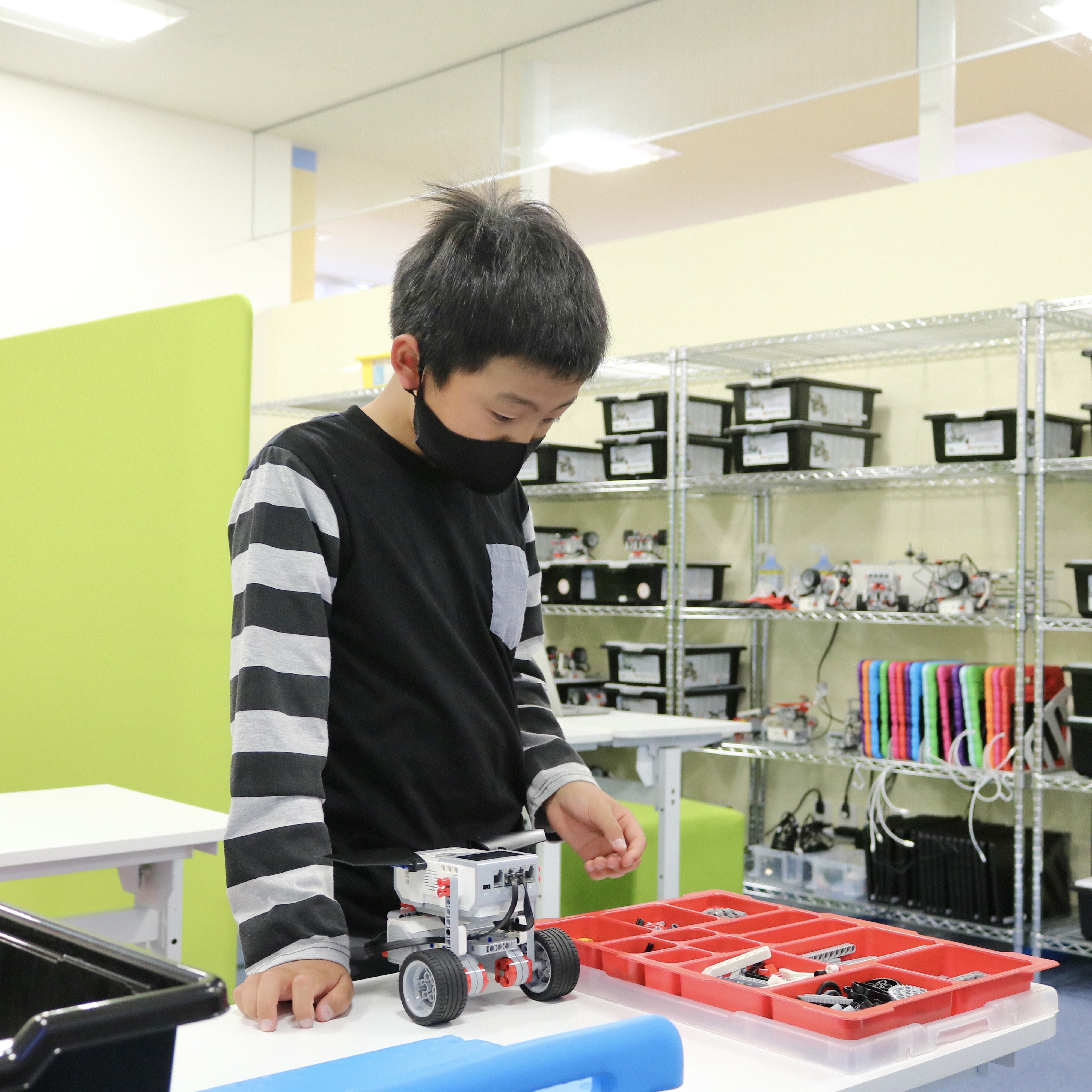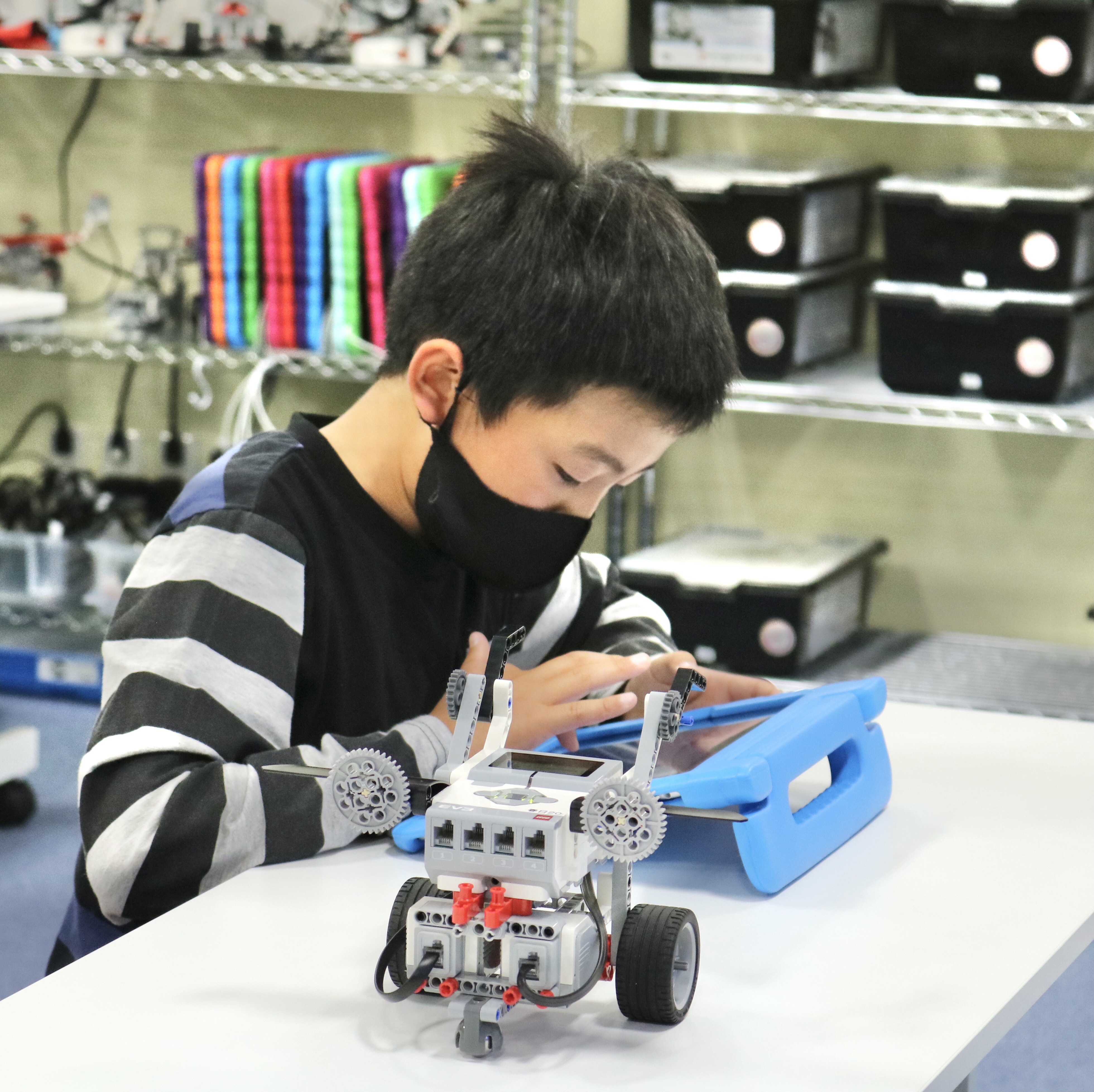 内容:主に教育版レゴ® マインドストーム® EV3を用いて、モーターや各種センサーを使ってロボットを組み立て、ビジュアルアイコンを使ったソフトウェアでプログラミングを行う。