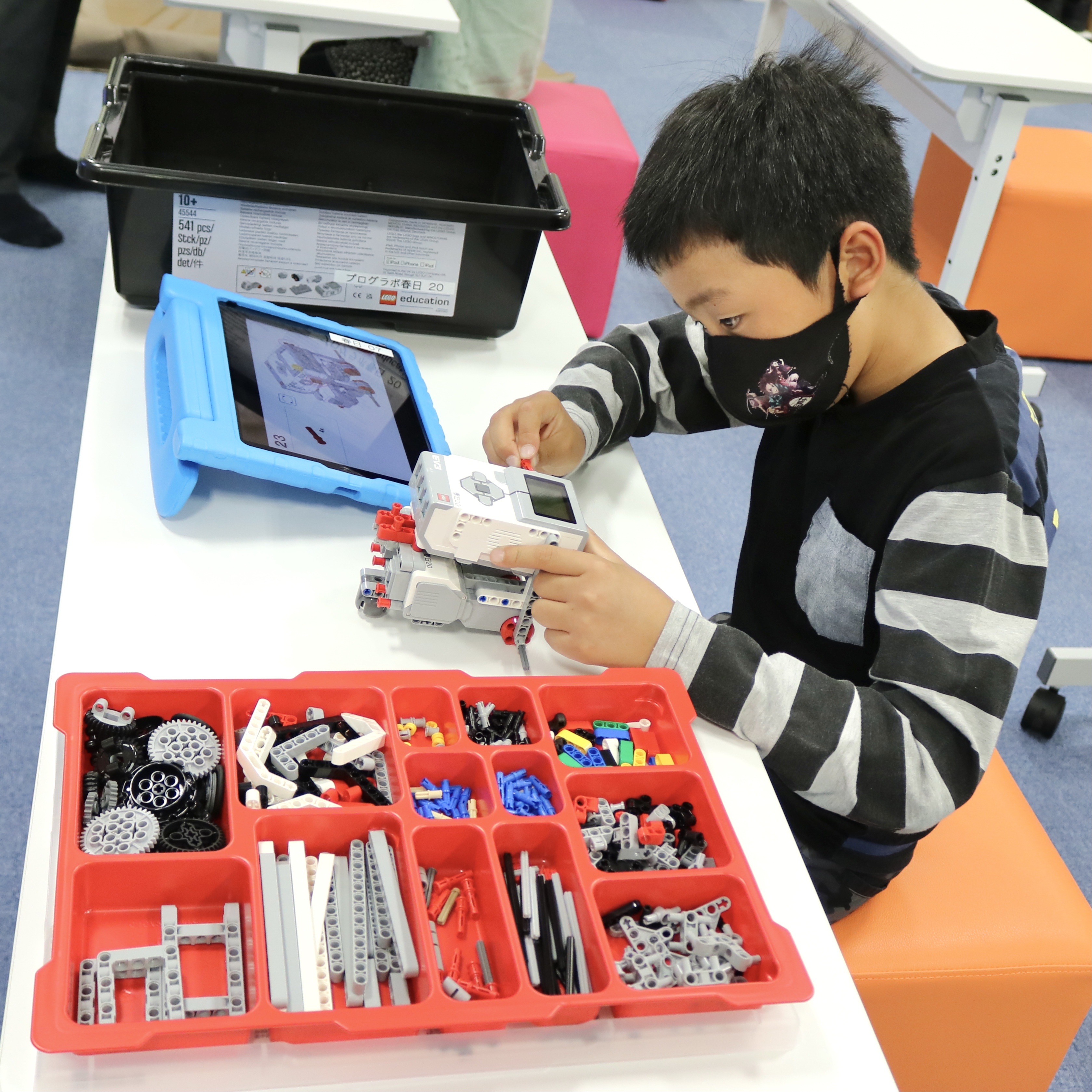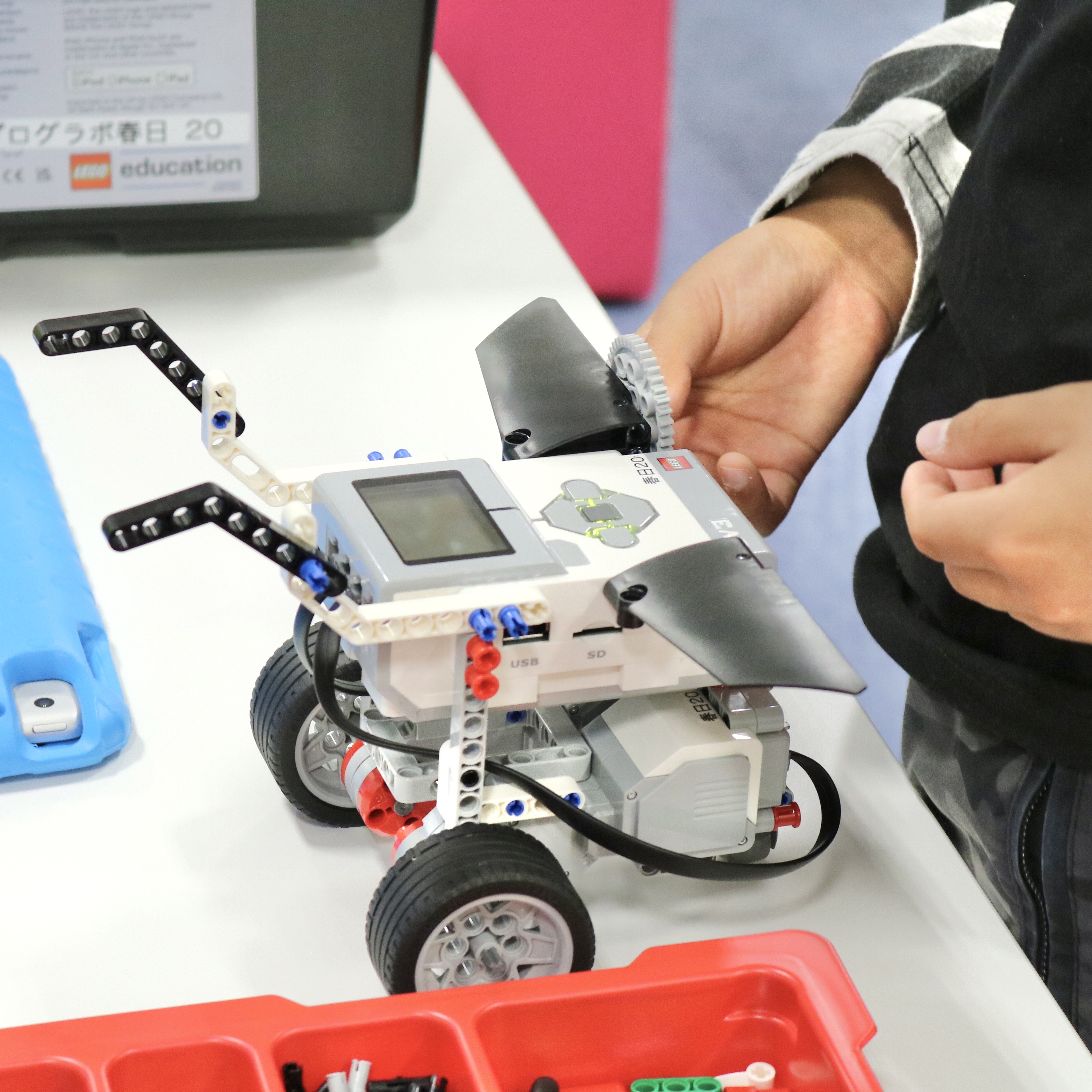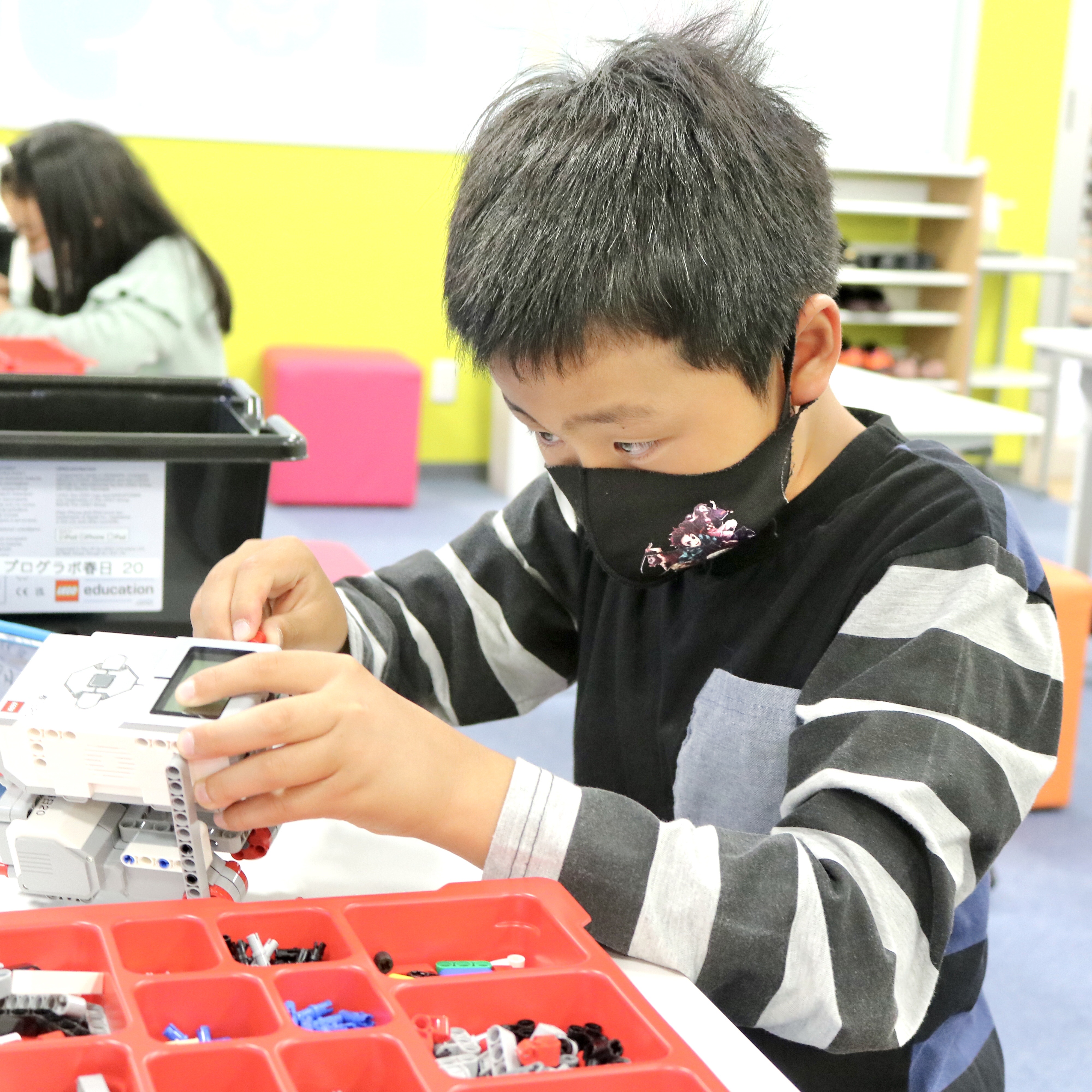 内容:主に教育版レゴ® マインドストーム® EV3を用いて、モーターや各種センサーを使ってロボットを組み立て、ビジュアルアイコンを使ったソフトウェアでプログラミングを行う。