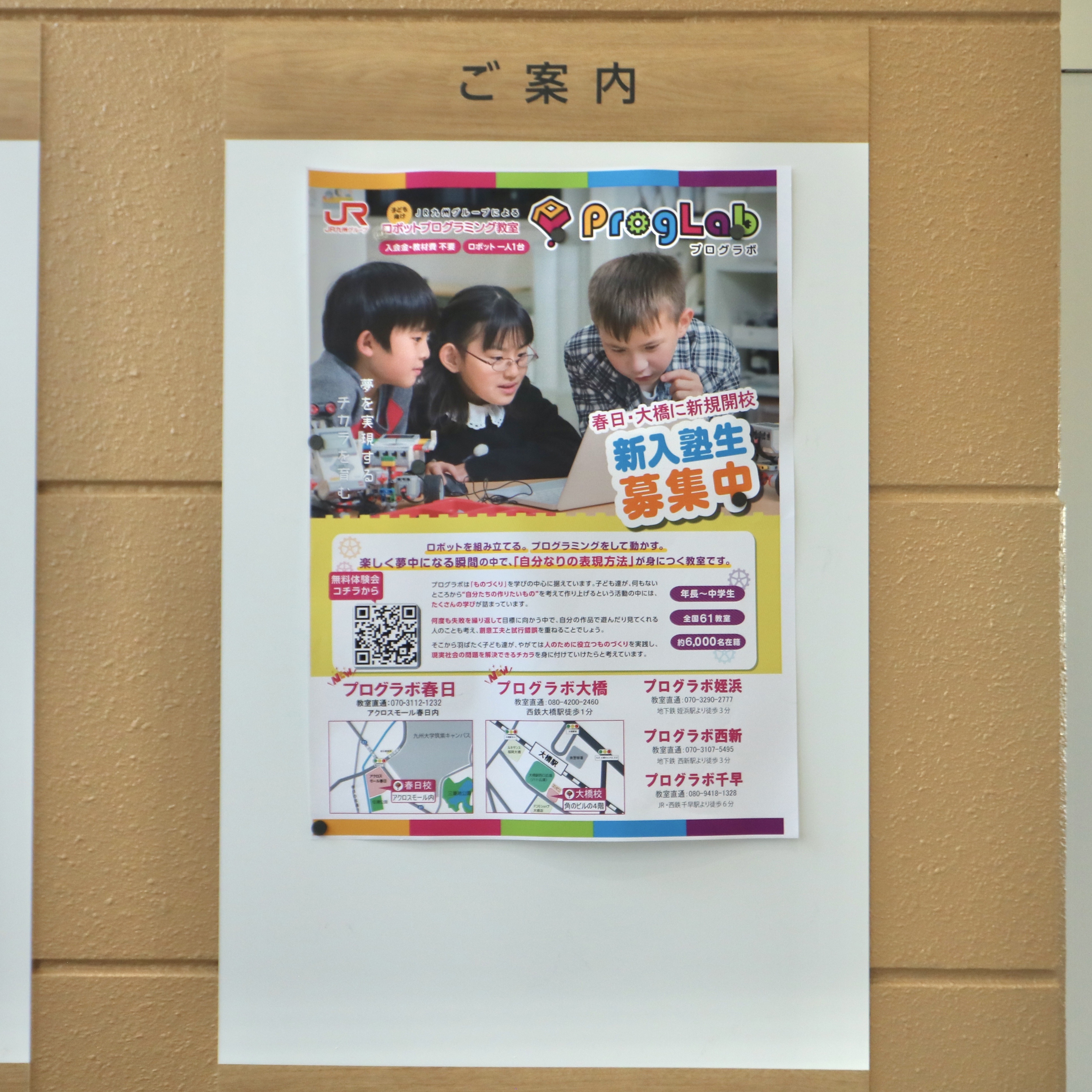 この日はご案内の掲示板に、プログラボ春日のチラシが貼られていました。