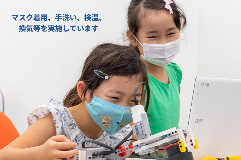 教室では、マスク着用、手洗い、検温、換気などを実施しています。