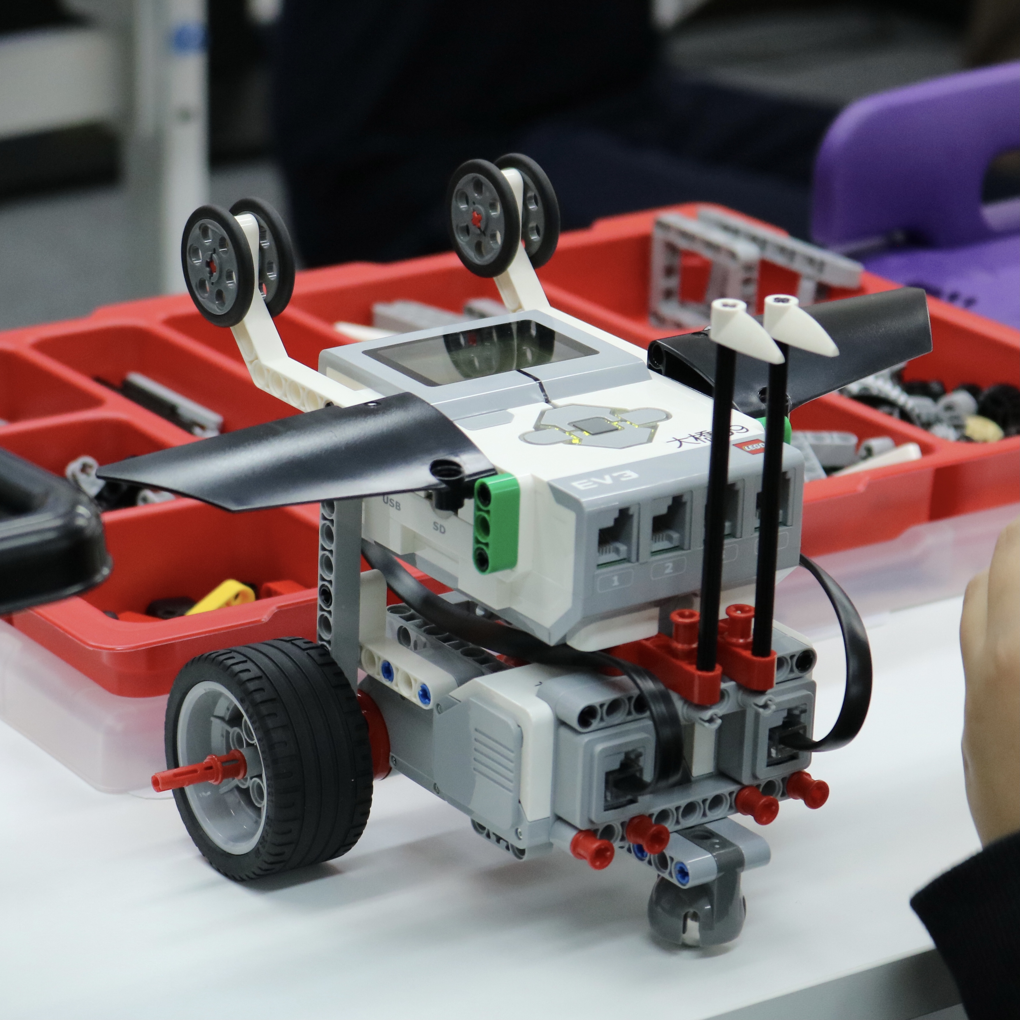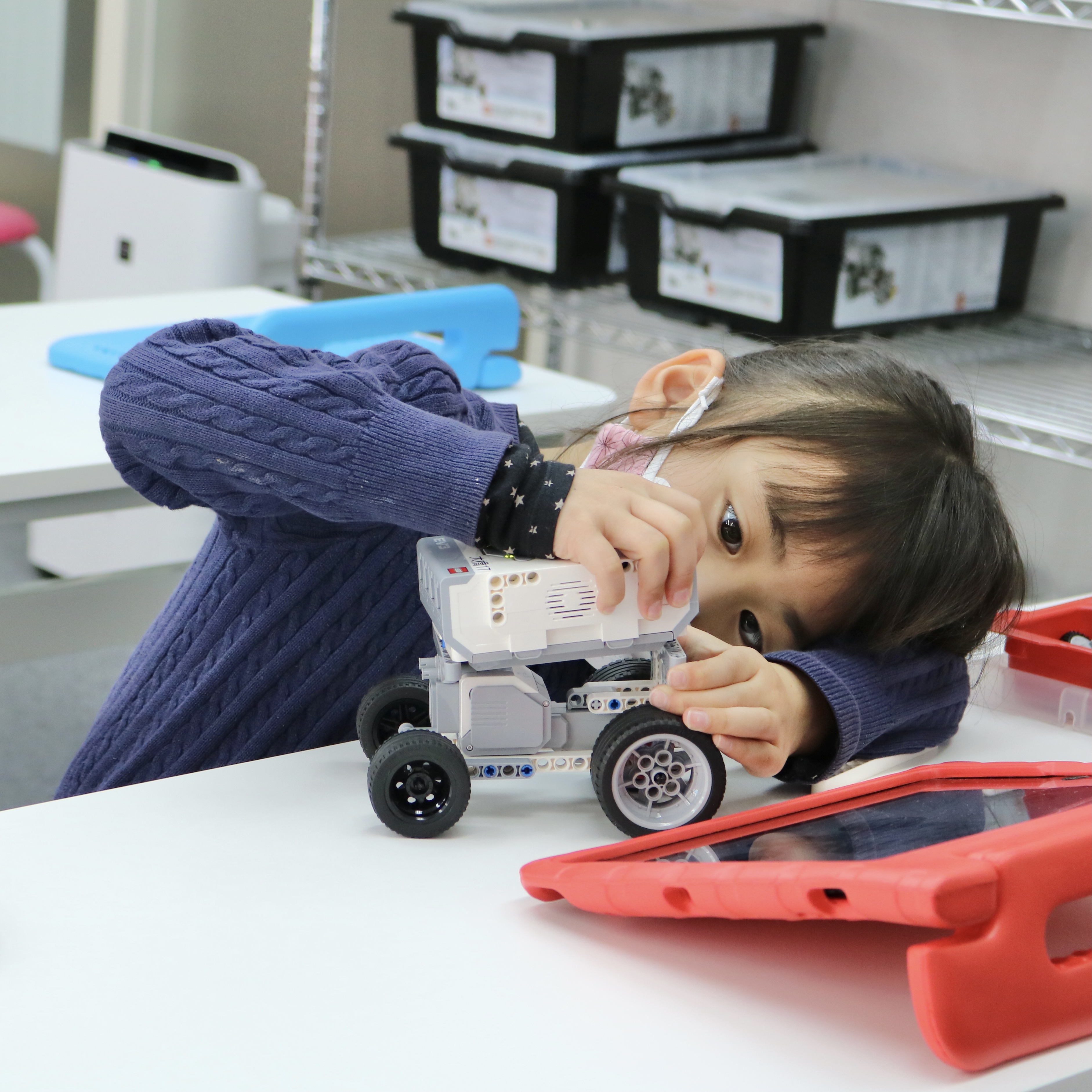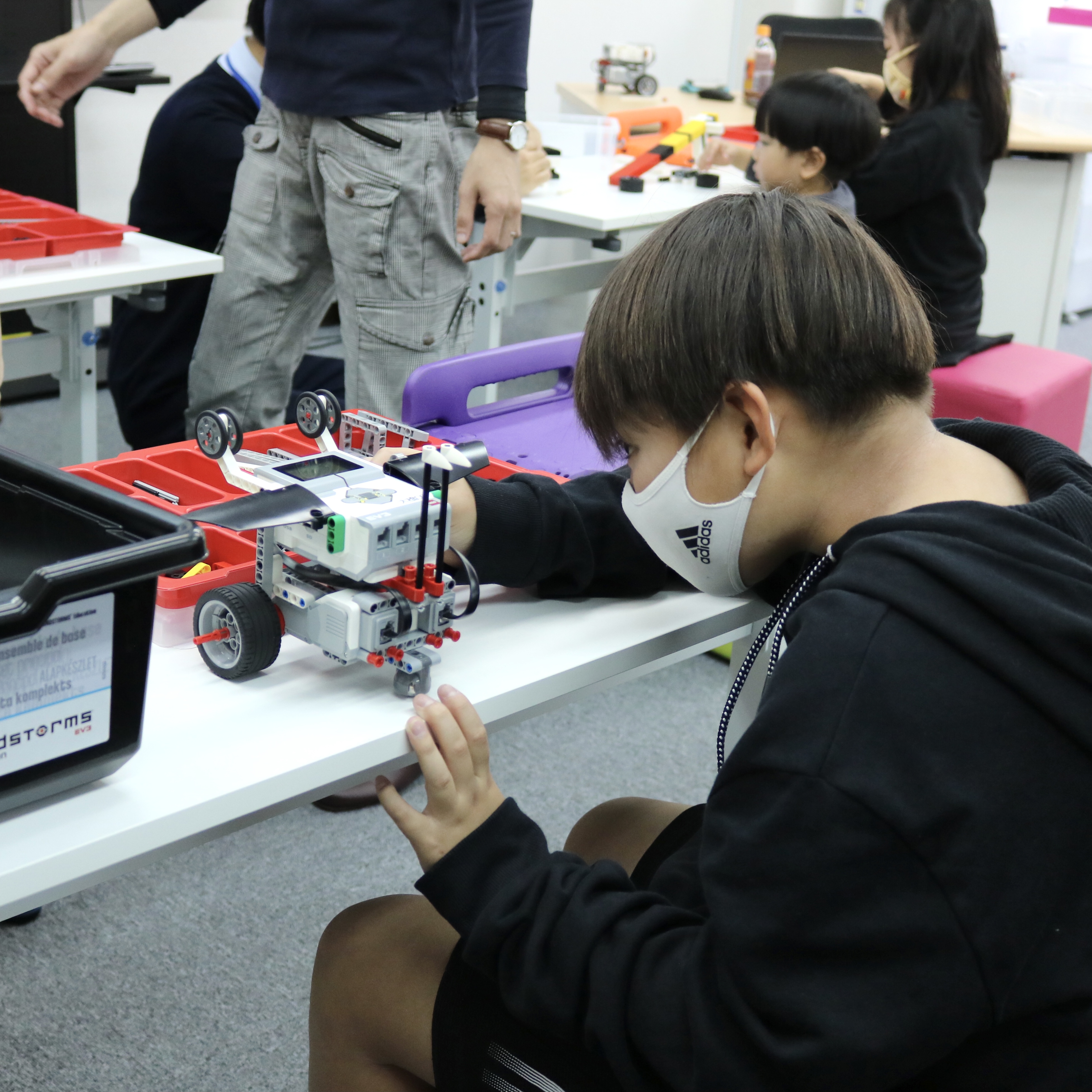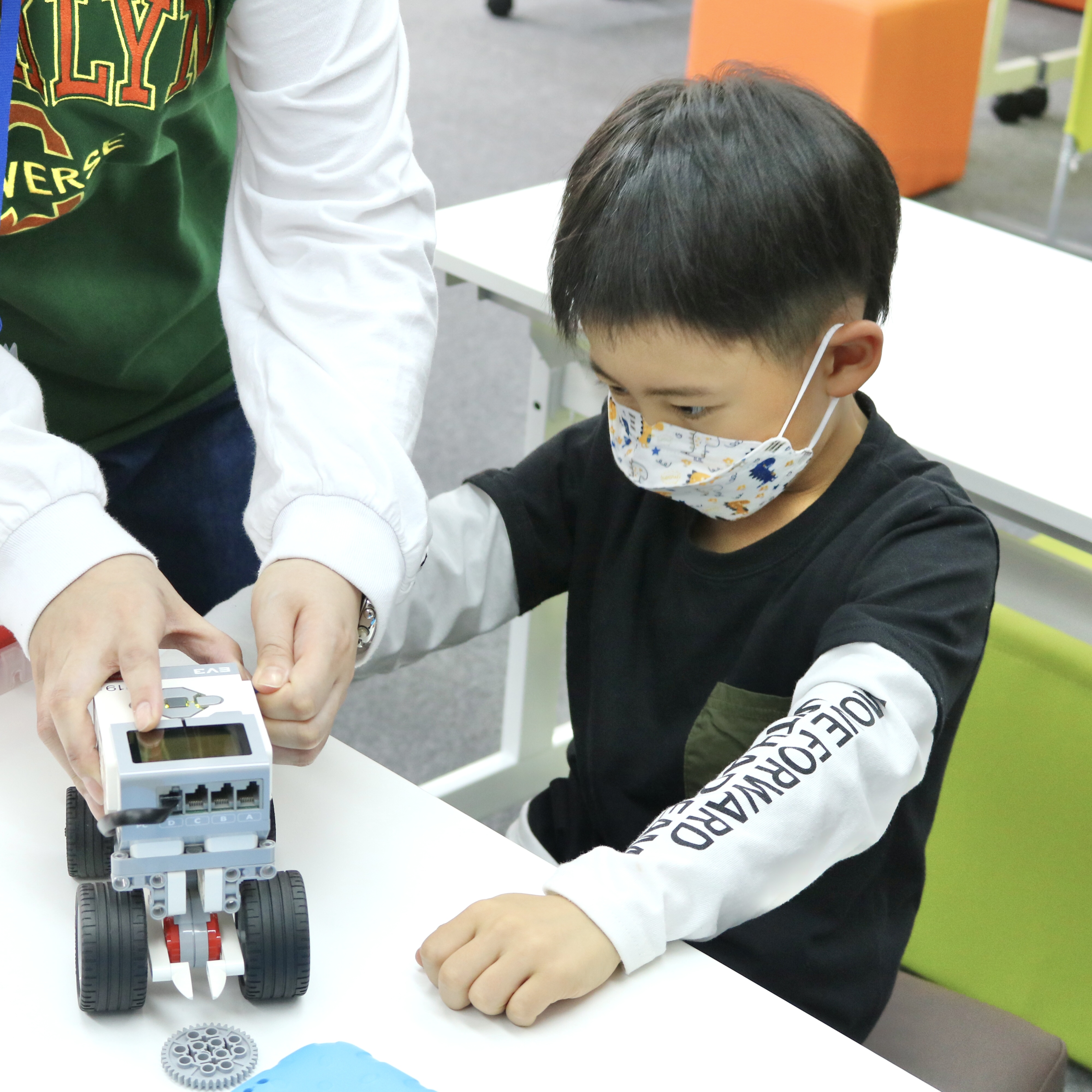 内容:主に教育版レゴ® マインドストーム® EV3を用いて、モーターや各種センサーを使ってロボットを組み立て、ビジュアルアイコンを使ったソフトウェアでプログラミングを行う。