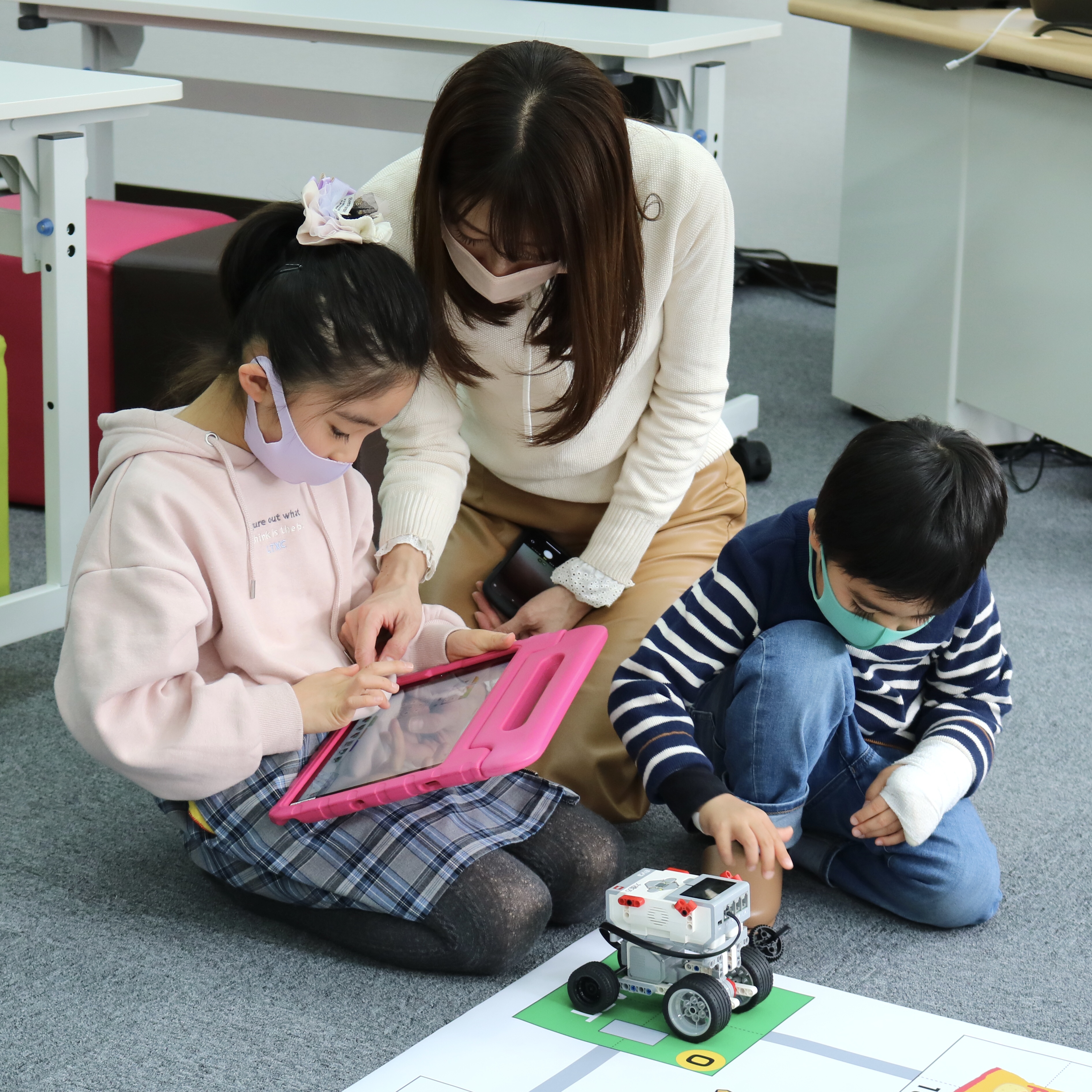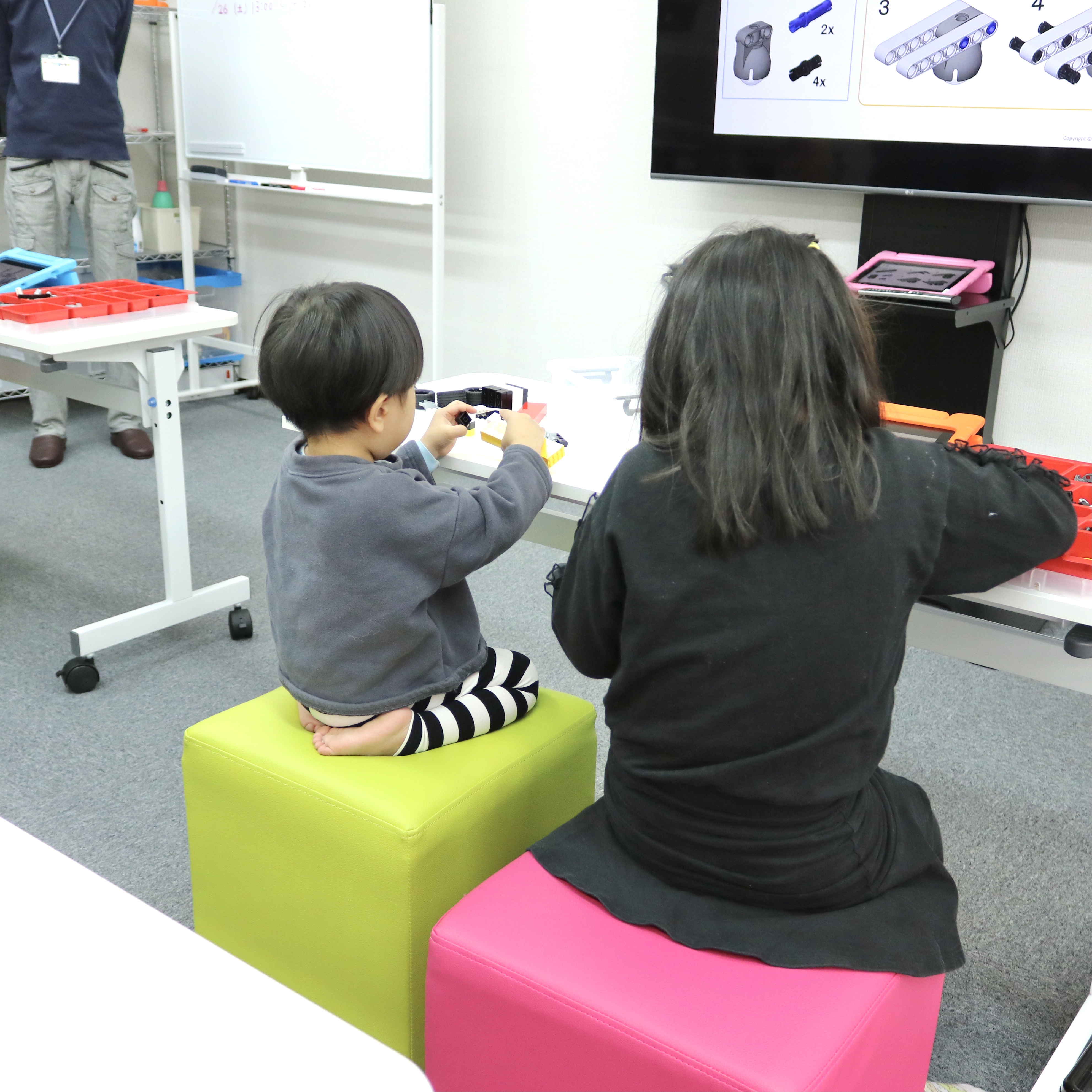お母さんといっしょにプログラミングするご姉弟も。