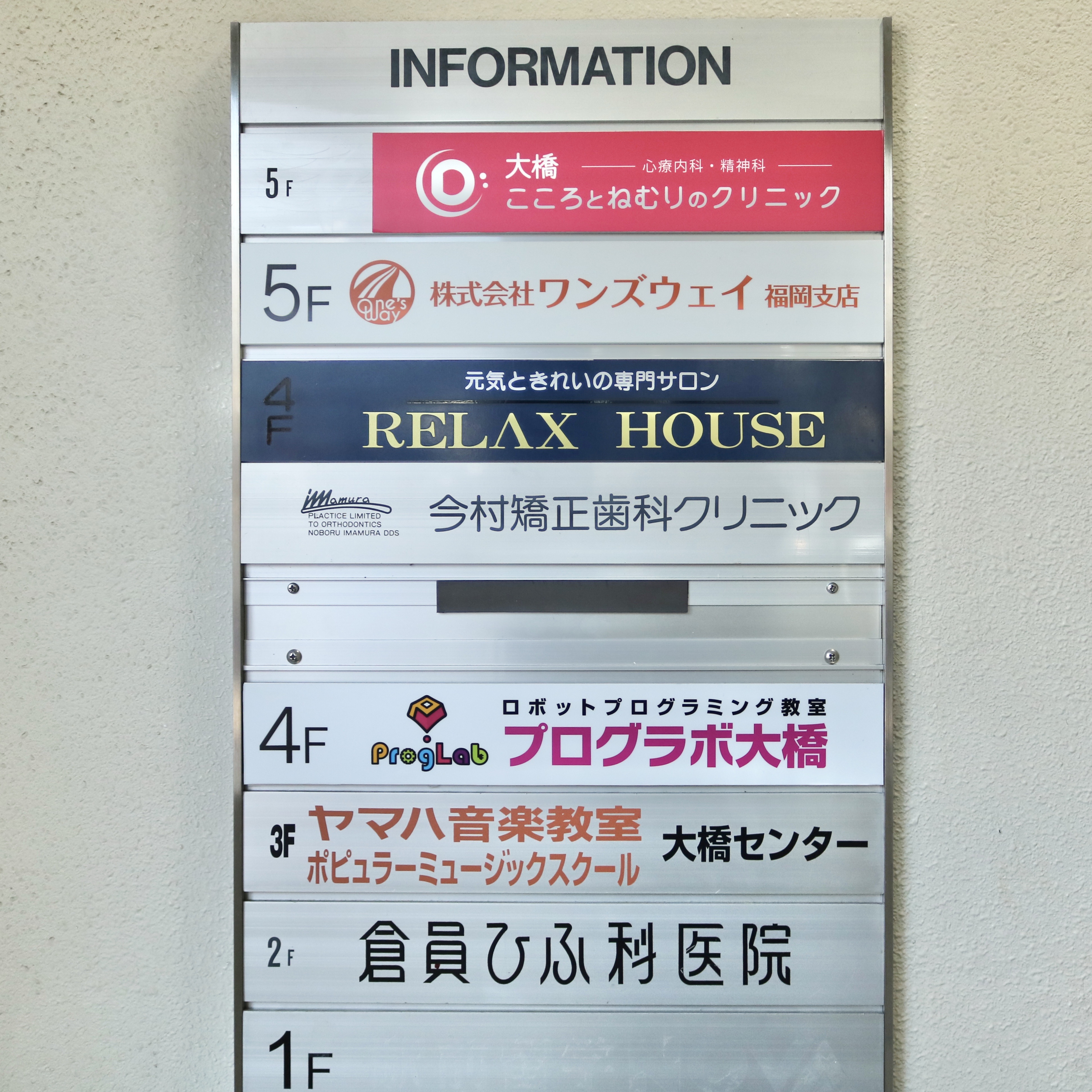 案内板の4Fに掲げられた、プログラボ大橋のプレート。