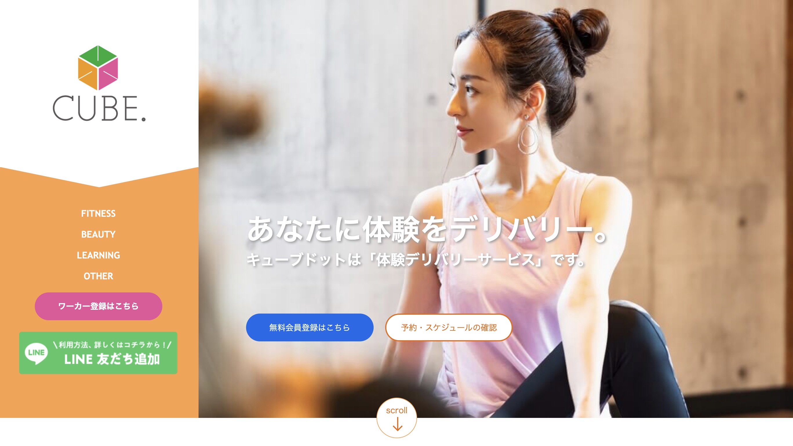 キューブドットは、フィットネス、美容・健康、学び、その他の体験を、あなたのご自宅やご指定の場所へデリバリーします。