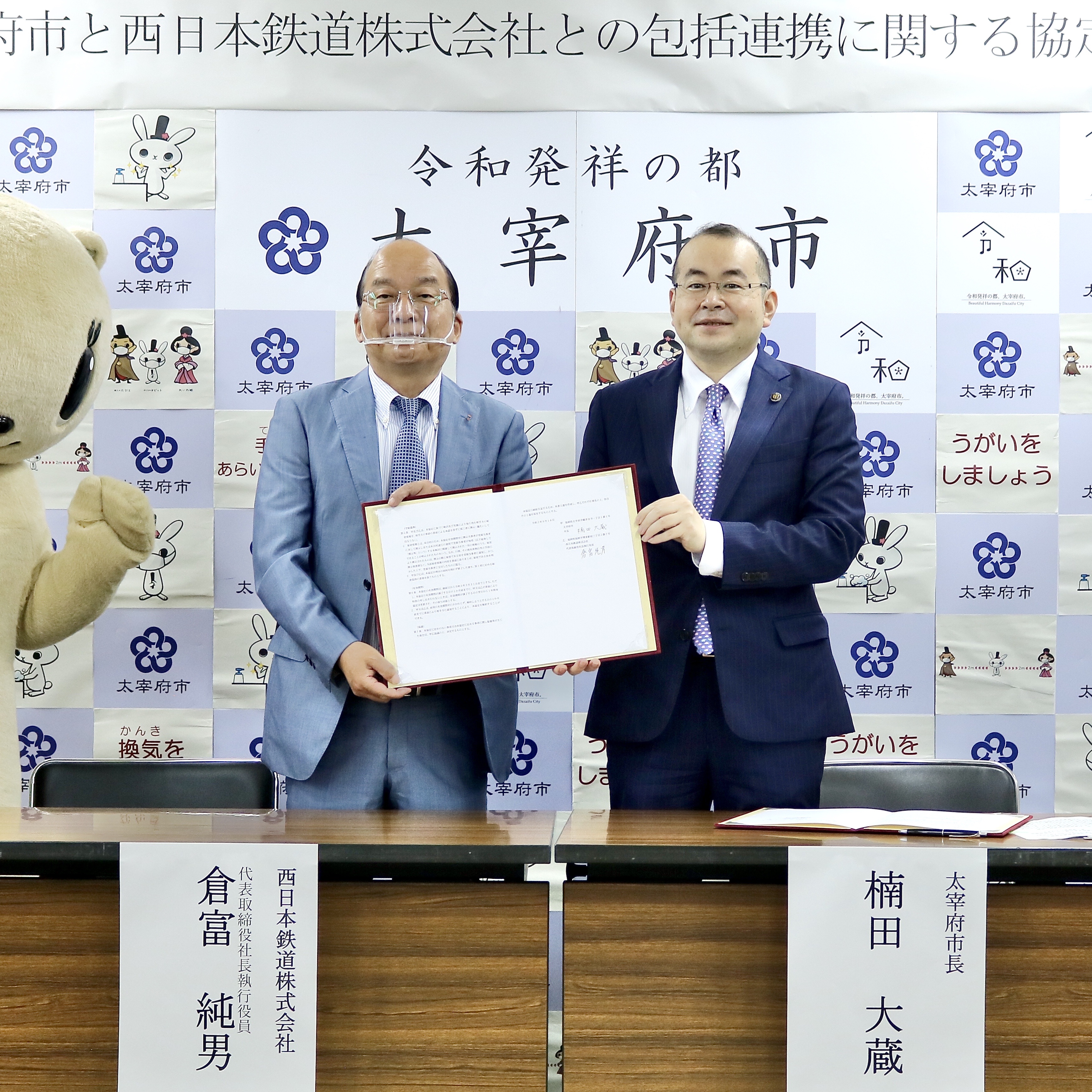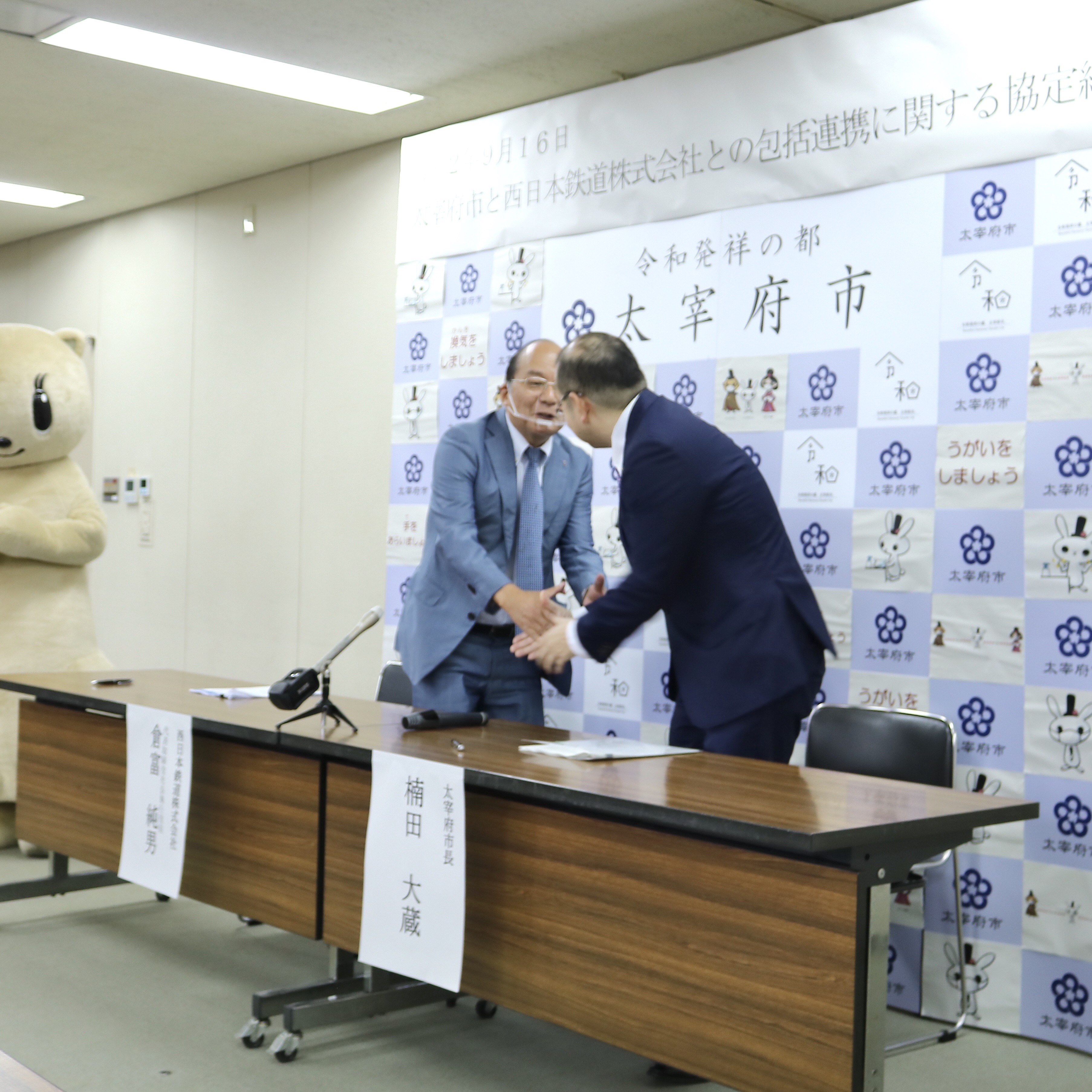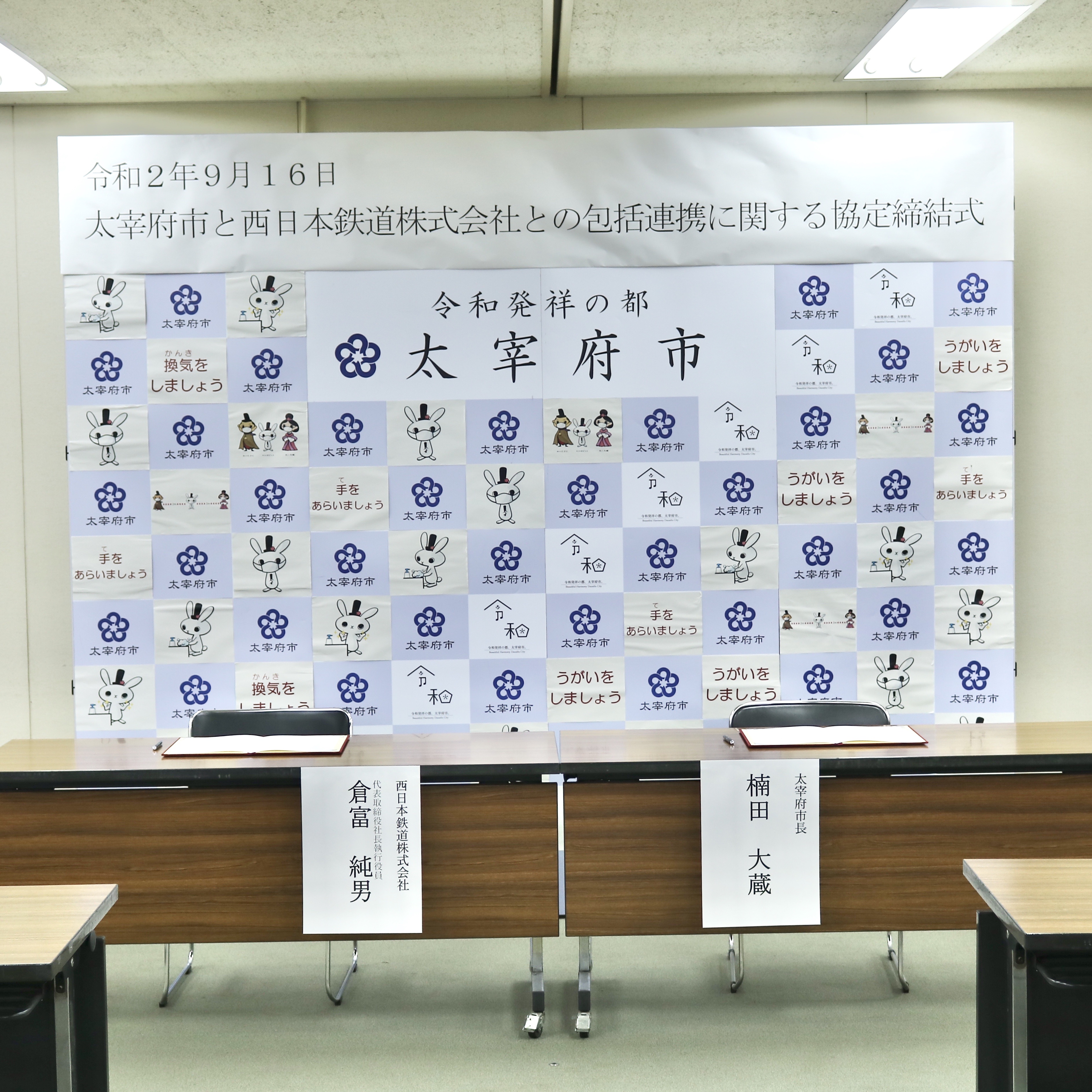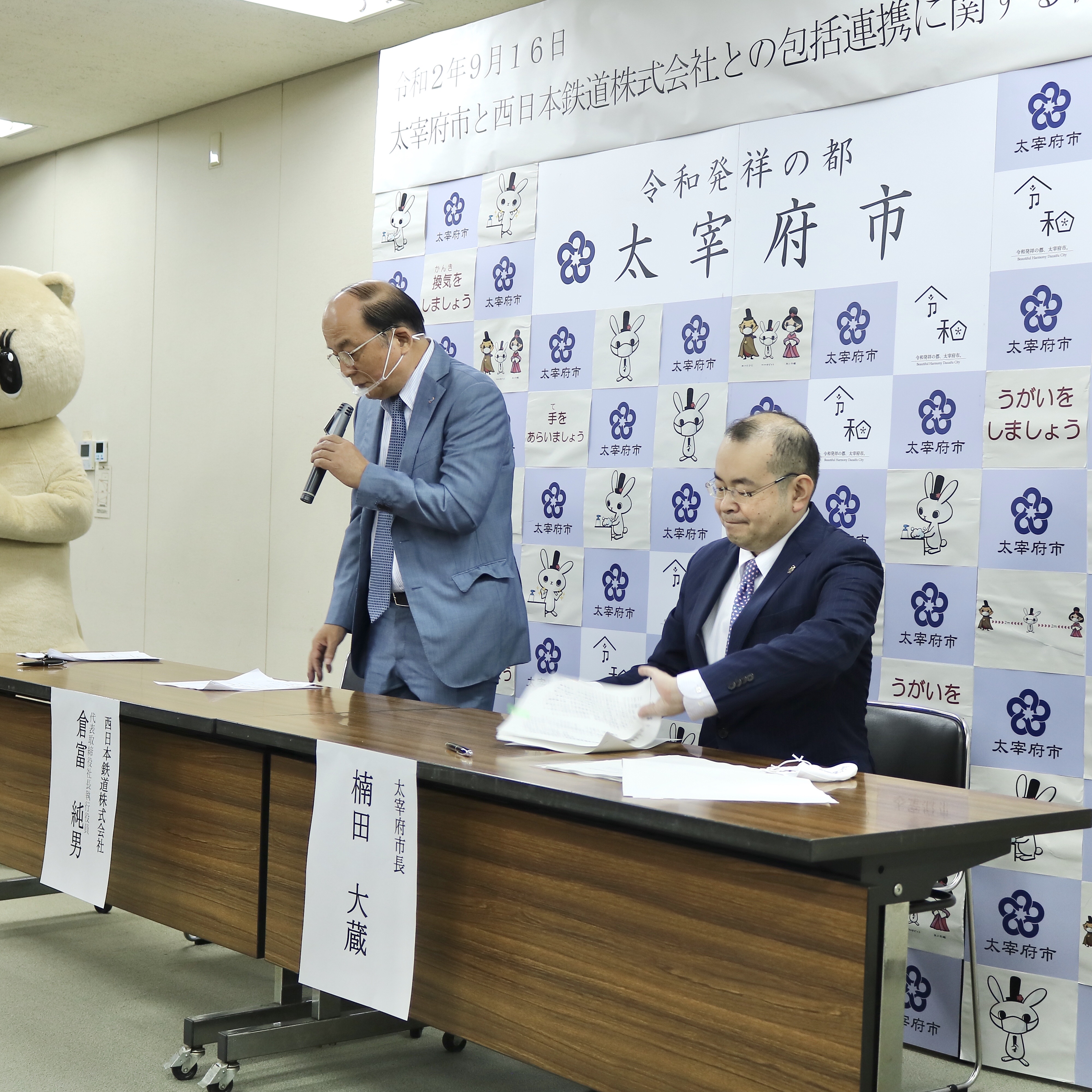 2020年9月16日(水)、福岡県太宰府市の太宰府市役所において、太宰府市と西日本鉄道株式会社の包括連携協定の締結式が開催されました。