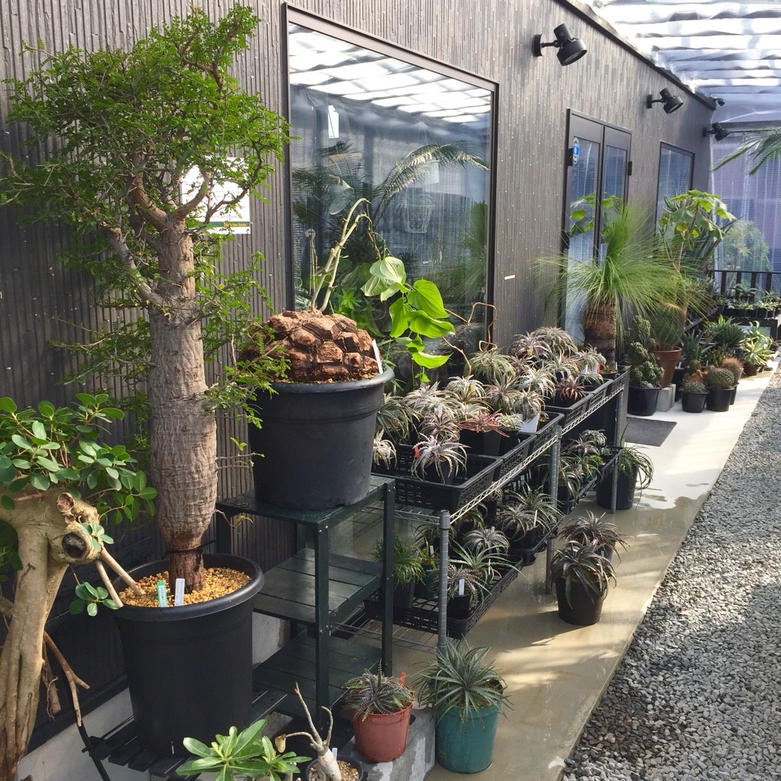 多肉植物はサボテン普及種やレア品種、観葉植物はブロメリアやマニアックな品種、屋外エキゾチックプランツや耐寒性植物と、幅広い品揃えだそうです。