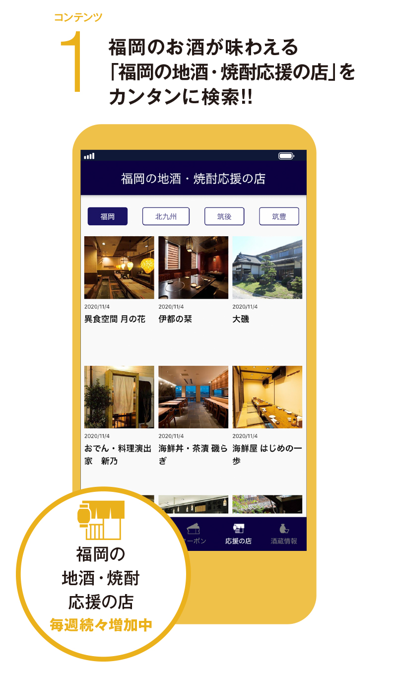 2020年11月6日(金)、福岡県酒造協同組合より「福岡の地酒・焼酎公式アプリ」と「福岡の地酒・焼酎オンラインショップ」がリリースされました。
