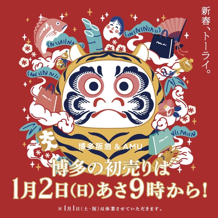 2022年1月2日(日)朝9時より、福岡市博多区博多駅中央街の博多阪急にて、2022年の初売りが行われます。