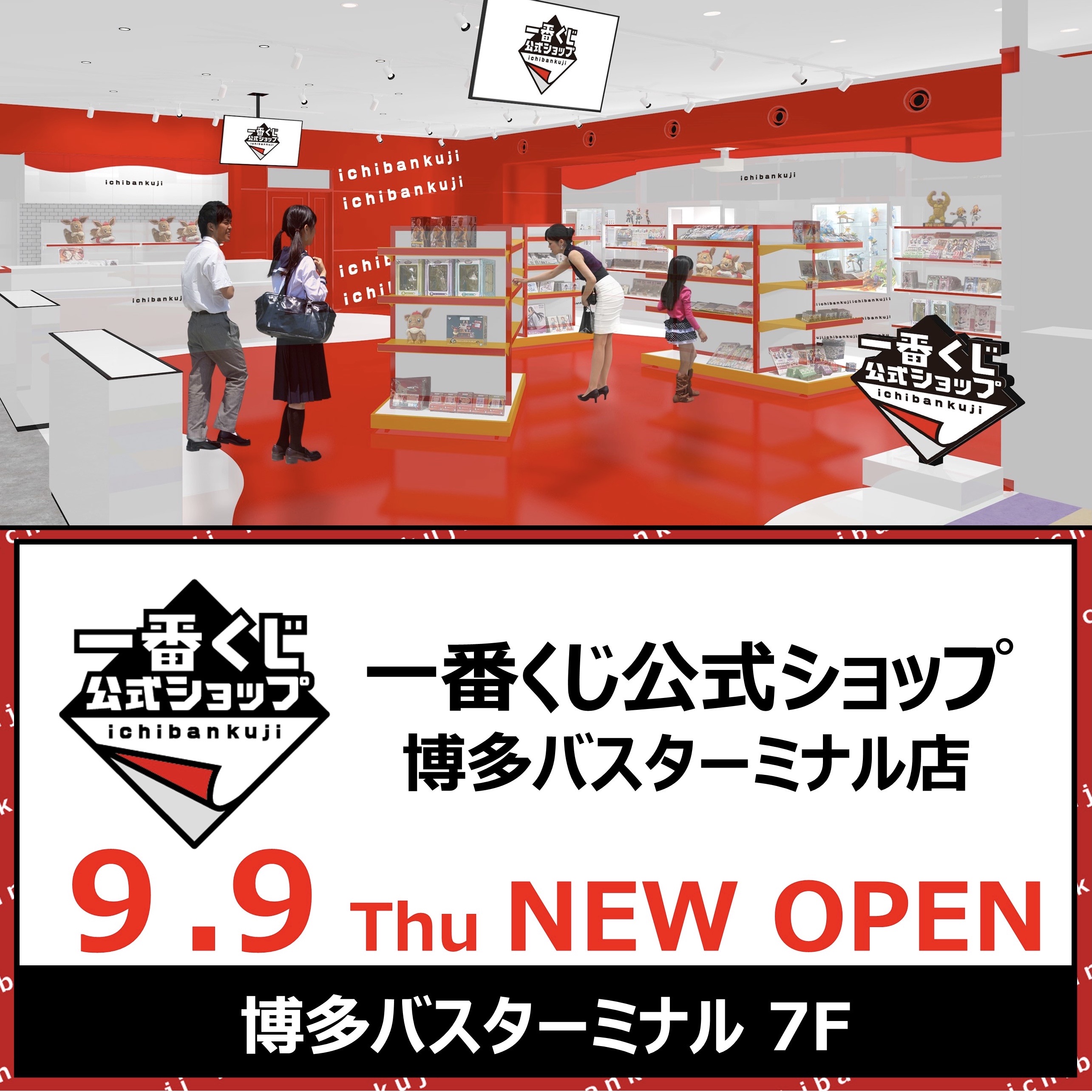 2021年9月9日(木)、福岡市博多区博多駅中央街の博多バスターミナル7Fに、「一番くじ公式ショップ 博多バスターミナル店」がオープンします。