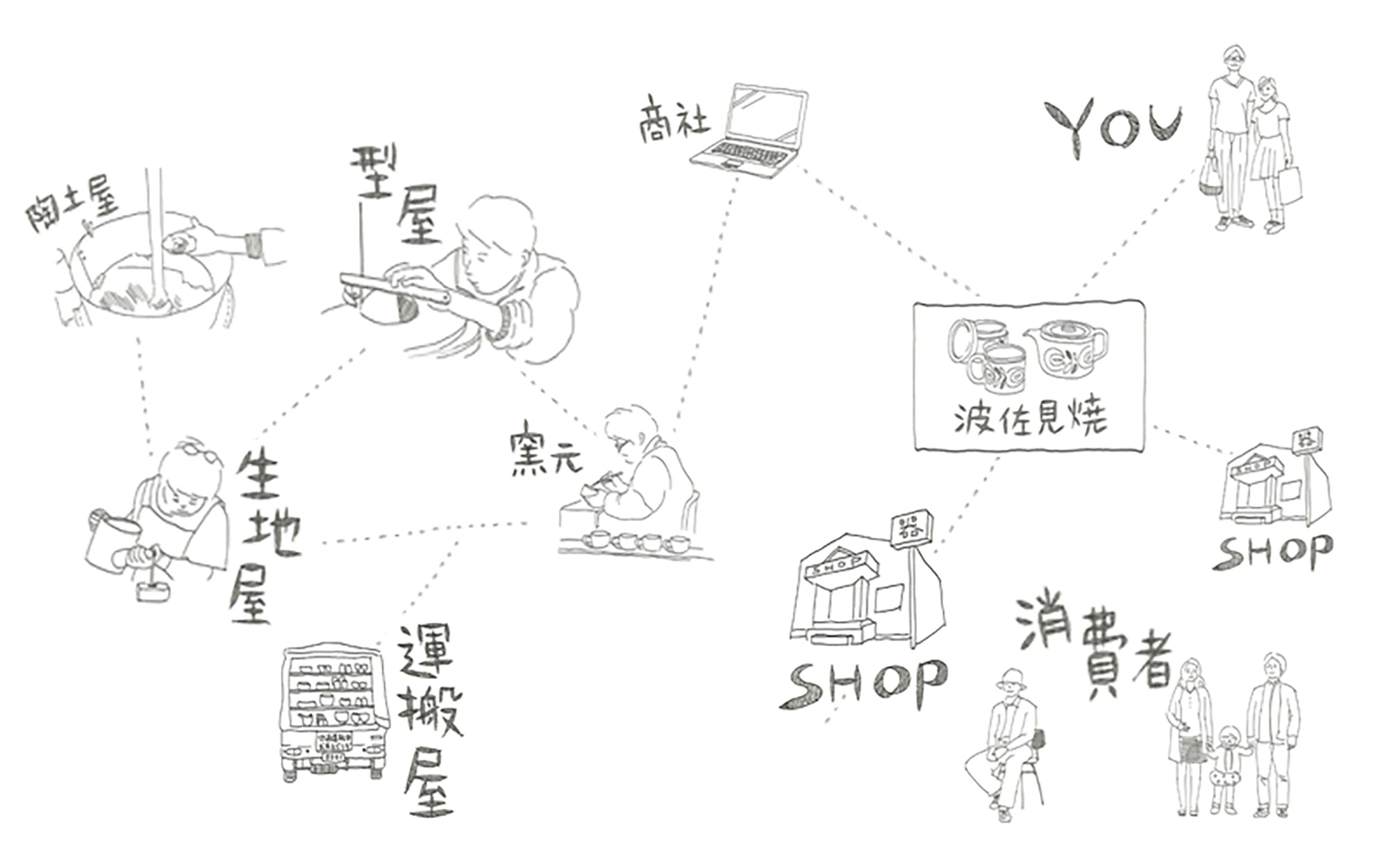 それぞれに高い技術やノウハウを持った職人が、それぞれ独立した事業者でありながら、連携して波佐見焼を製造してきました。(現在も分業制がそのまま続いています。)